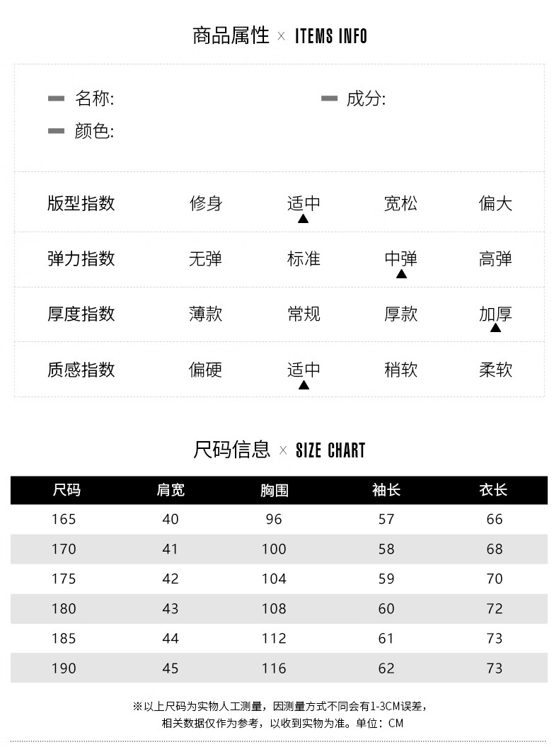 China (cm) 165 / 88-90 170 / 96-98 175 / 108-110 180 / 118-122 185 / 126-130