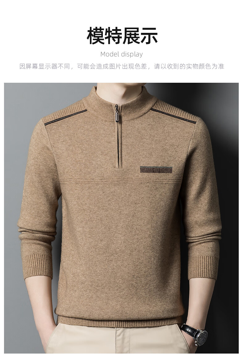 International Milan Ordos 100% cashmere sweater men's business jacquard zipper half turtleneck warm casual sheep sweater 9972-Camel Ordos/no pilling/super grade/cashmere XL 175 (recommended weight 140-160Jin Jin equals 0.5 kg)