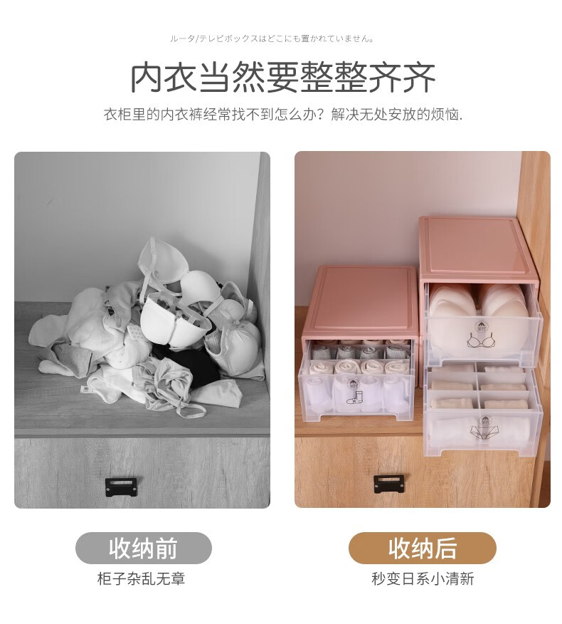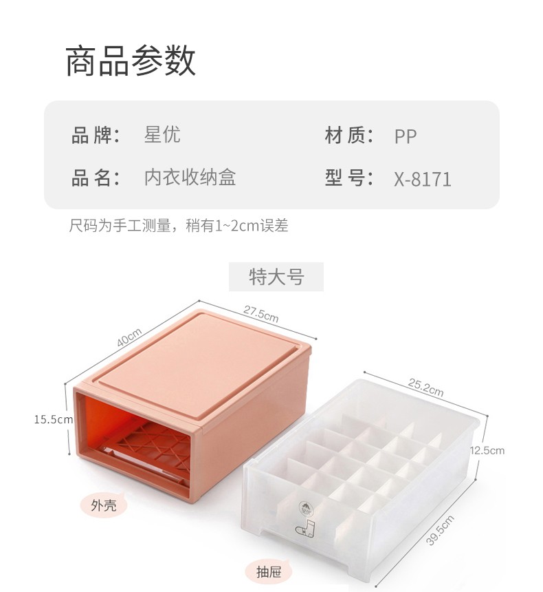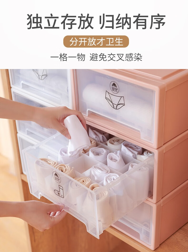 Xingyou underwear storage box drawer-type household underwear storage artifact bra socks wardrobe classification organizer extra large Nordic pink unframed underwear storage box