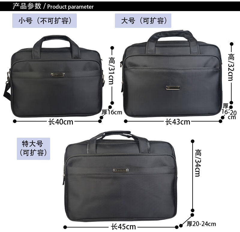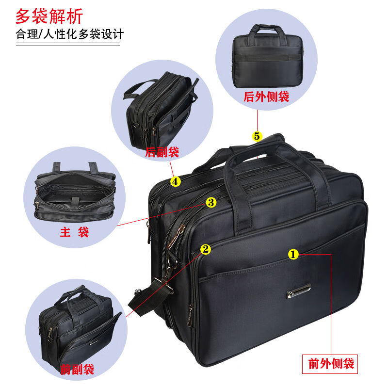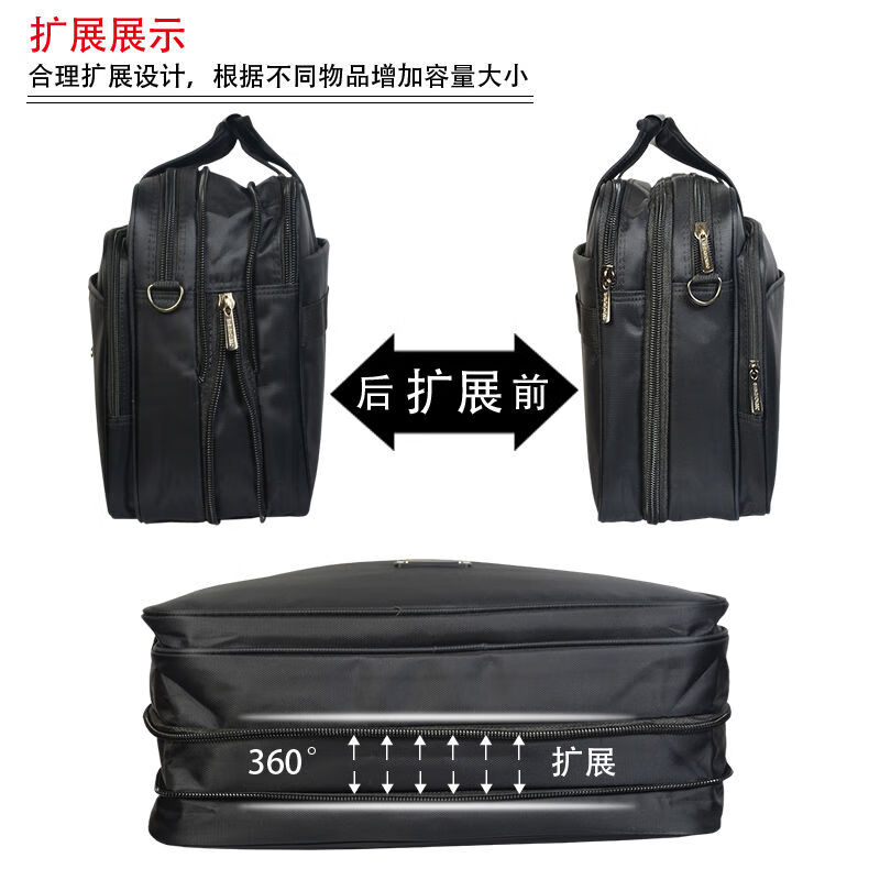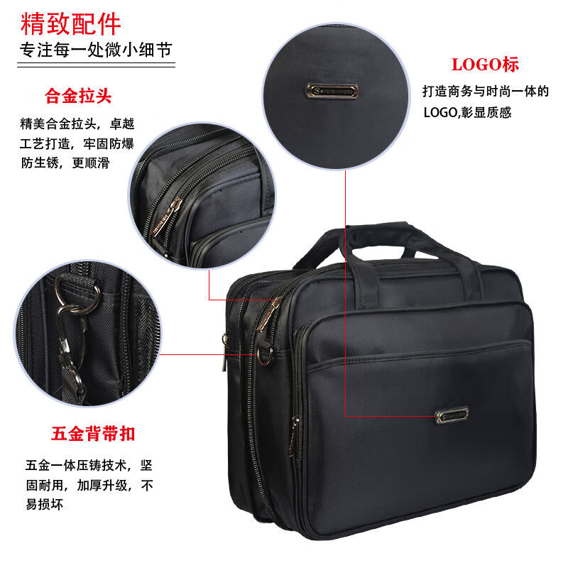 OTHER crossbody bag, Oxford cloth computer bag, business briefcase, handbag, large capacity shoulder bag, men's wear-resistant tool bag, black large size 17 inches, expandable to 43*32*16-20