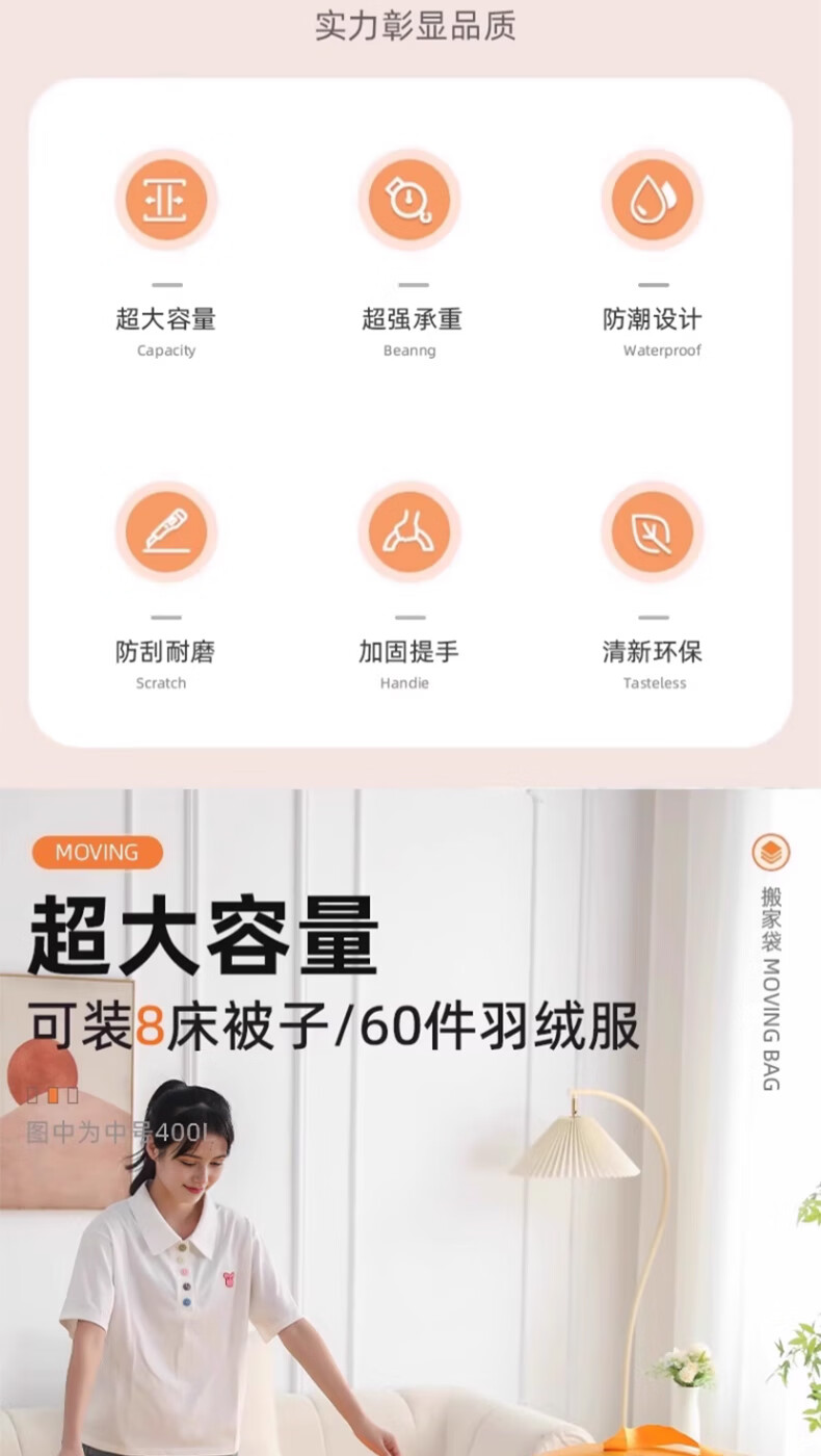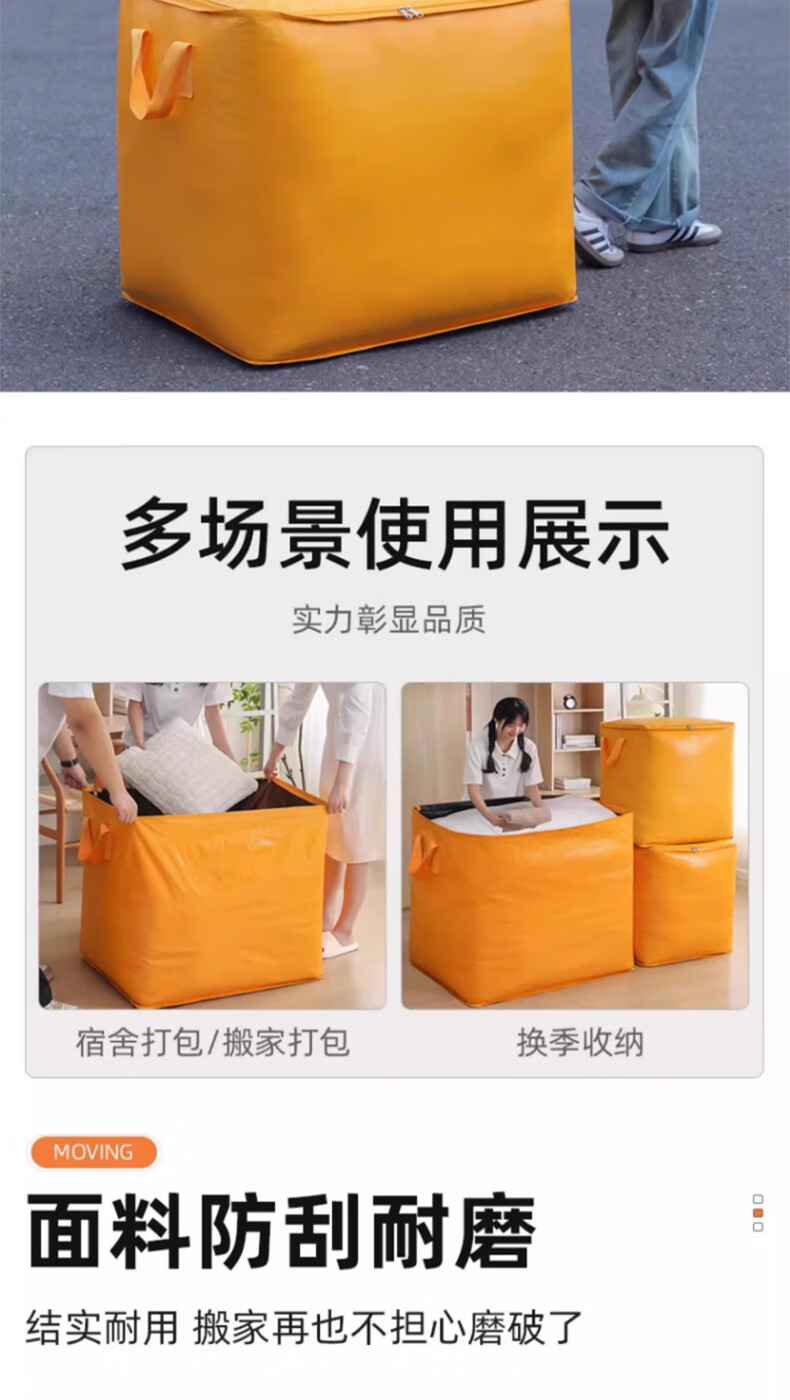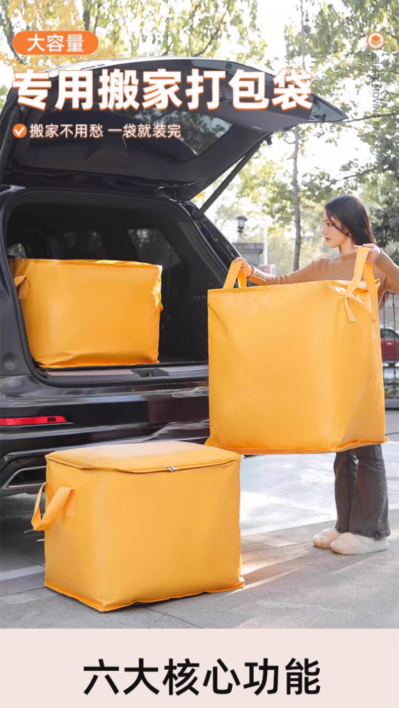 JINXIUBAINIAN Bedroom Quilt Storage Bag Large Capacity Moving Packing Bag Home Moisture-Proof Luggage Clothing Bag Clothes Organizing Bag 1 Pack Special Welfare Model Yellow-75L 47*30*54cm