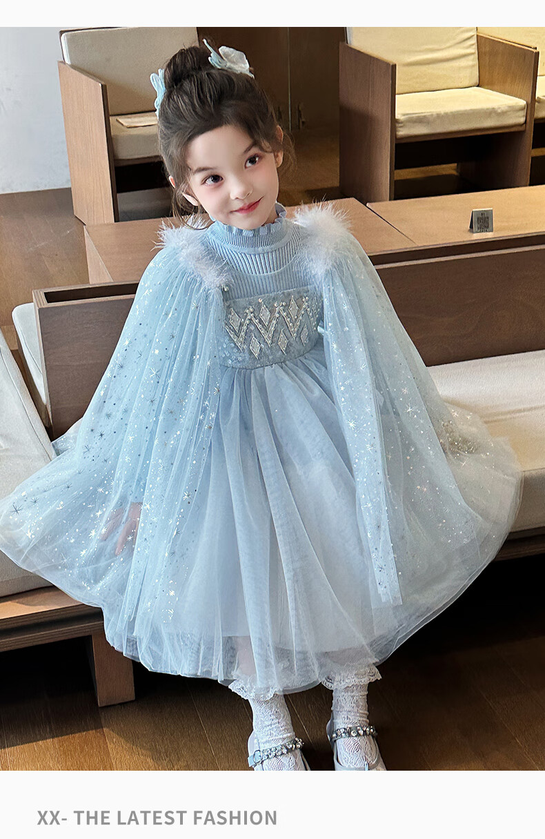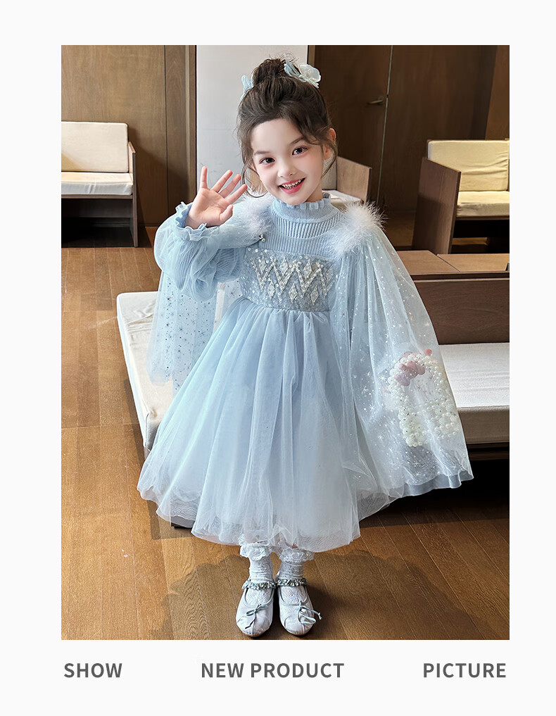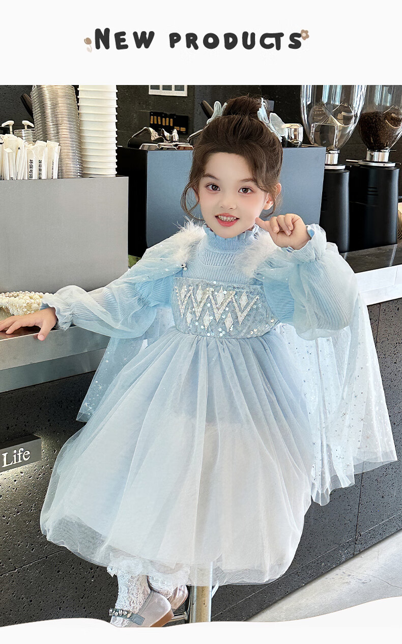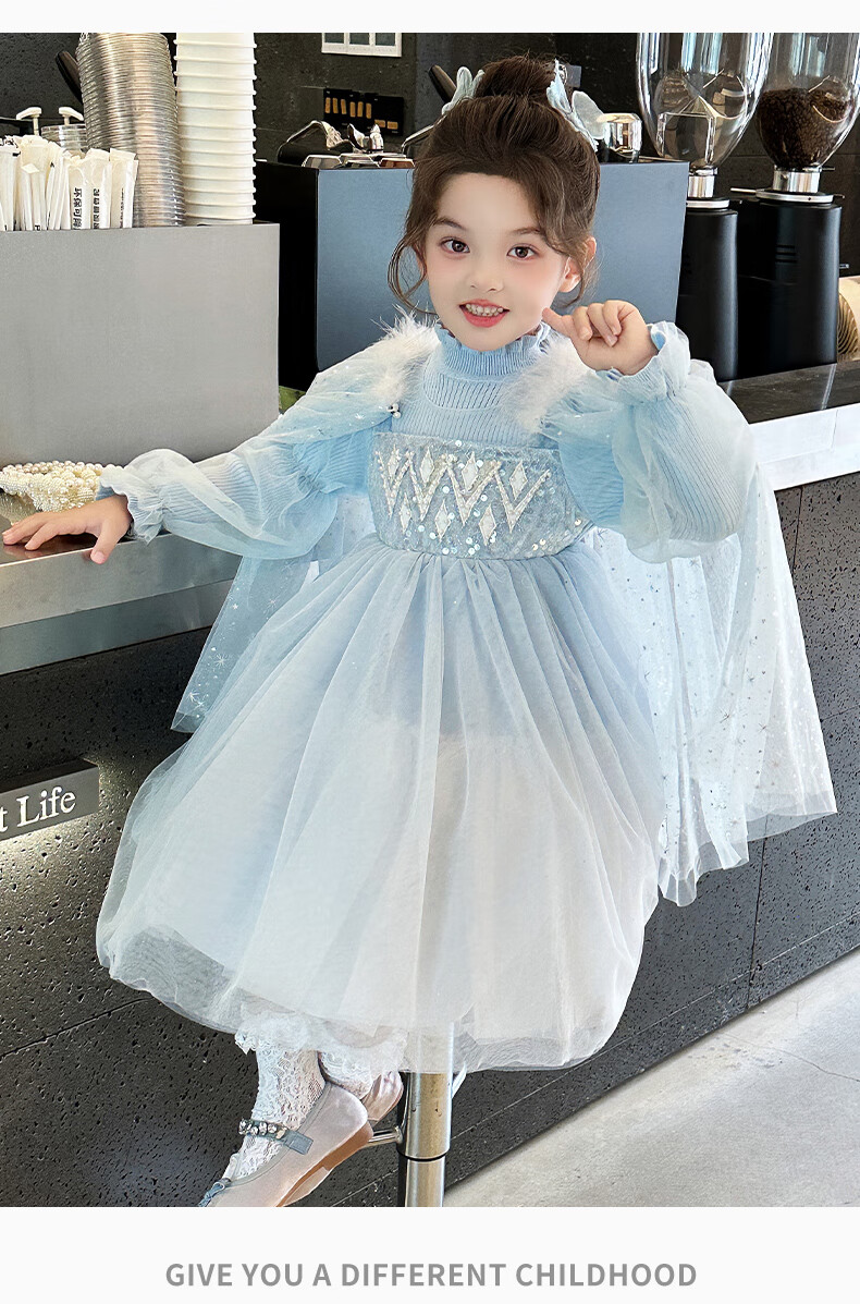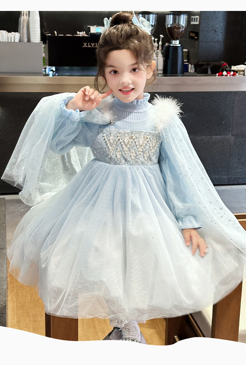 Disney Elsa Princess Dress Autumn Girls Elsa Dress Frozen Girls Autumn Winter Skirt Children's Birthday Dress Blue 100 cm