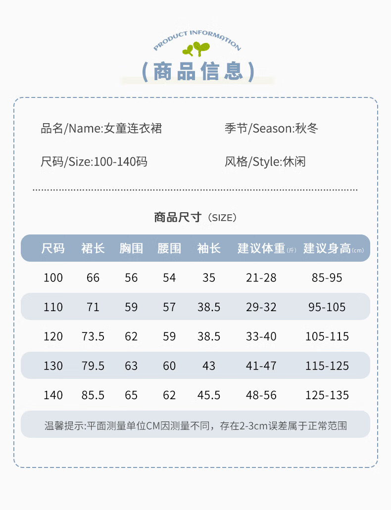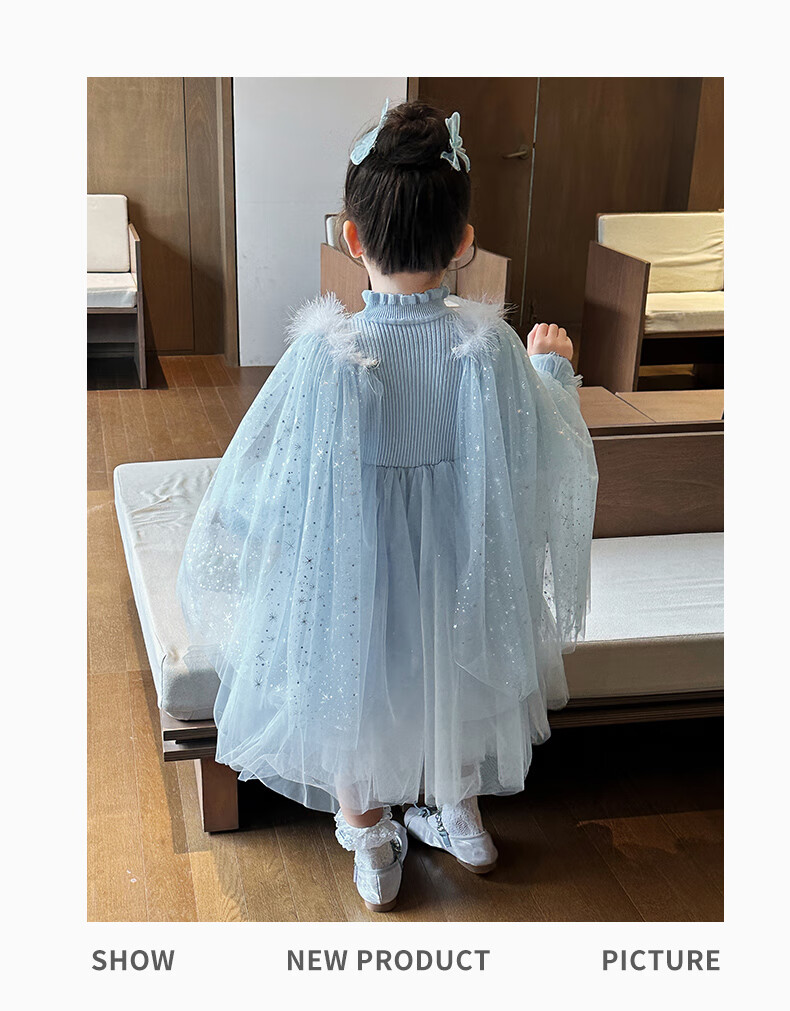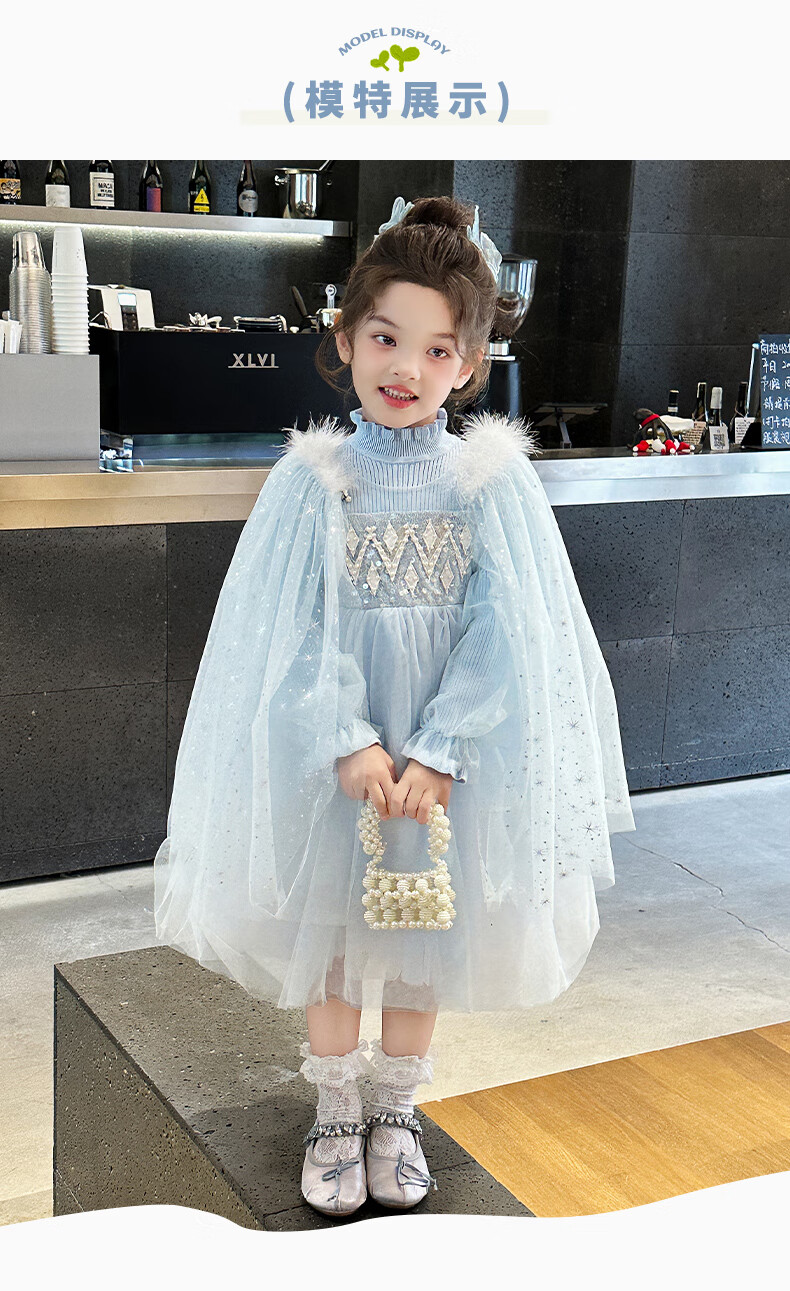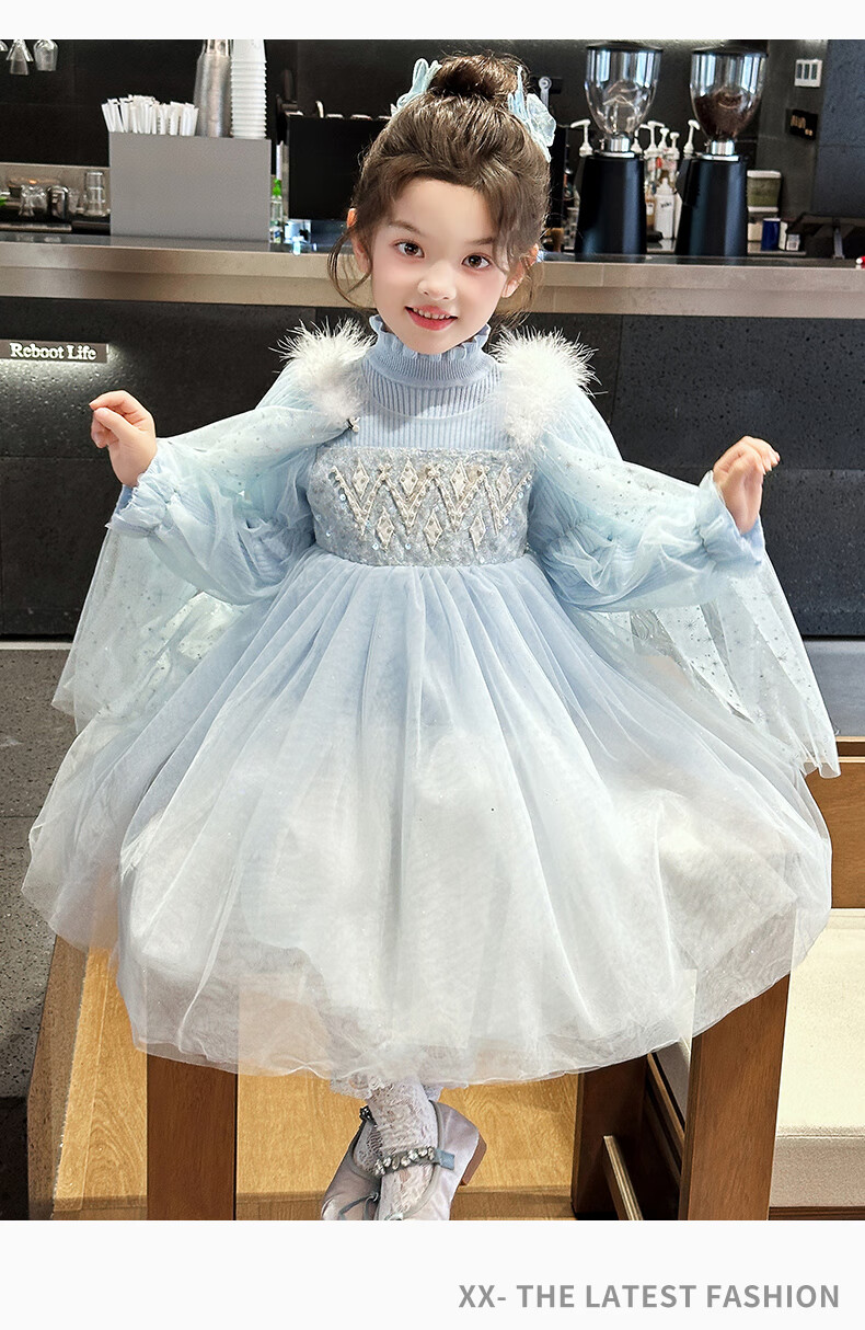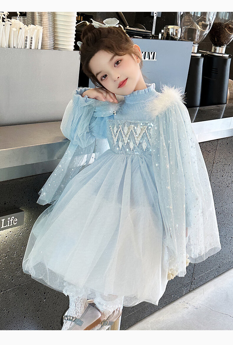 Disney Elsa Princess Dress Autumn Girls Elsa Dress Frozen Girls Autumn Winter Skirt Children's Birthday Dress Blue 100 cm