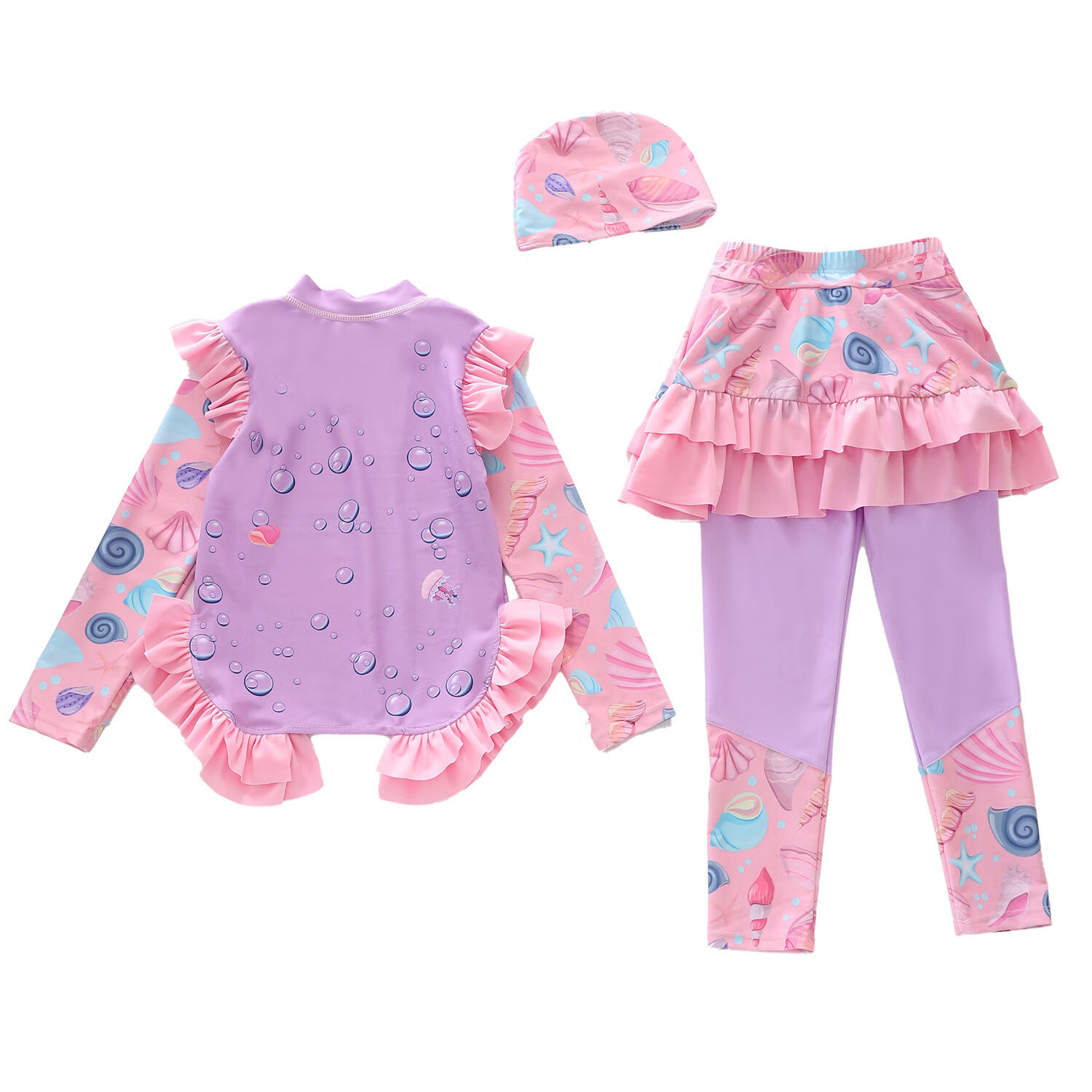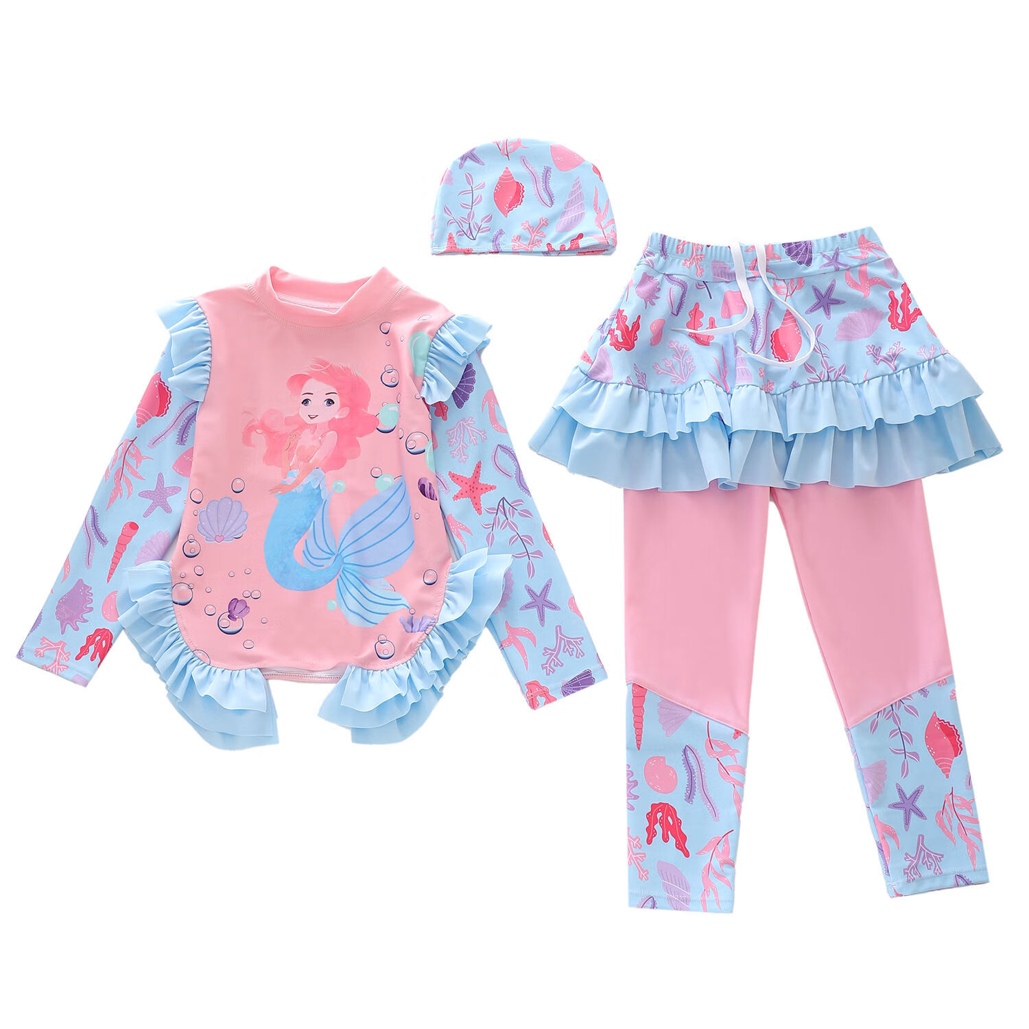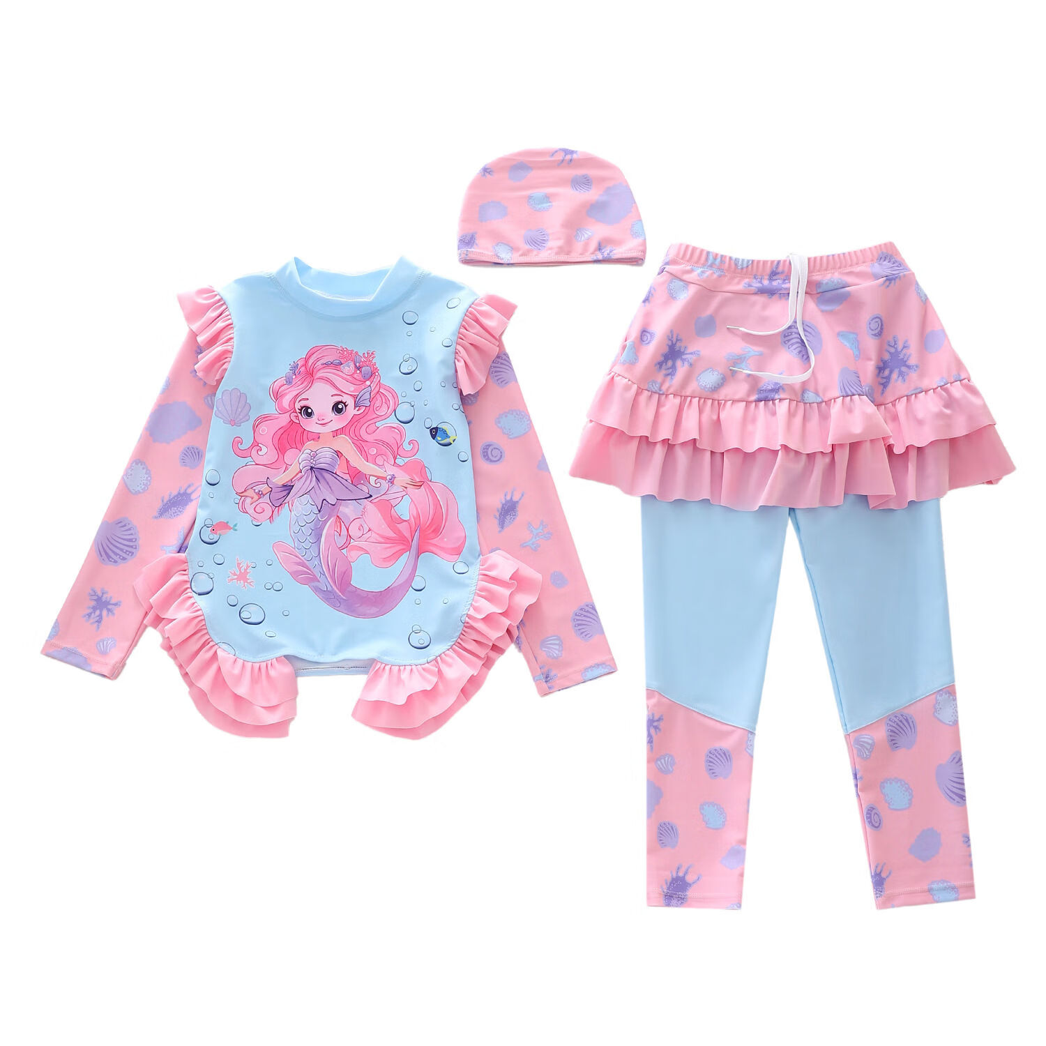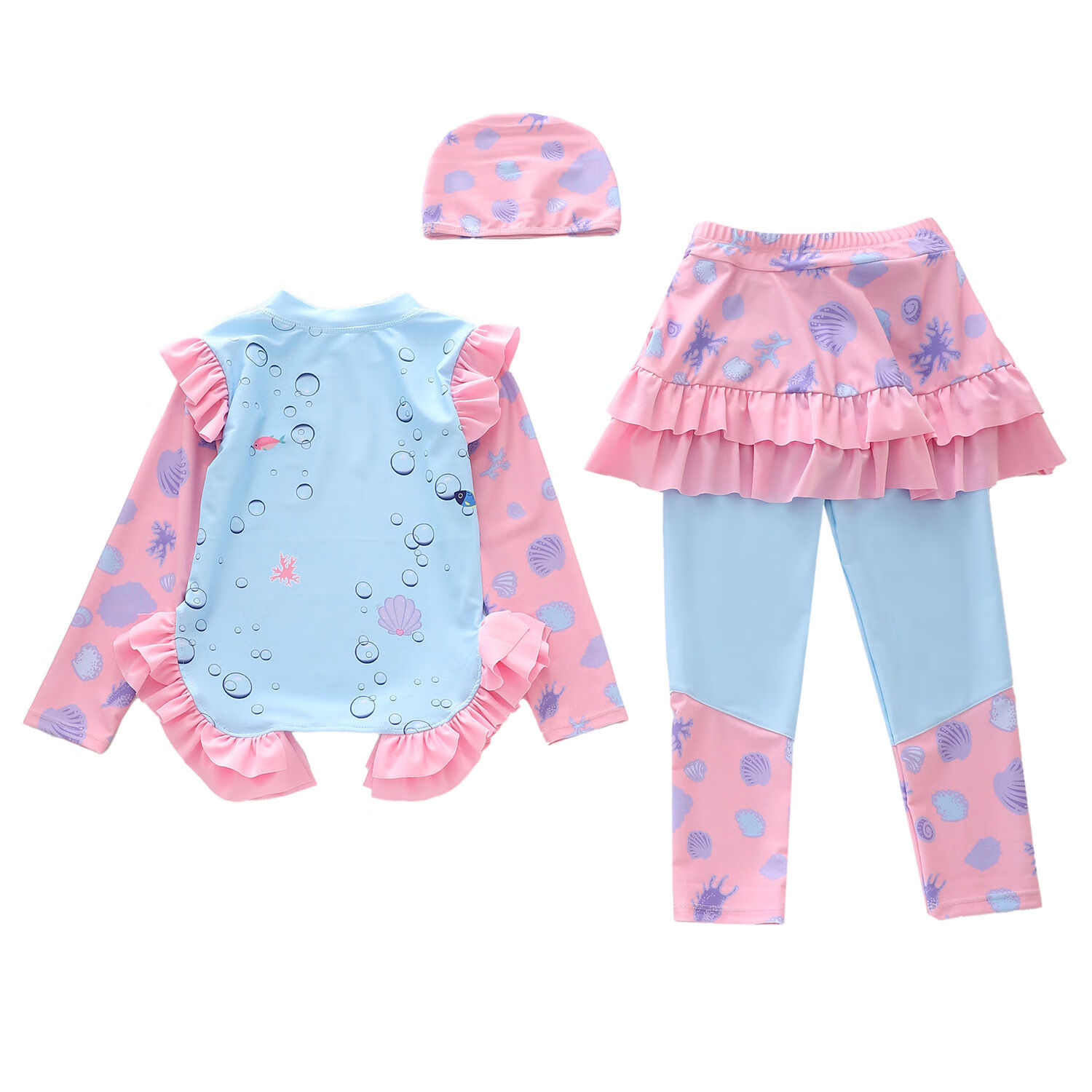 Da Tuan Xiao Yuan's new children's swimsuit for girls and babies split medium and large children and girls sun protection long-sleeved professional training swimwear upgrade Aixiao XL (100-110cm, 32-39Jin Jin equals 0.5kg)