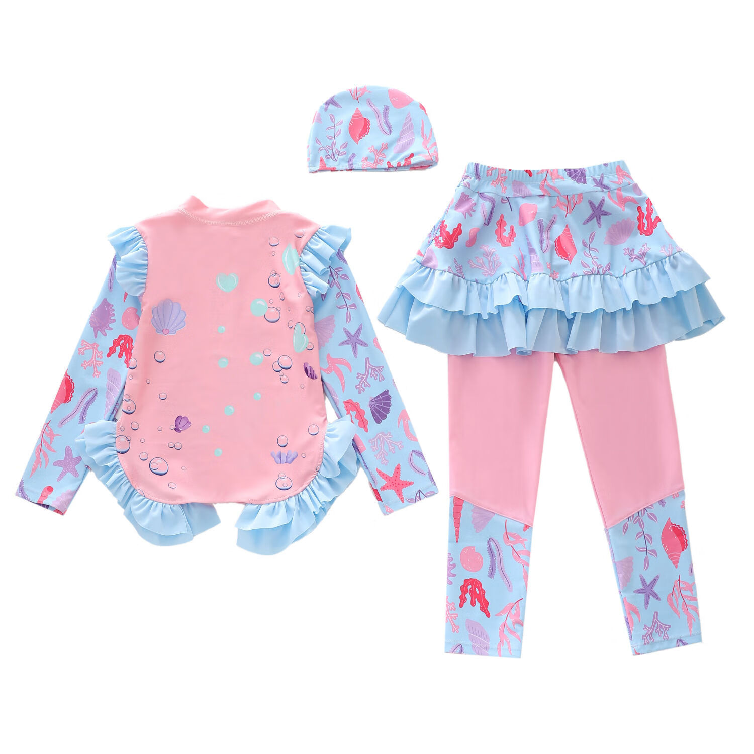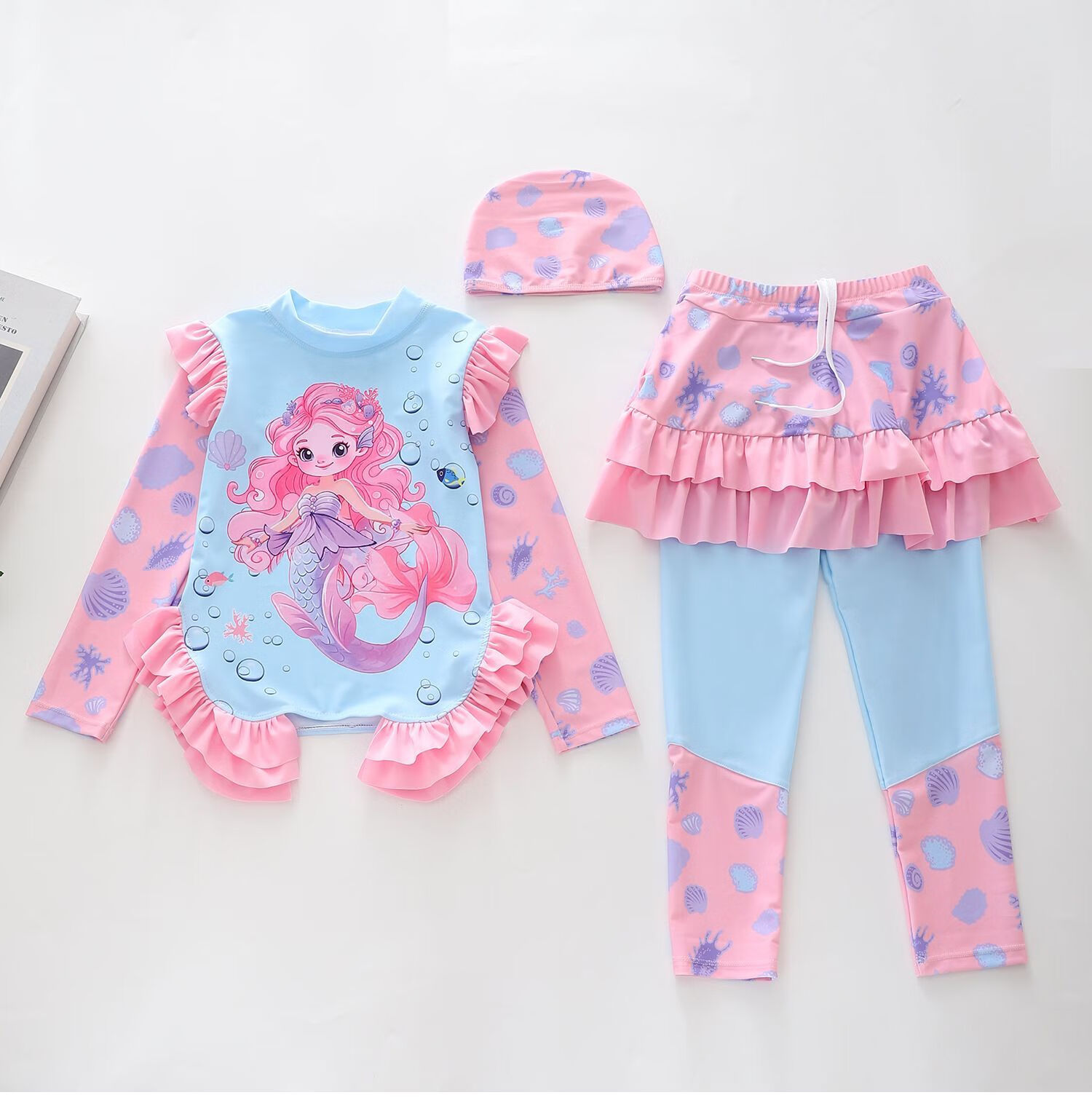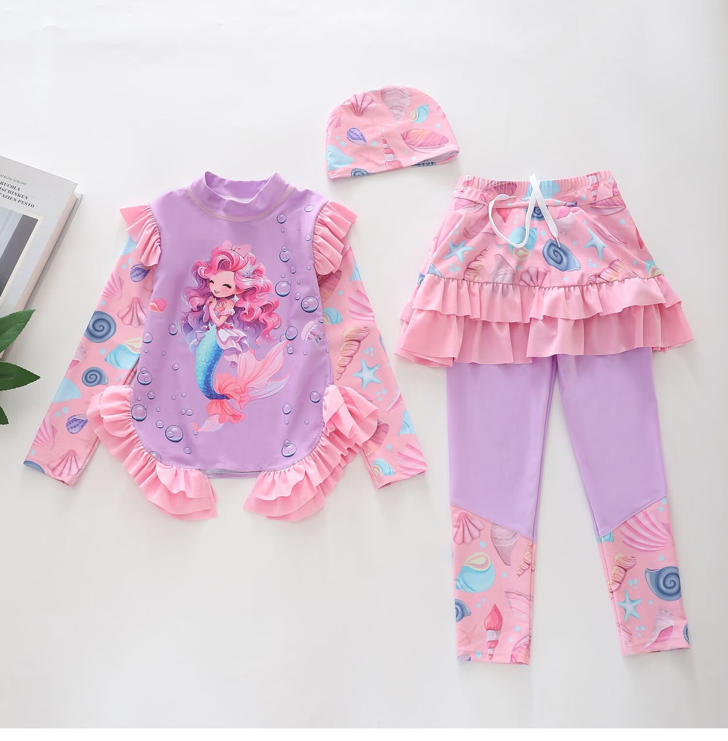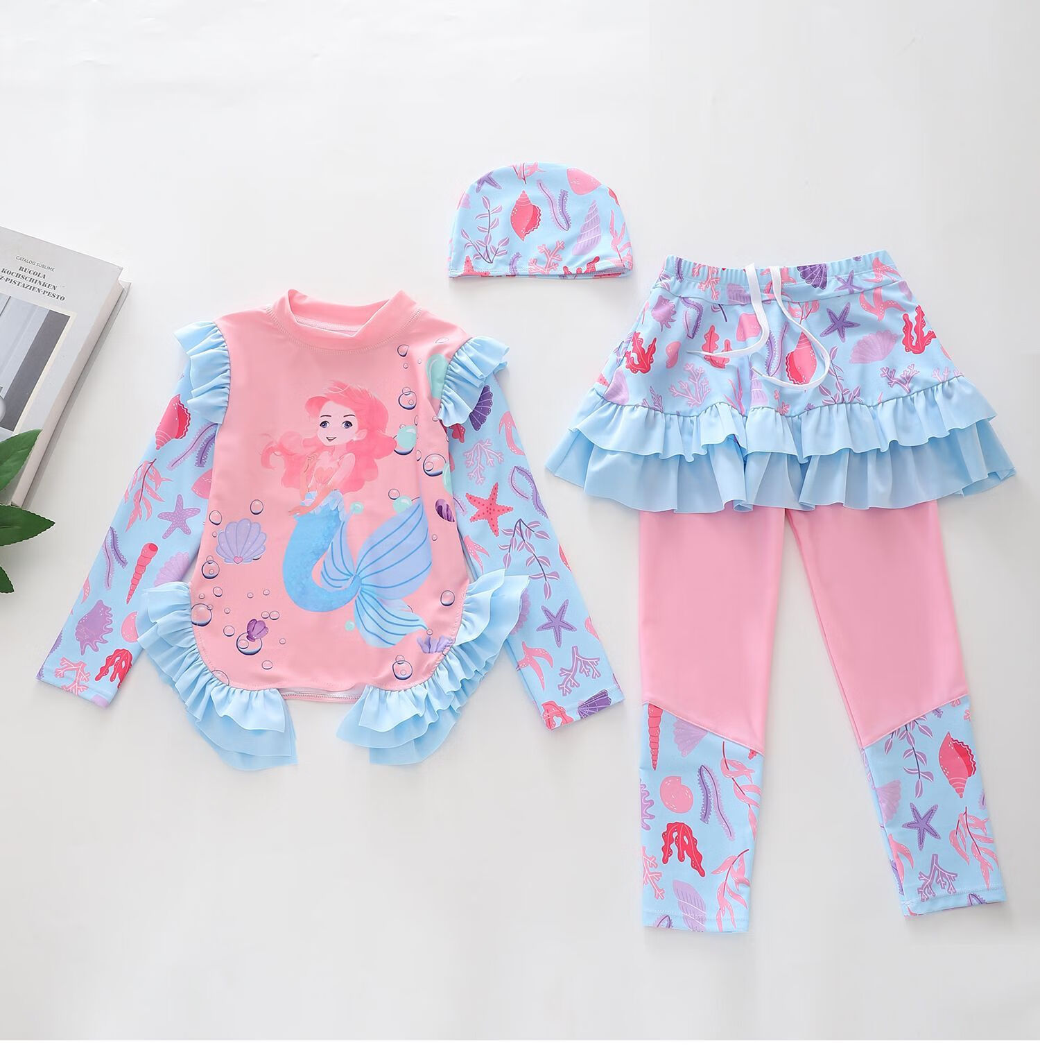 Da Tuan Xiao Yuan's new children's swimsuit for girls and babies split medium and large children and girls sun protection long-sleeved professional training swimwear upgrade Aixiao XL (100-110cm, 32-39Jin Jin equals 0.5kg)