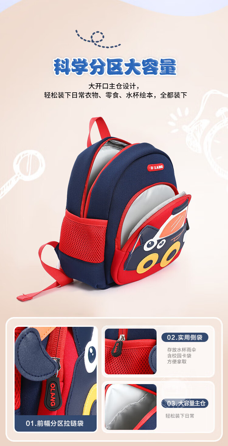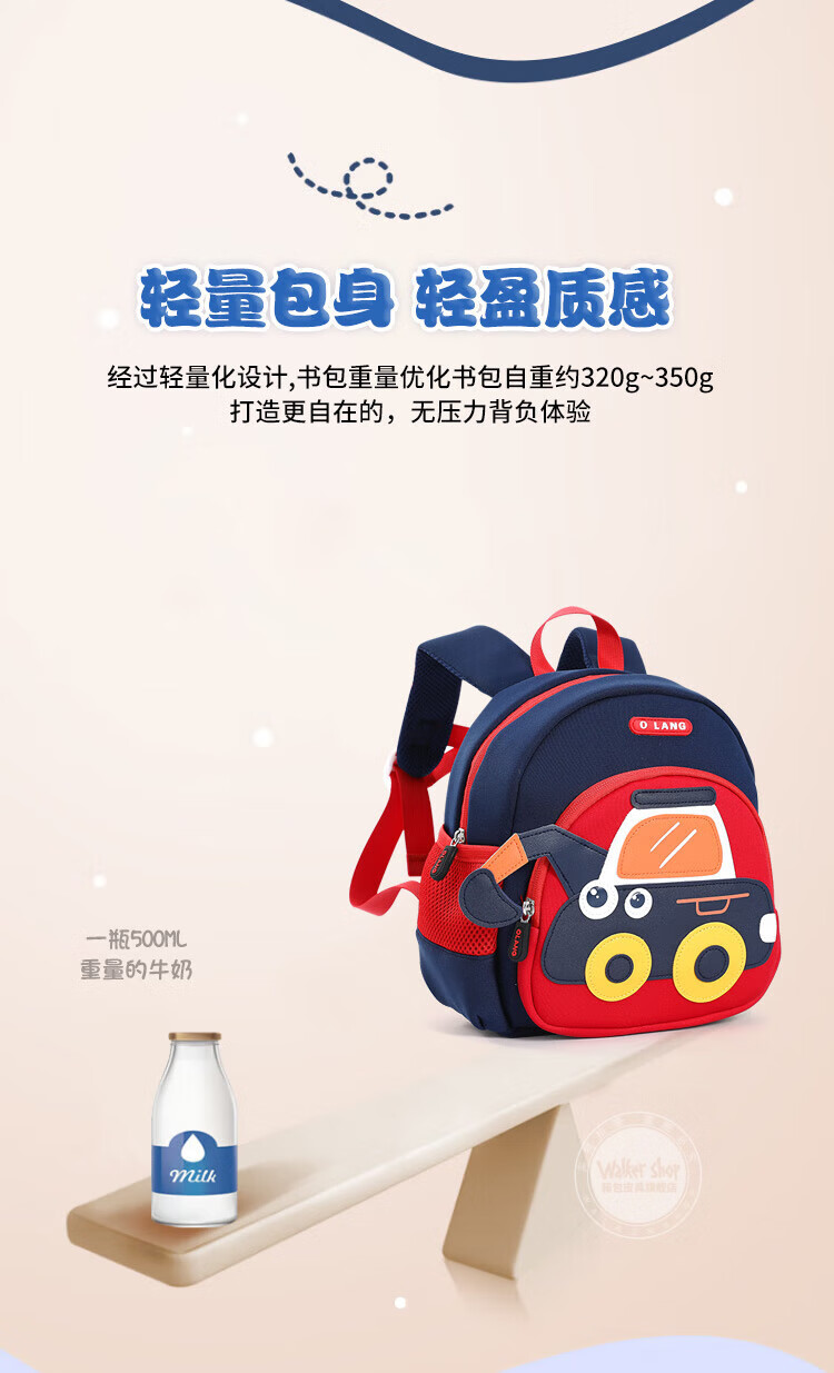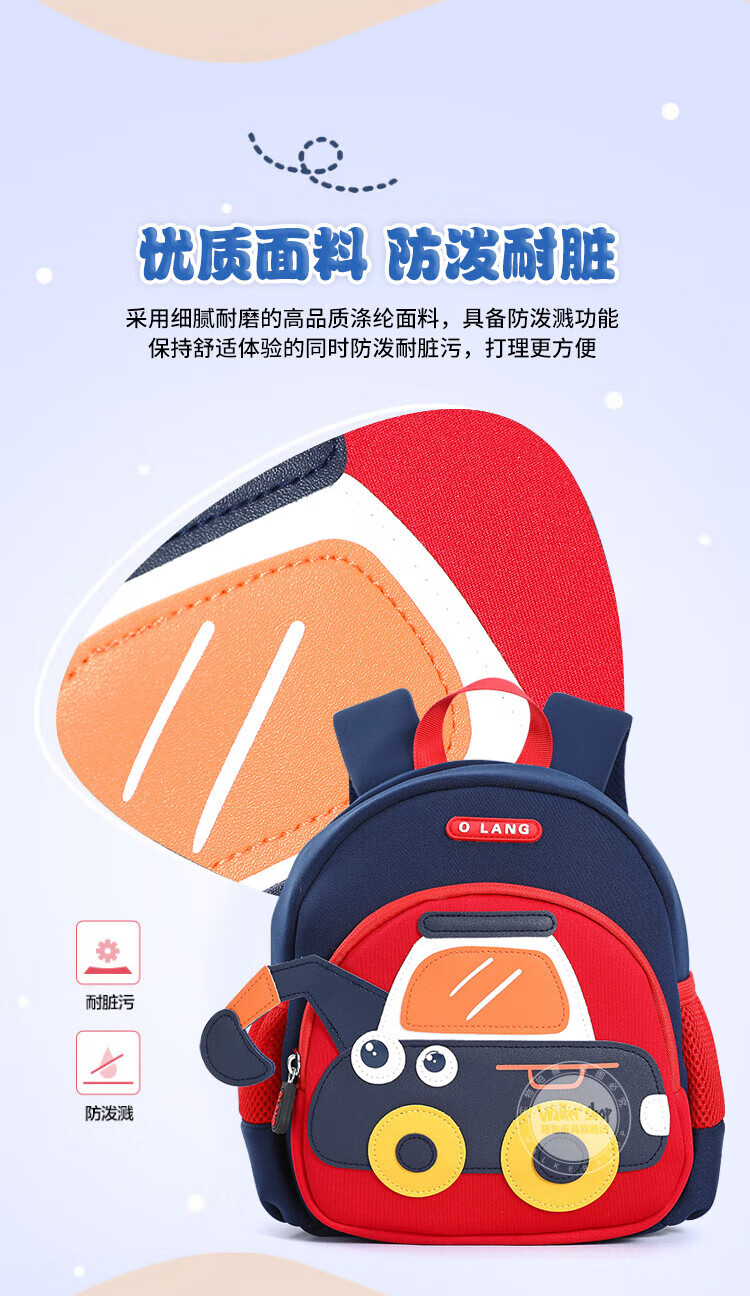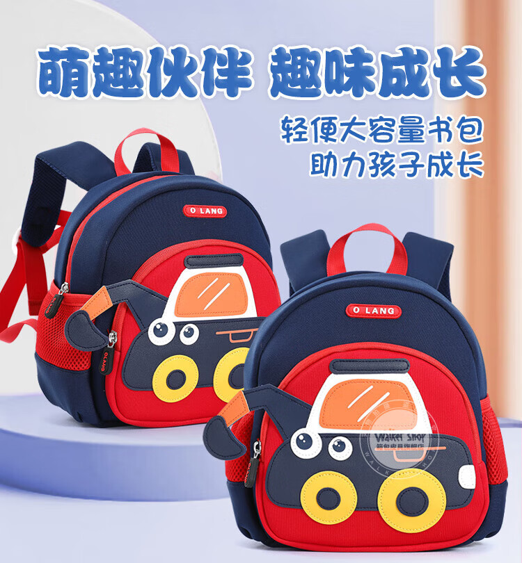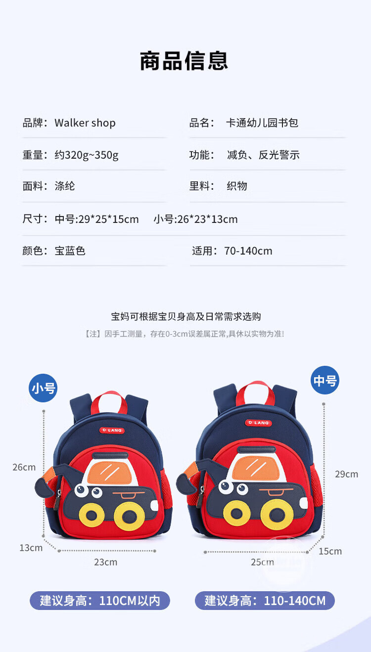 Walker Shop Kindergarten School Bag Children's Backpack Boys Girls Baby Small Backpack Cute Excavator Backpack Waterproof Bag Light Blue Small Size