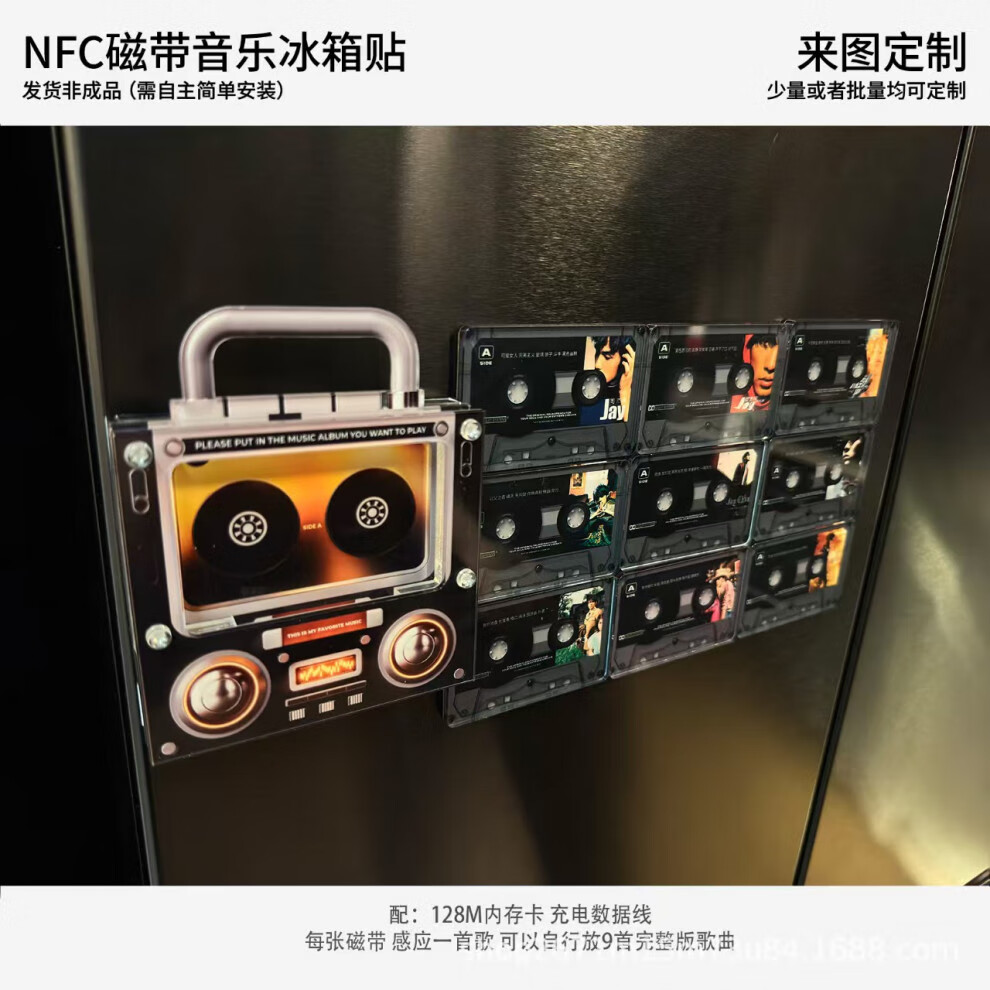 Shantou Lincun Refrigerator Magnet Music Player Music Magnetic Refrigerator Magnet NFC Sensor Automatically Plays Songs Acrylic Ornament Mayday NFC Singing Tape Refrigerator Magnet Comes with 9 Tapes