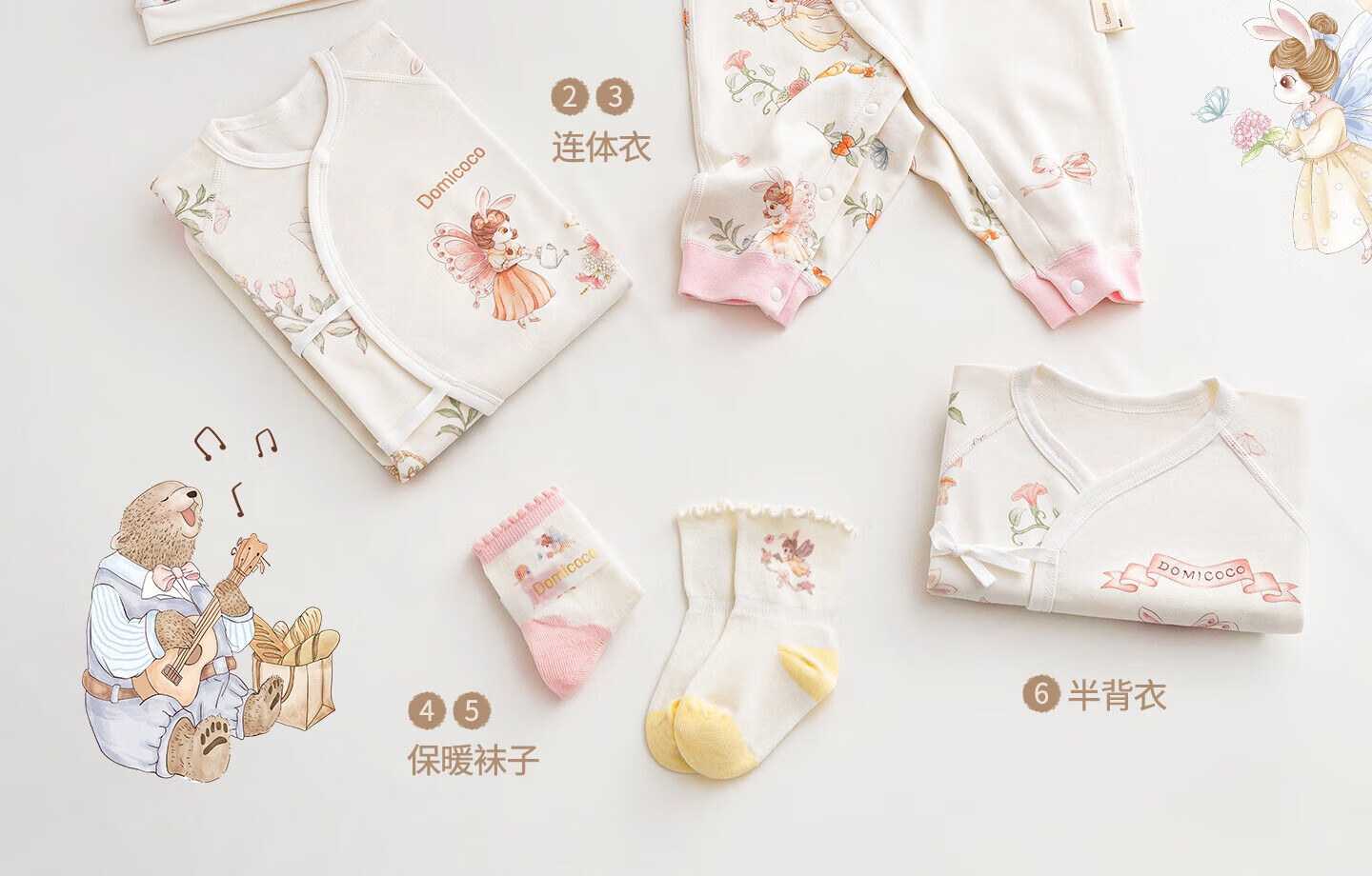 DOMICOCO Domi Coco Newborn Clothes Gift Box Set Baby Full Moon Gift Newborn Baby Meeting Gift High-end Gift 100-Day Gift Afternoon Tea Series 59cm