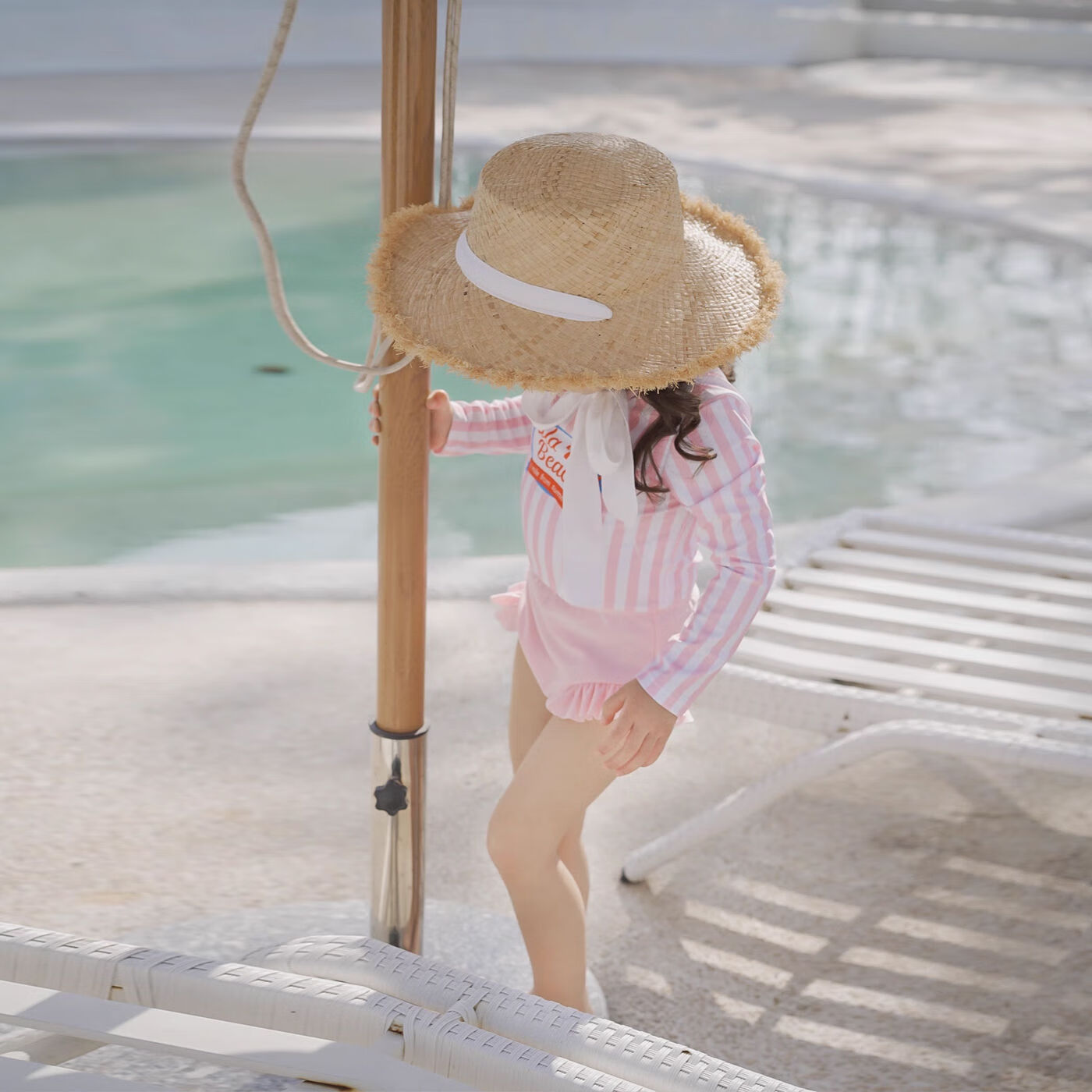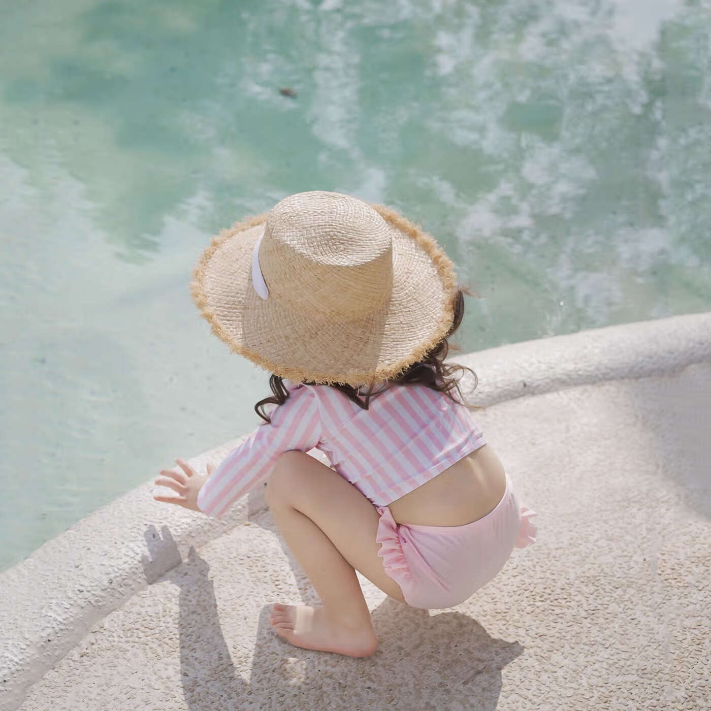 Big Tuan Xiaoyuan Girls' Split Swimsuit 2025 New Children's Long-Sleeved Sunscreen Quick-Drying Swimwear Baby Hot Spring Resort Swimsuit Trendy Pink 90 Size