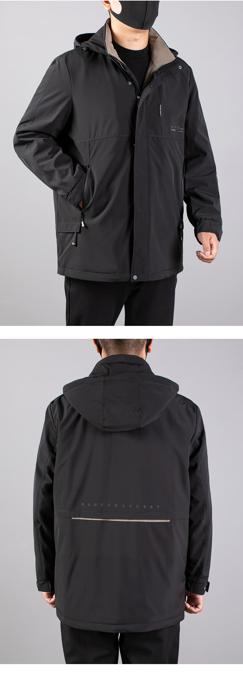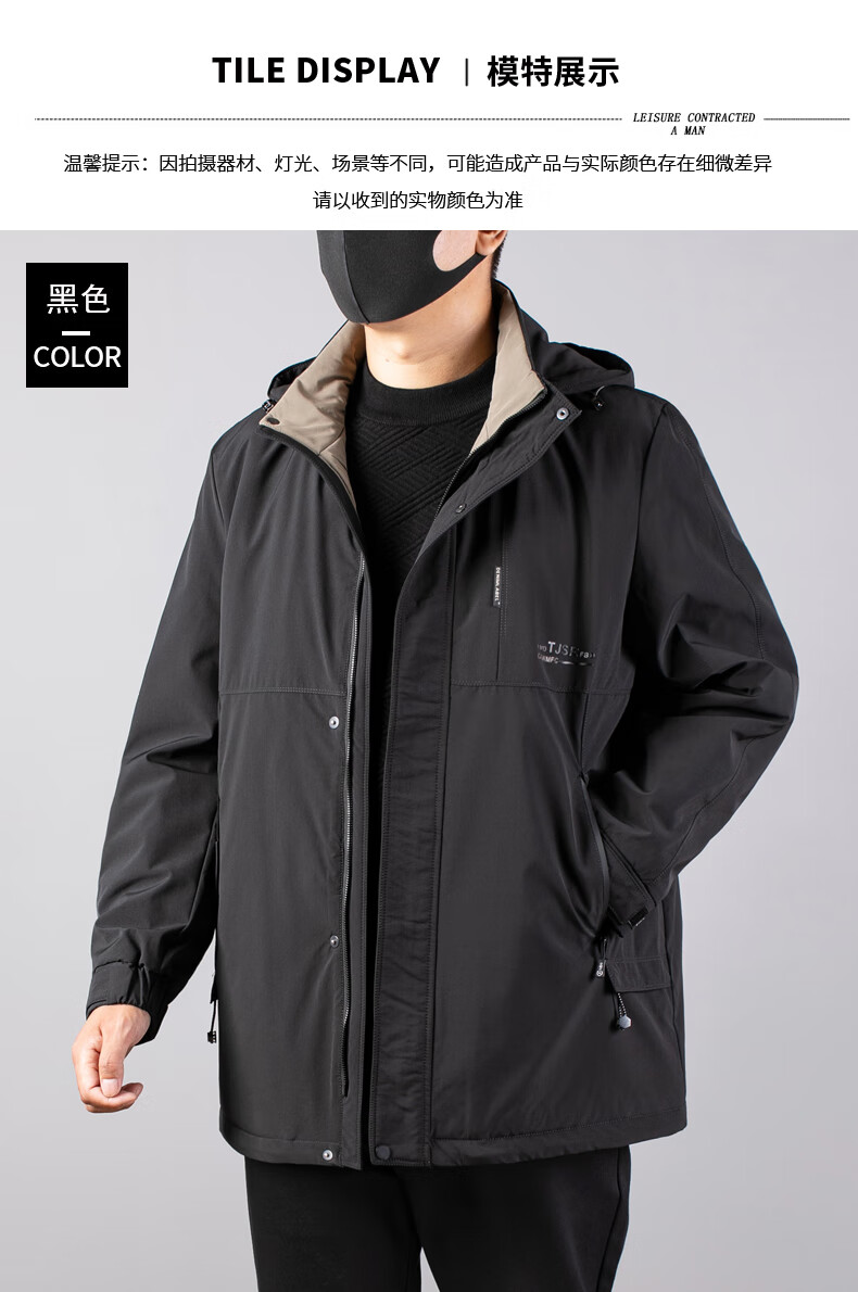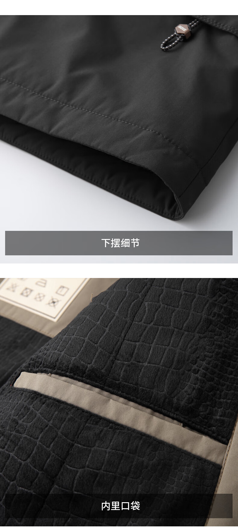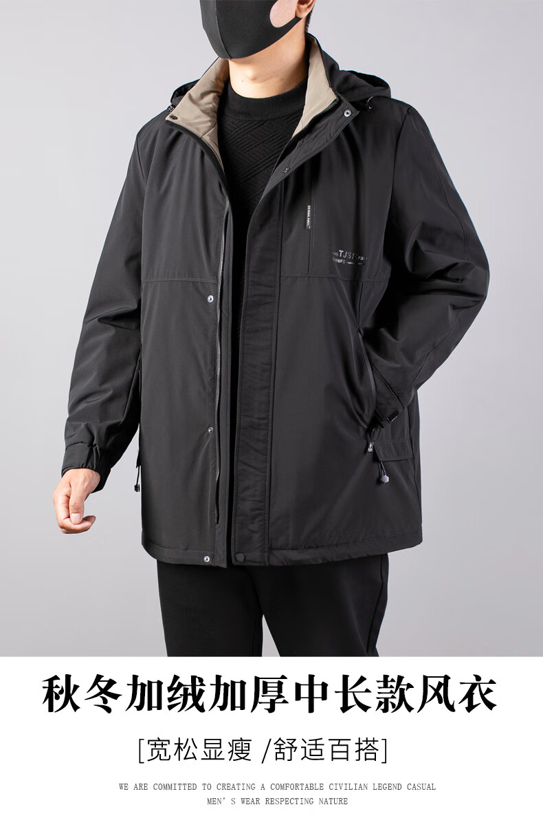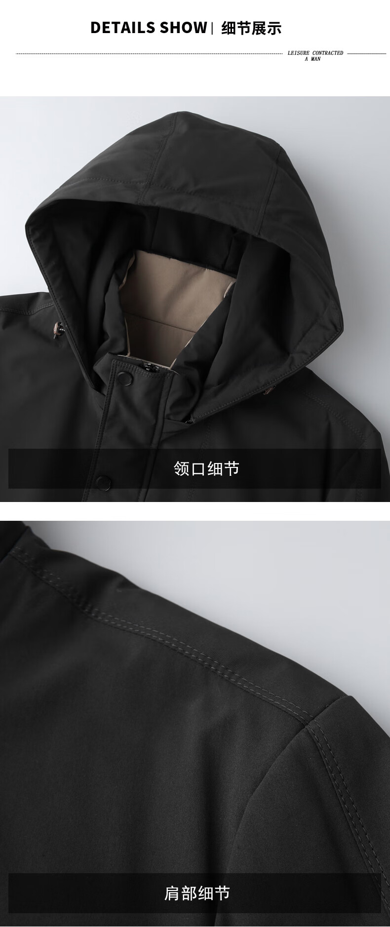 罗蒙(ROMON)高端大码中长款风衣中年胖男秋冬加绒保暖外套加肥加大宽松薄棉衣 黑色 5XL 230-240斤