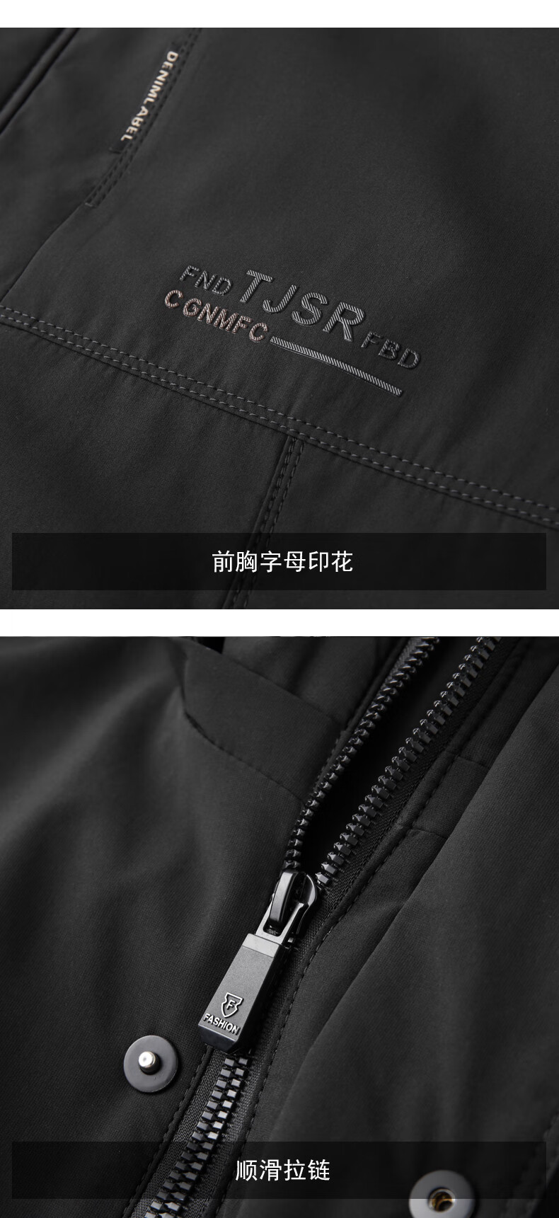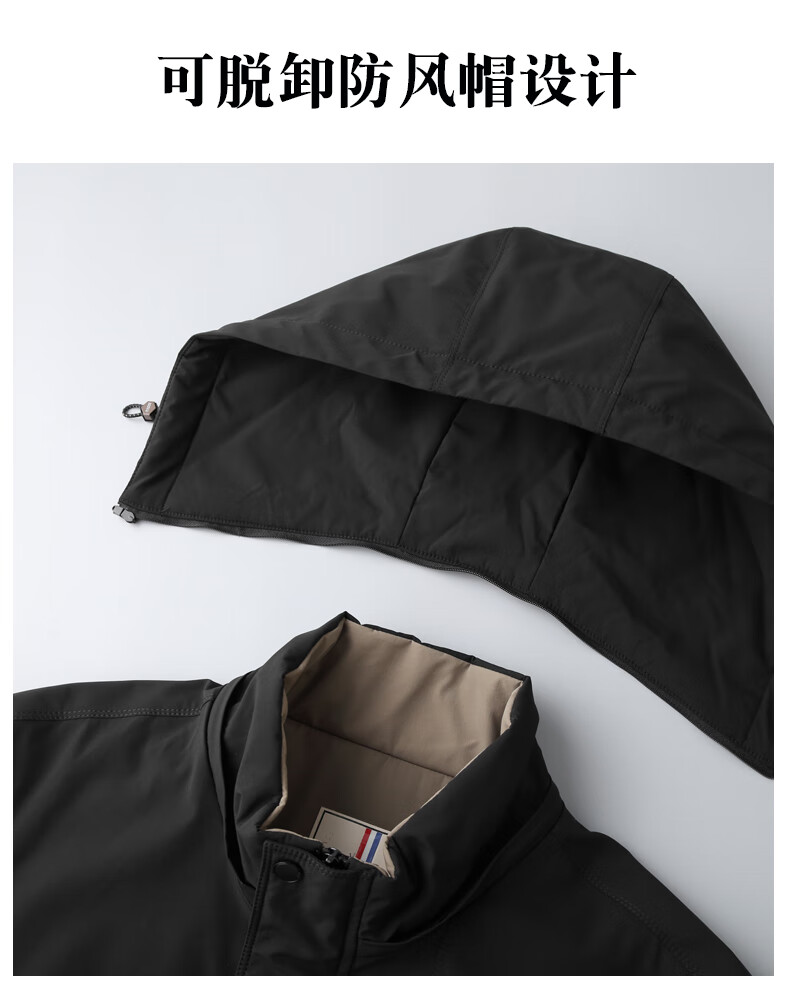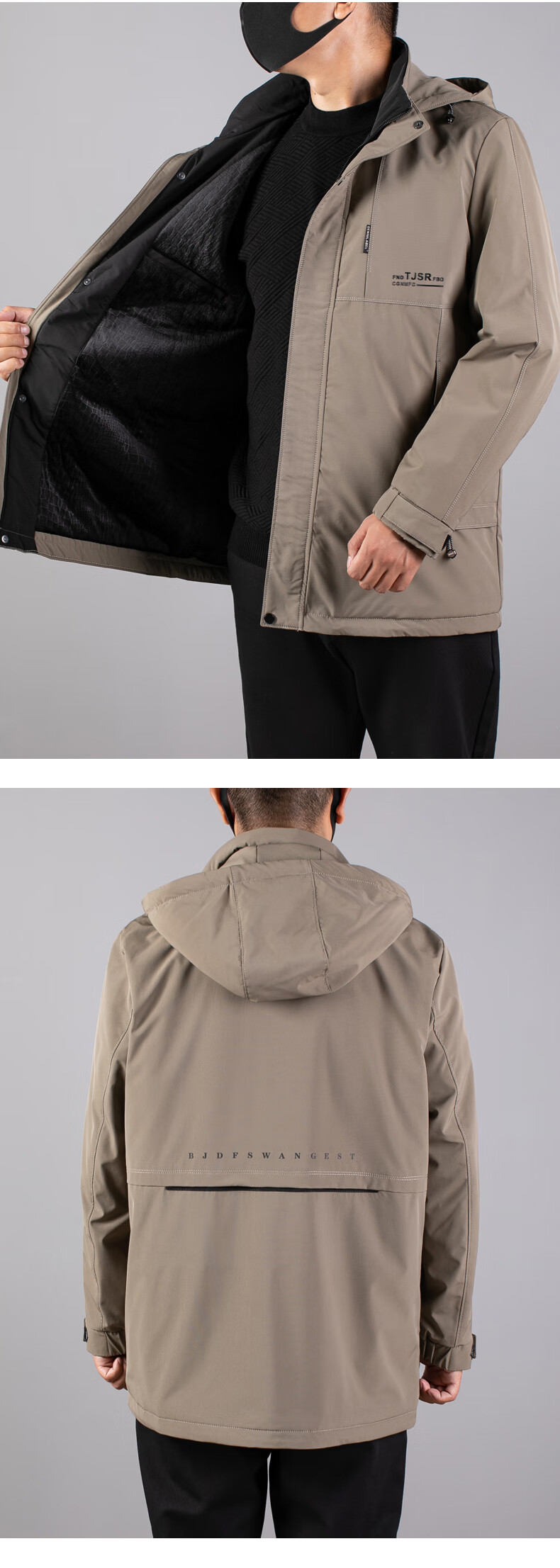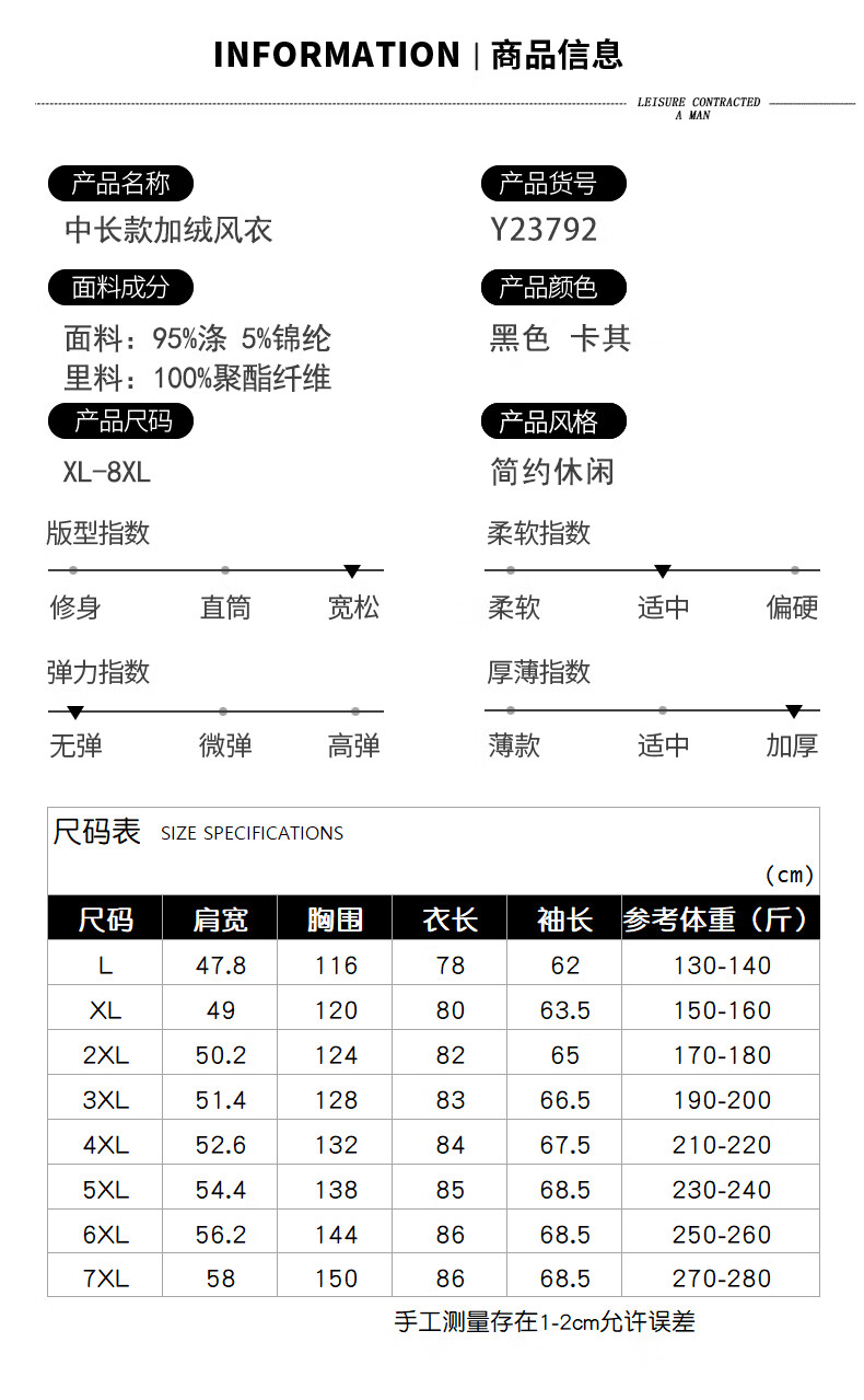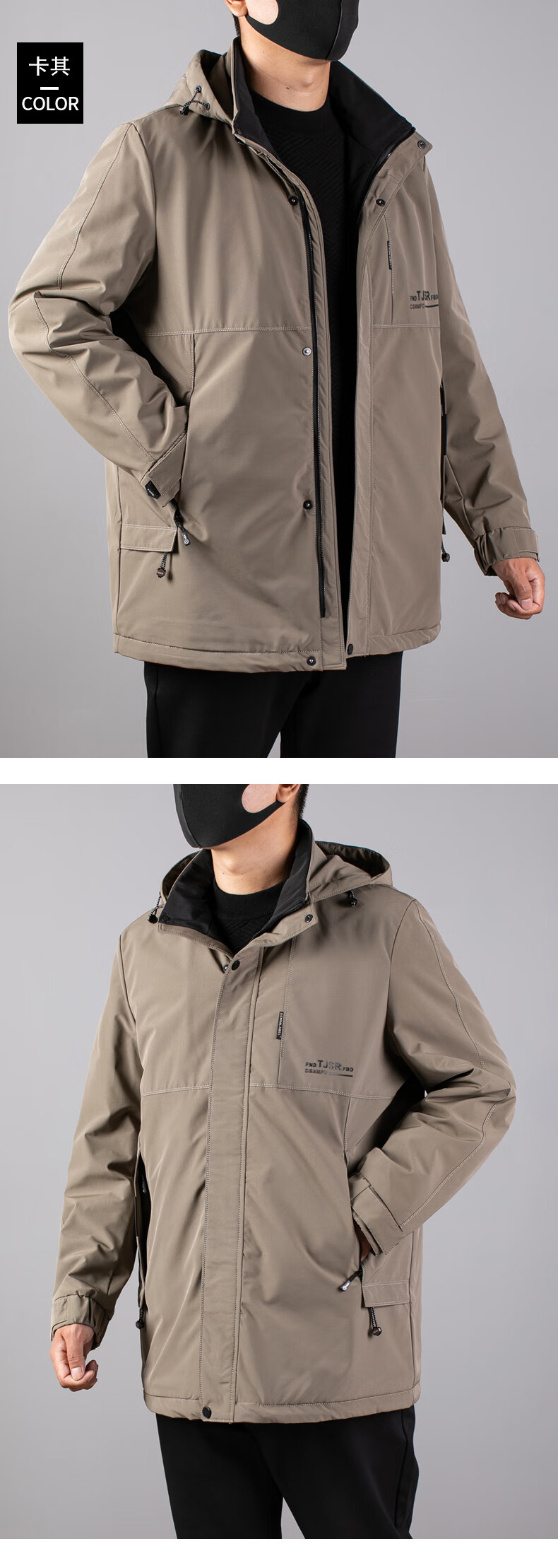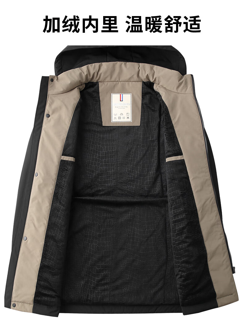 罗蒙(ROMON)高端大码中长款风衣中年胖男秋冬加绒保暖外套加肥加大宽松薄棉衣 黑色 5XL 230-240斤