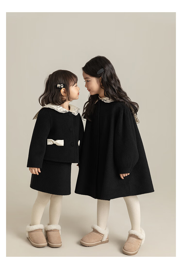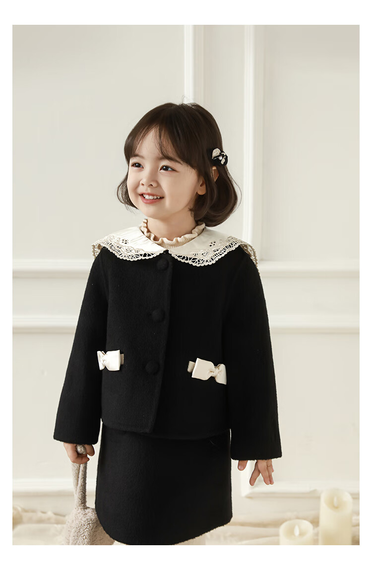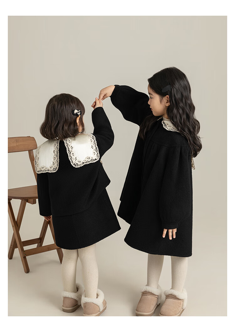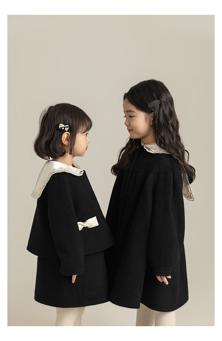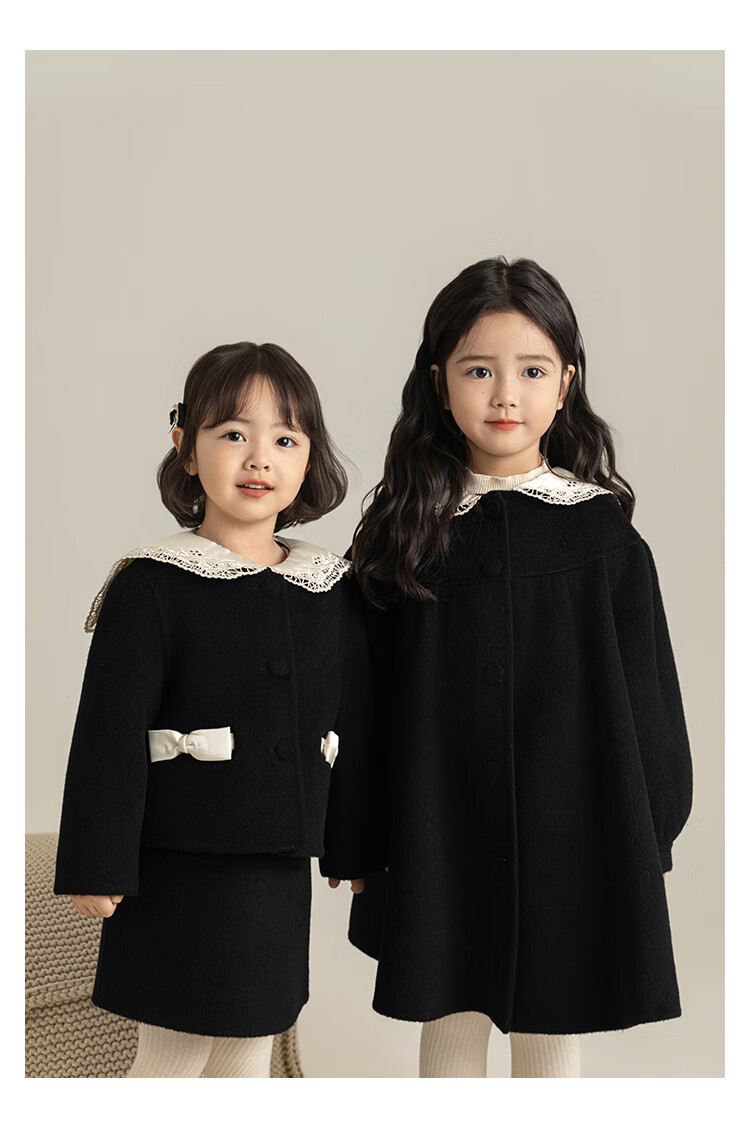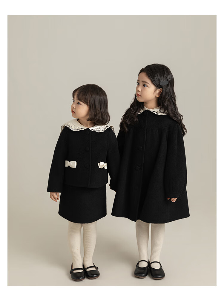 Youyou Girls 2025 Winter New Double-Sided Wool Long Wool Coat Fashionable Warm Little Fragrant Girl Suit Double-Sided Wool Coat Black D4773 100 cm