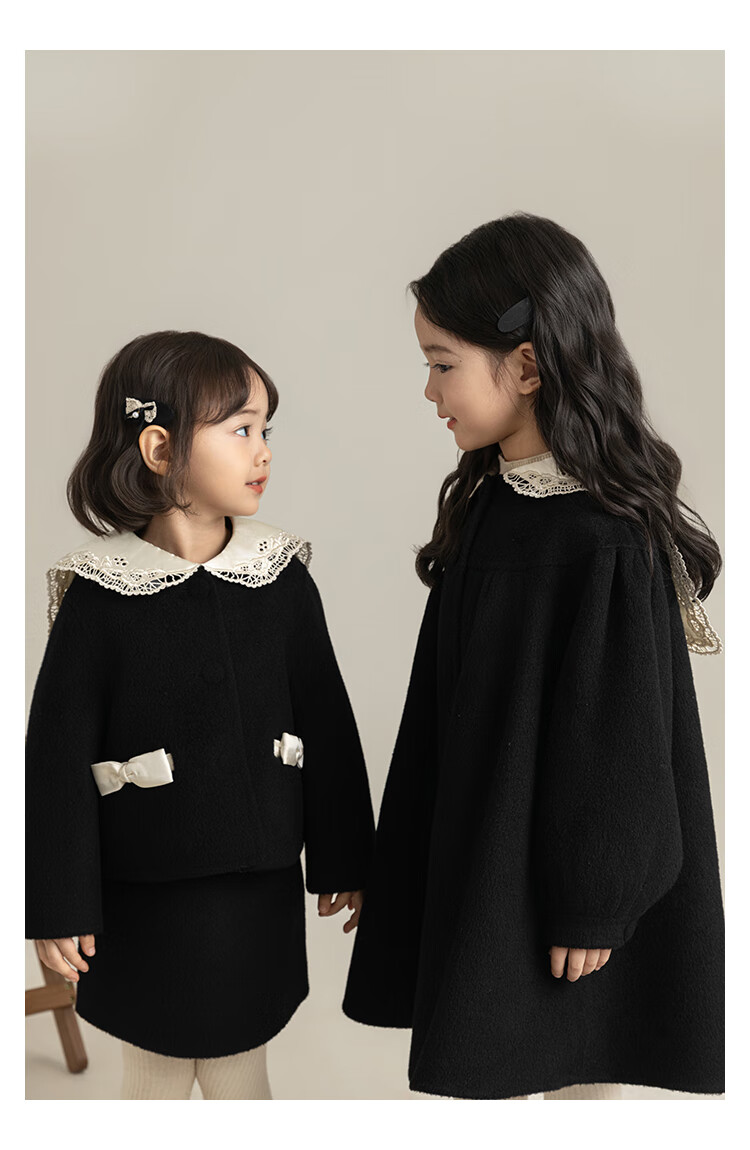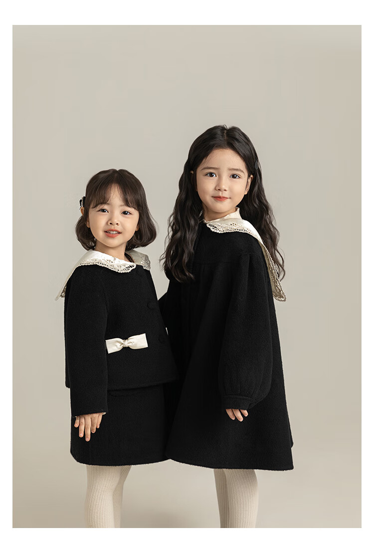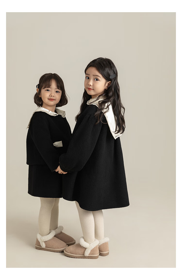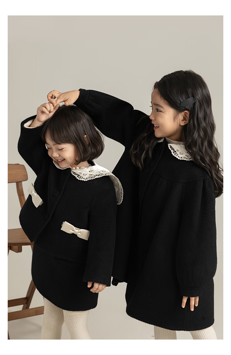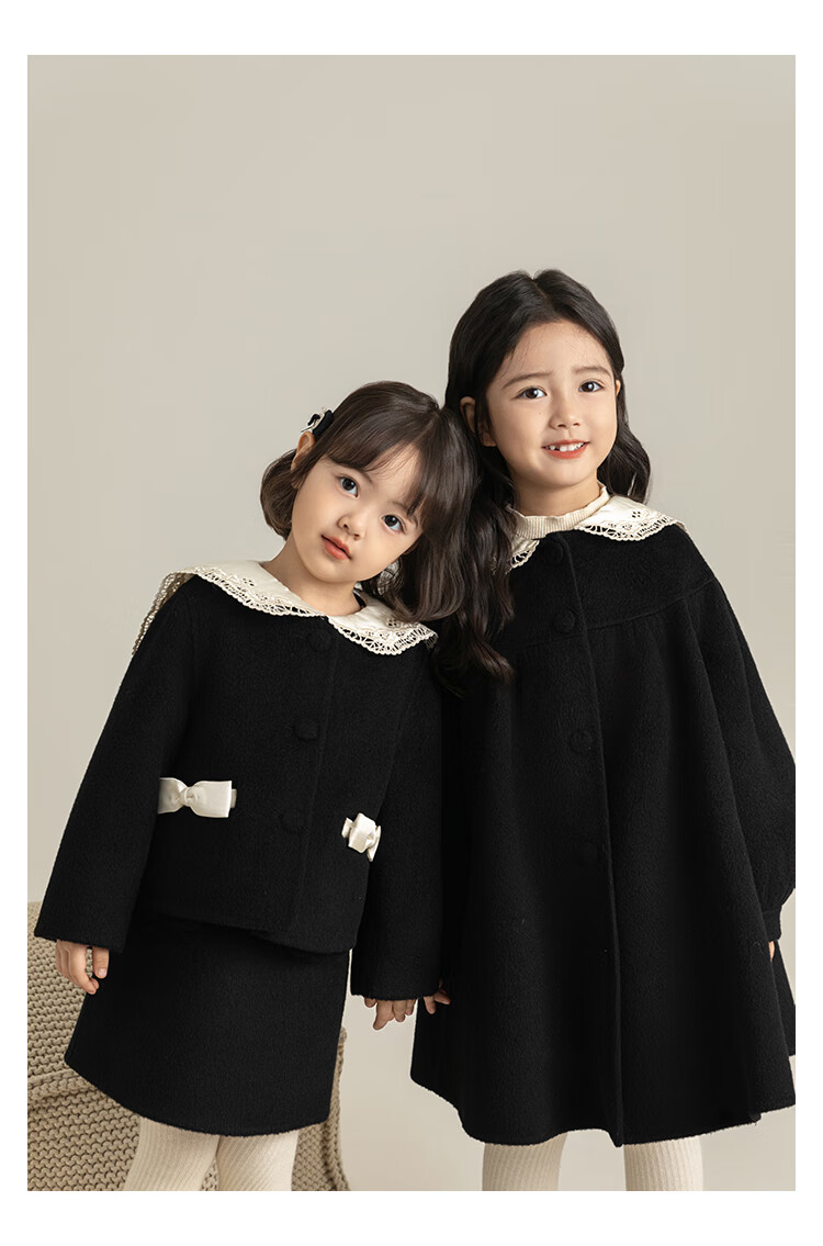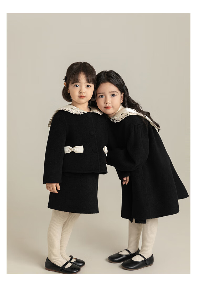 Youyou Girls 2025 Winter New Double-Sided Wool Long Wool Coat Fashionable Warm Little Fragrant Girl Suit Double-Sided Wool Coat Black D4773 100 cm
