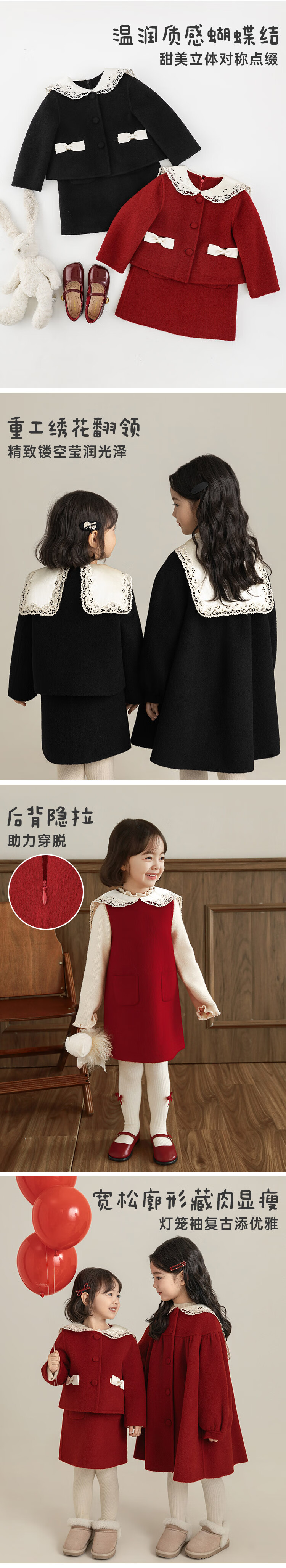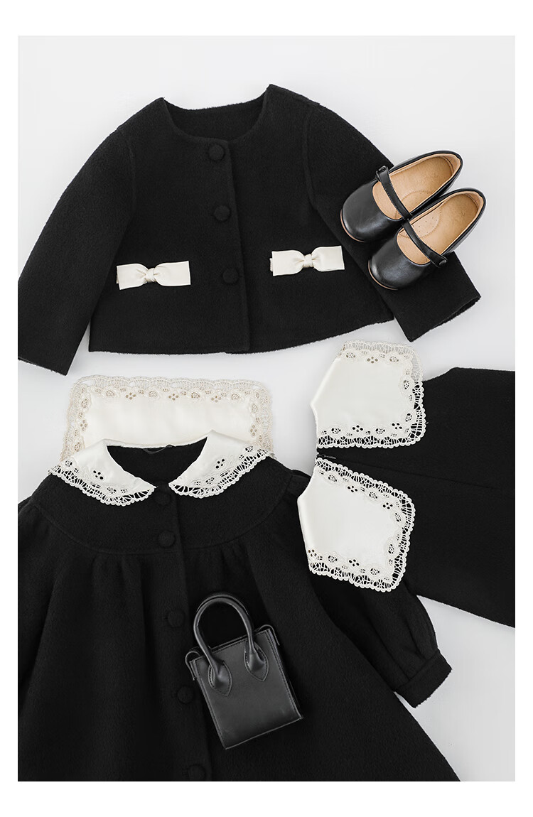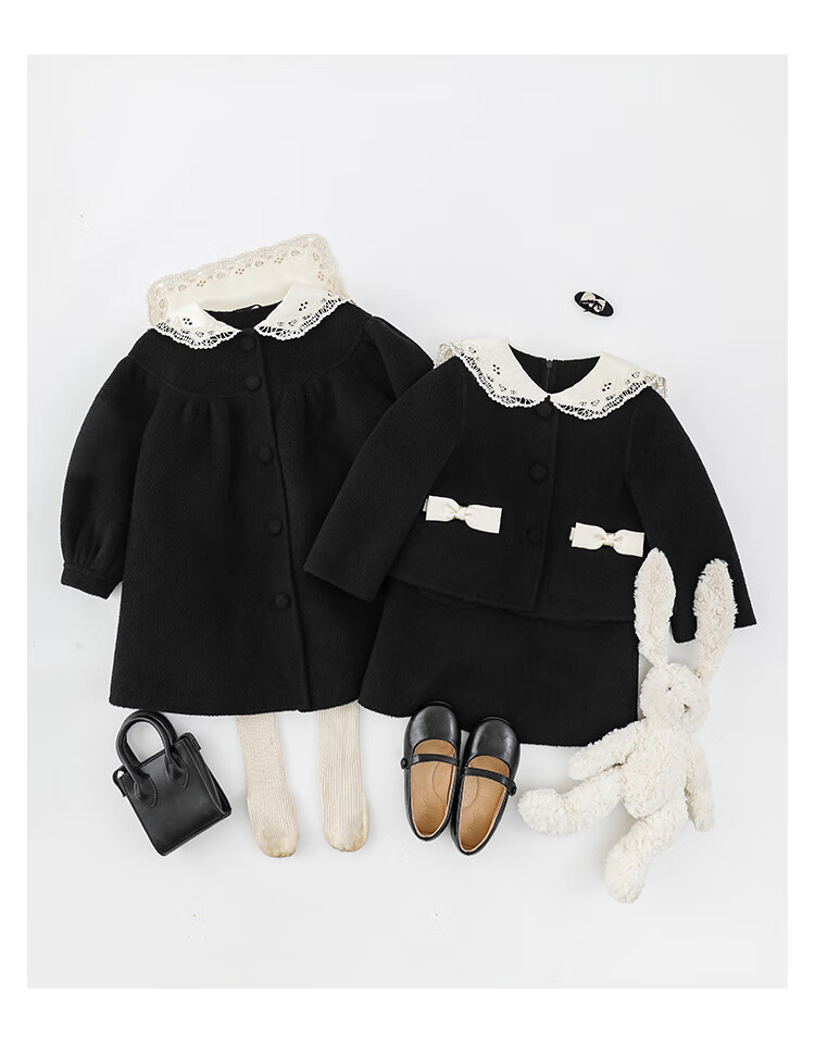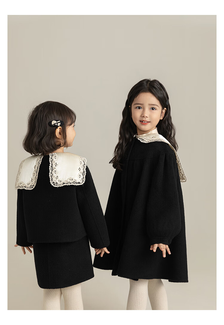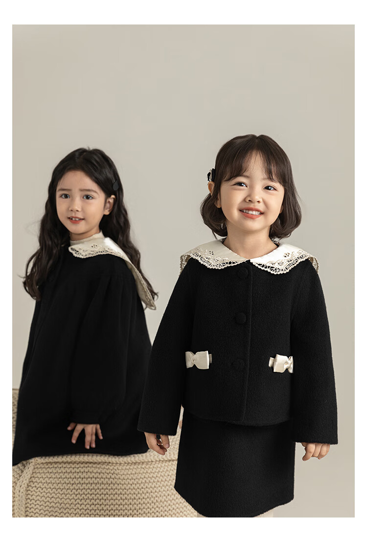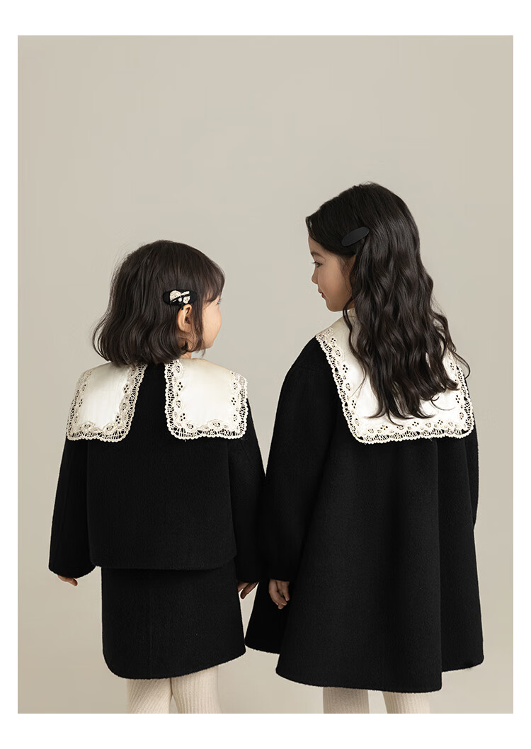 Youyou Girls 2025 Winter New Double-Sided Wool Long Wool Coat Fashionable Warm Little Fragrant Girl Suit Double-Sided Wool Coat Black D4773 100 cm