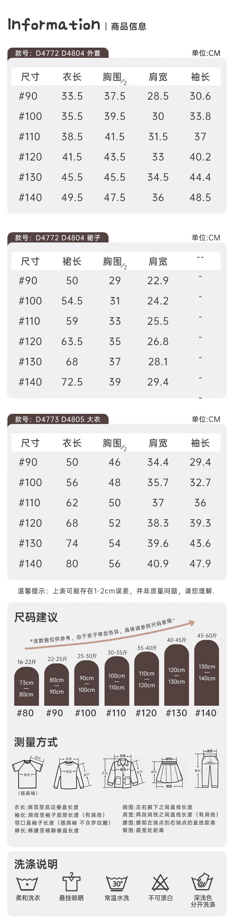 Size (cm) 42 44 46 48 50
