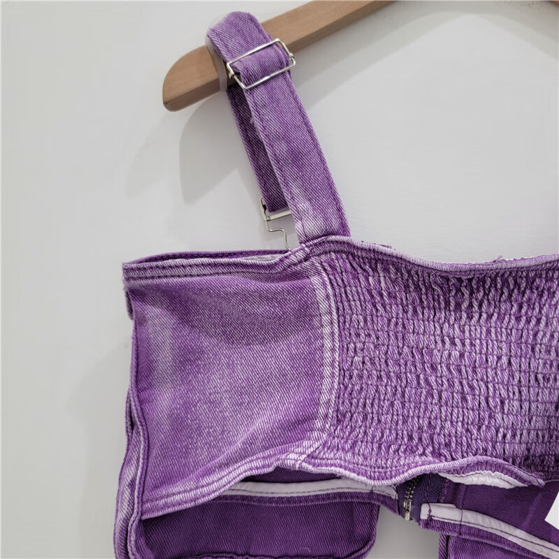 European and American style design three-dimensional work clothes pockets retro hot girl denim tube top suspender sleeveless top for women trendy purple 12156 S