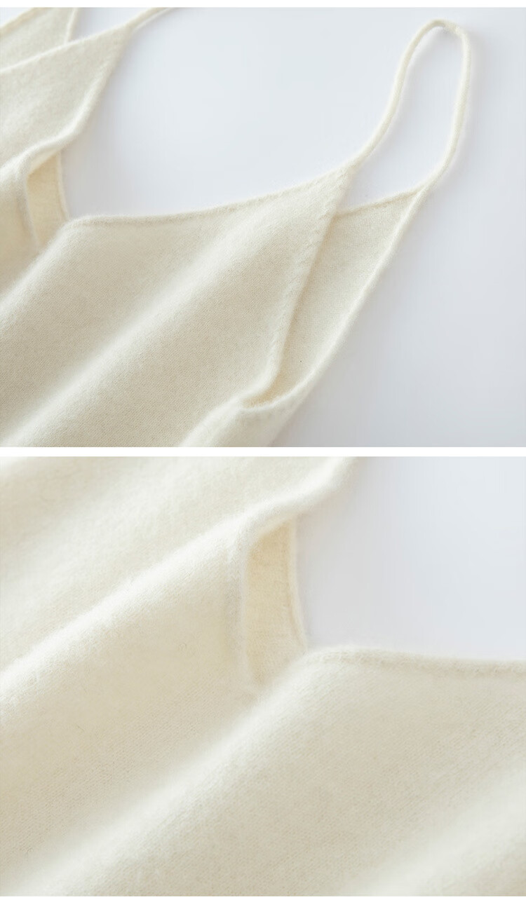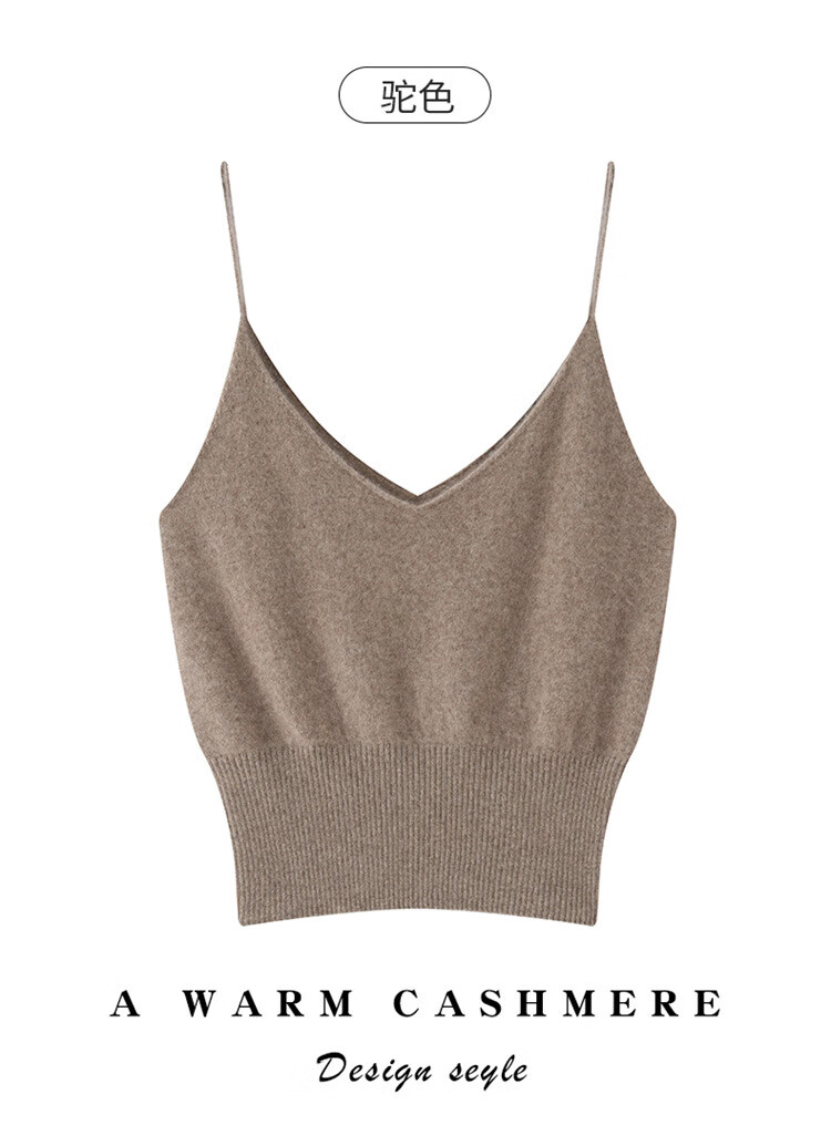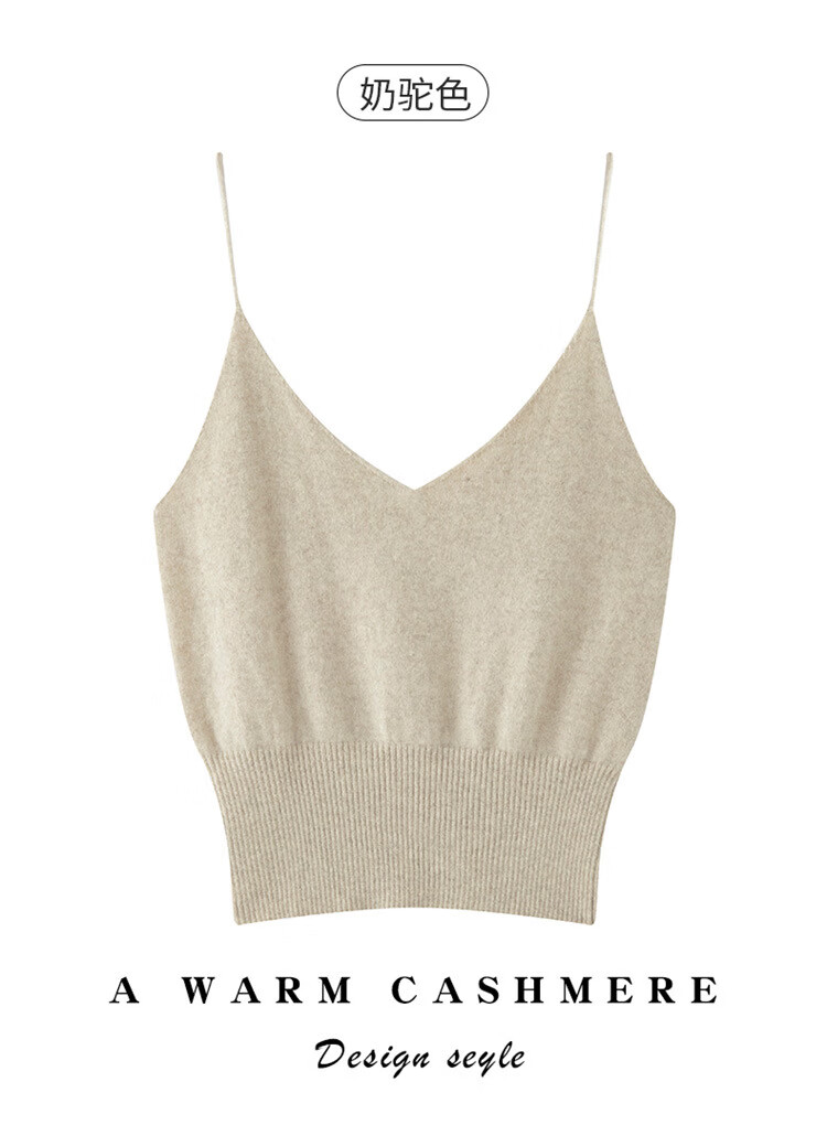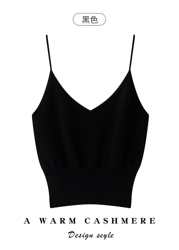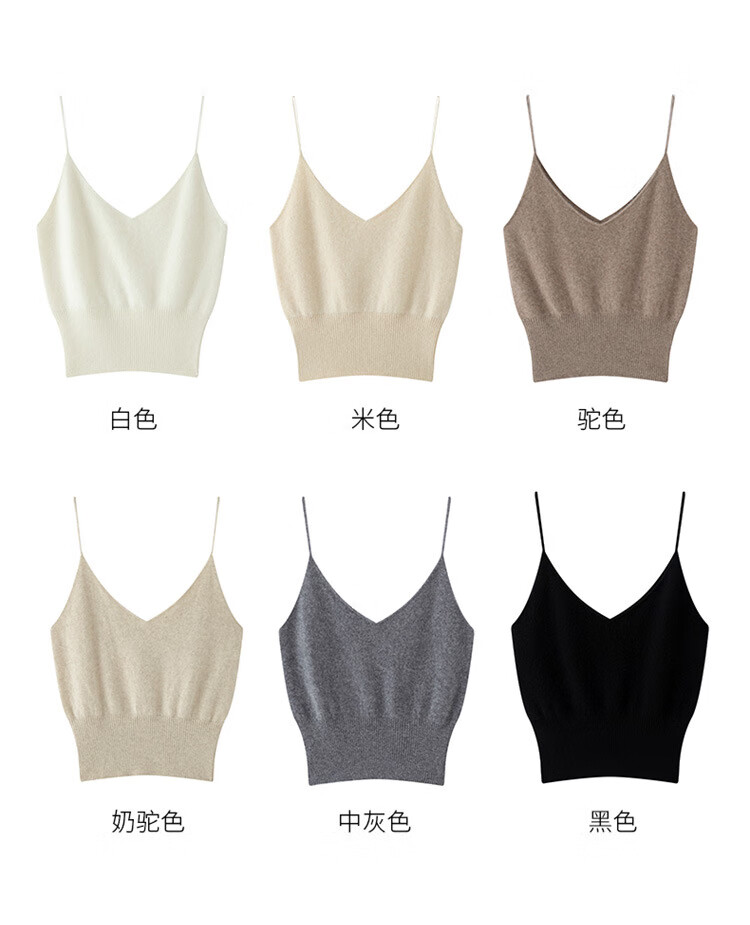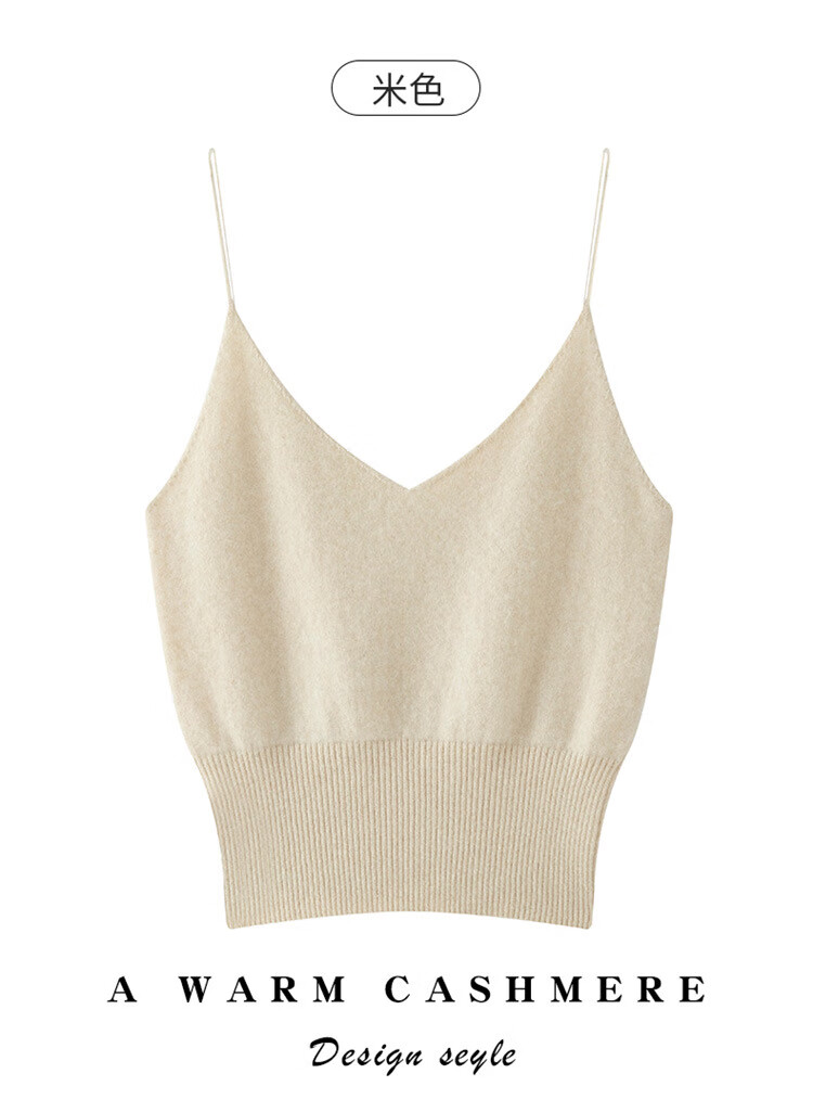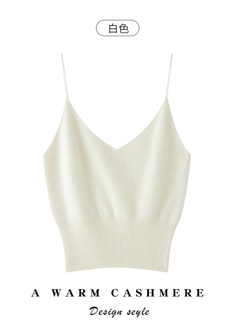 Autumn and winter cashmere knitted tube top women's V-neck spaghetti straps solid color sleeveless inner bottoming shirt suspenders white M