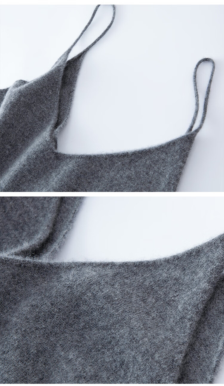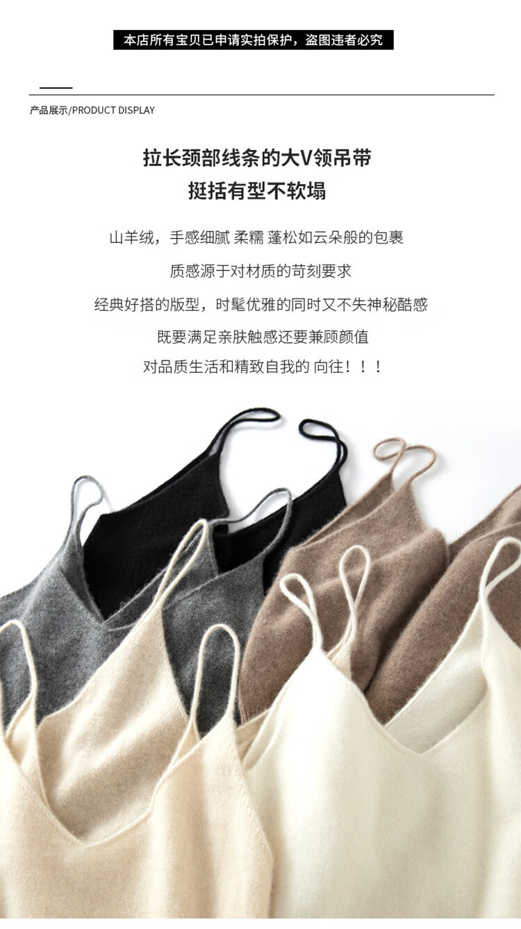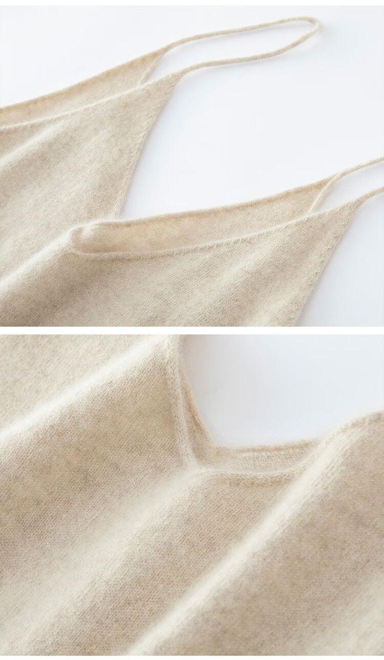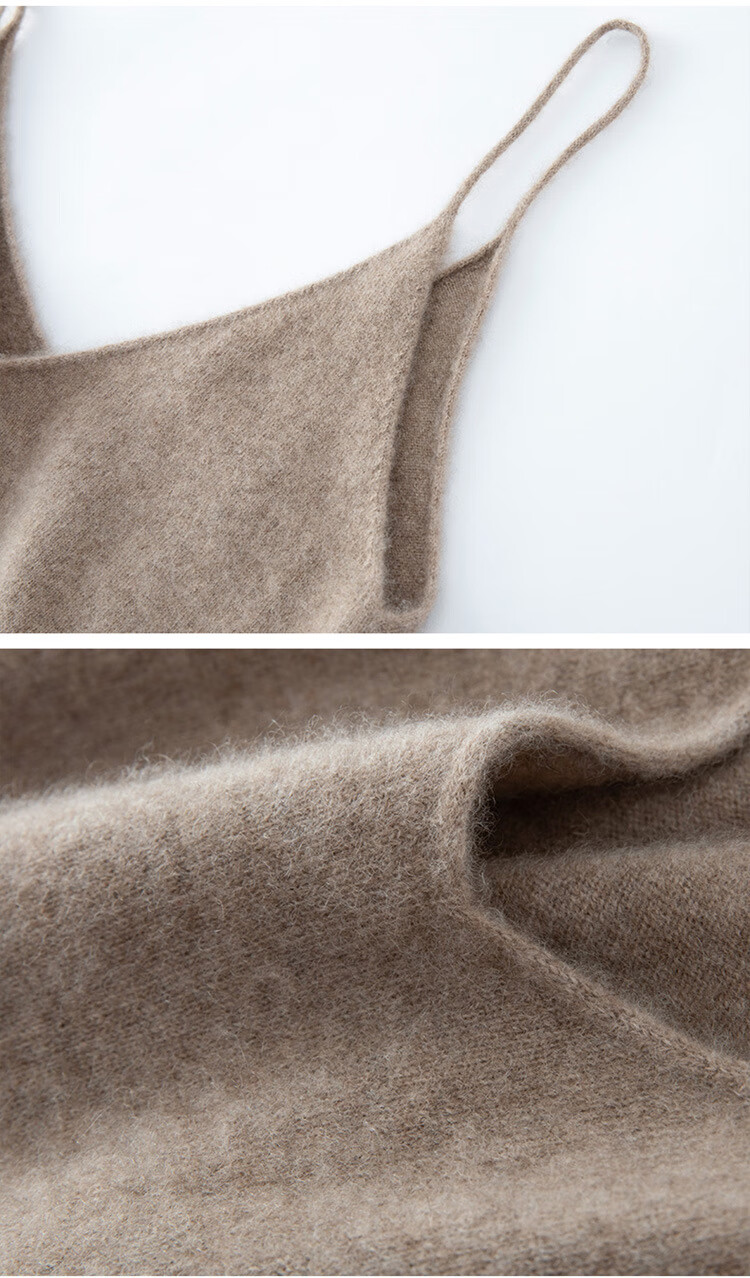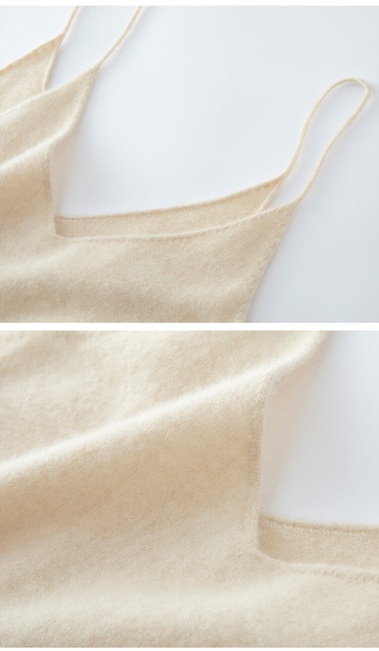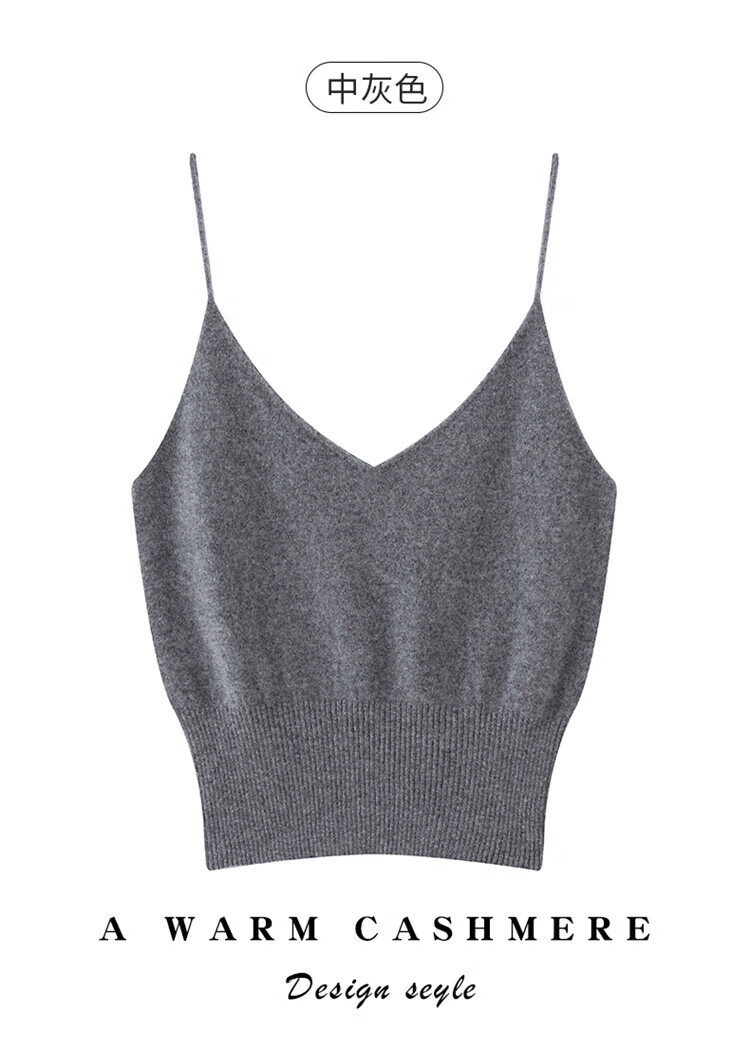 Autumn and winter cashmere knitted tube top women's V-neck spaghetti straps solid color sleeveless inner bottoming shirt suspenders white M