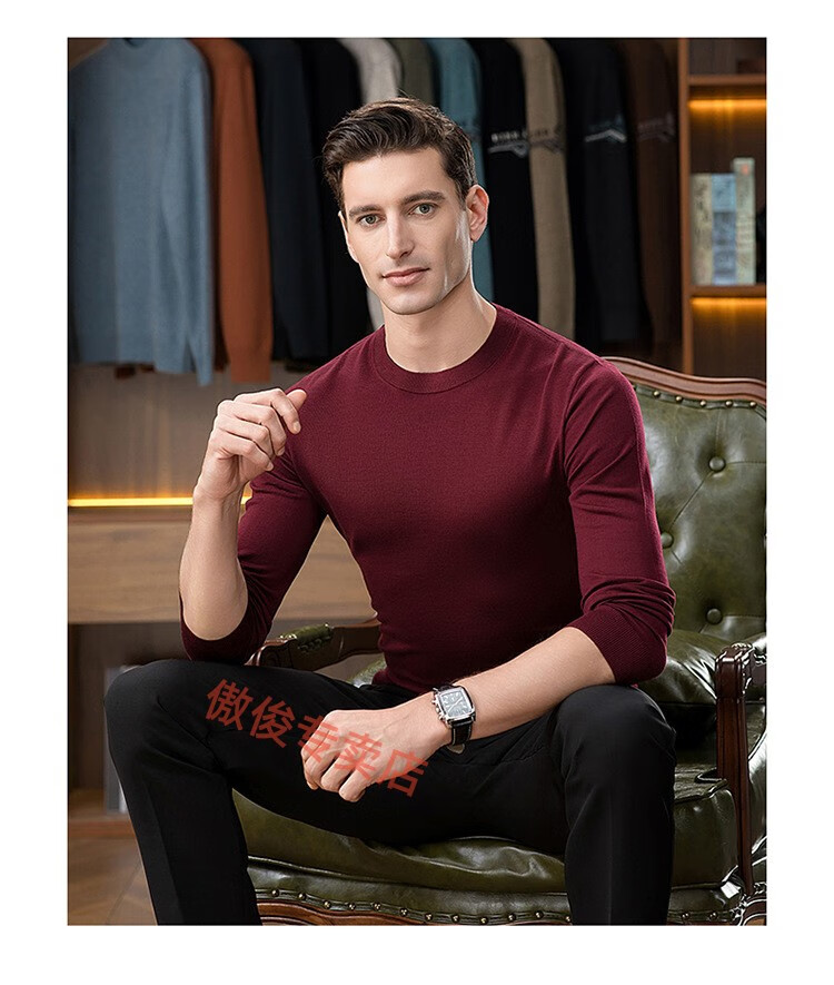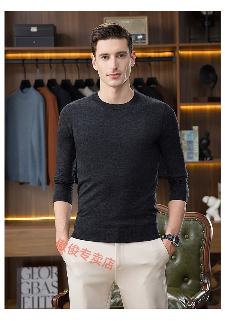 Lilan Business New Men's Light Luxury Wool Sweater Autumn and Winter Round Neck Solid Color Simple Knitted Bottoming Casual Dad Wear Carbon Gray 14XL (110) 170 (recommended 120-140Jin Jin equals 0.5kg)