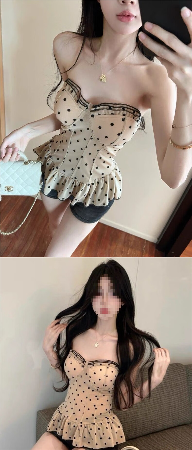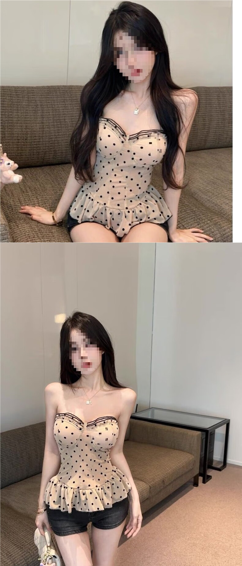 Fishbone sexy slimming polka dot camisole summer new temperament tube top strapless top commuter long style women strapless (brown one size)