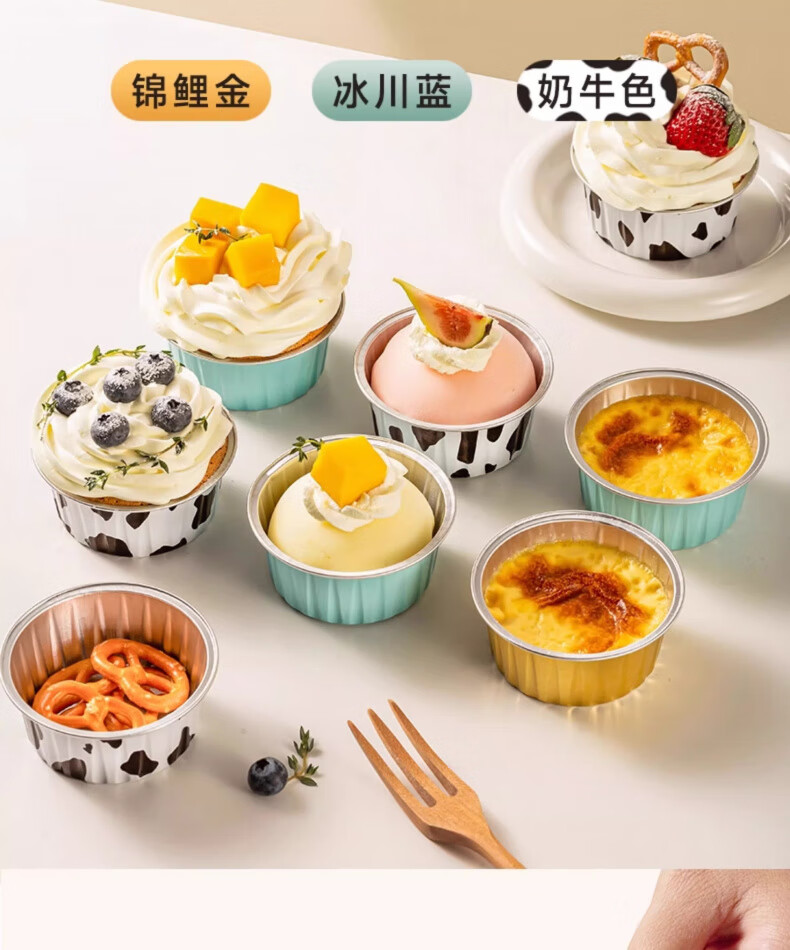 DEATKN German tin foil pudding bowl egg tart cup air fryer paper household oven cake baking mold special aluminum foil cup 30 rectangular + 30 golden small bowl 1