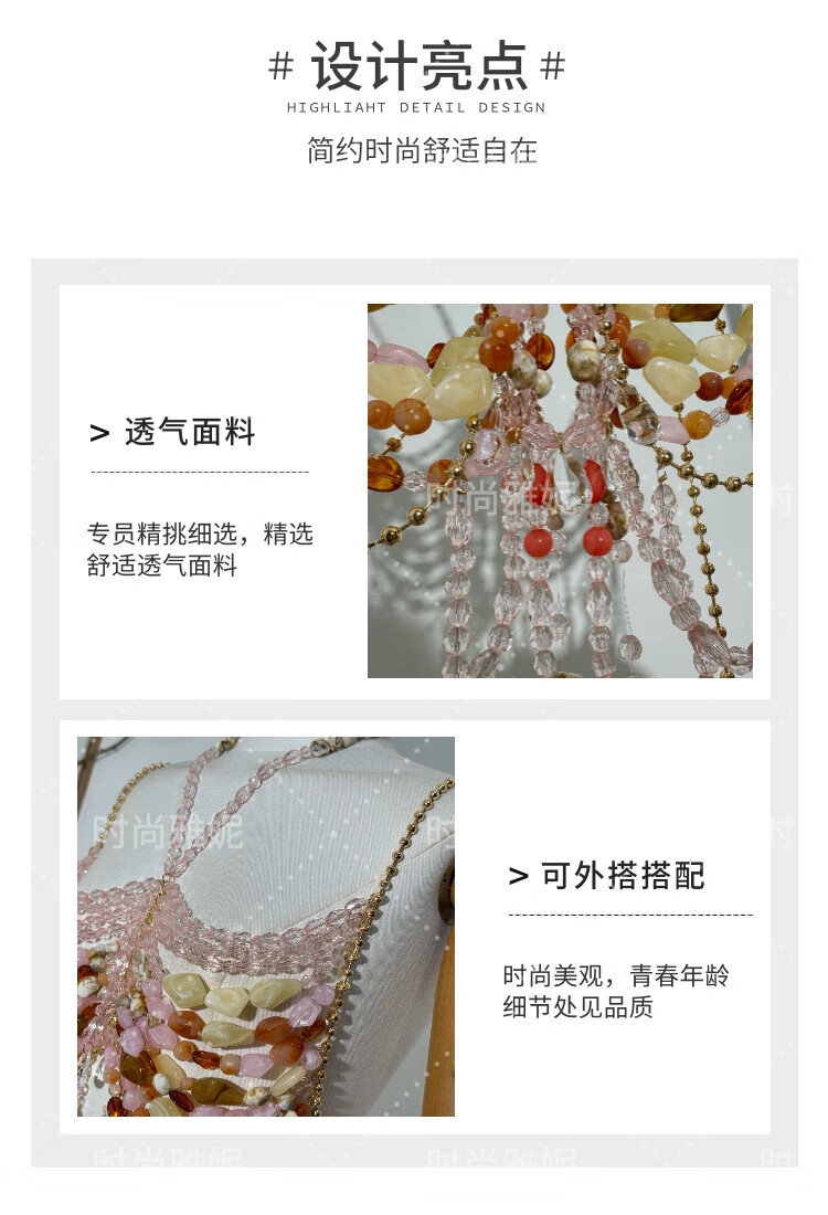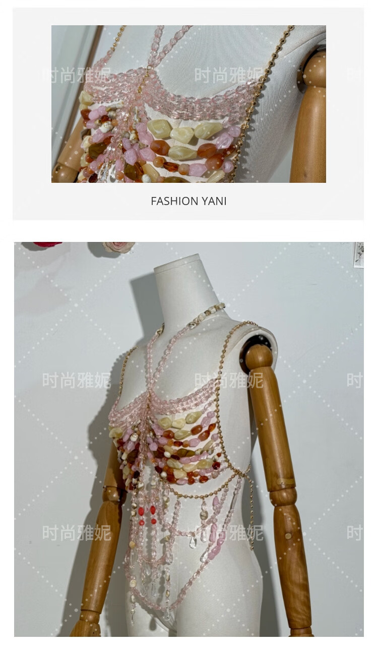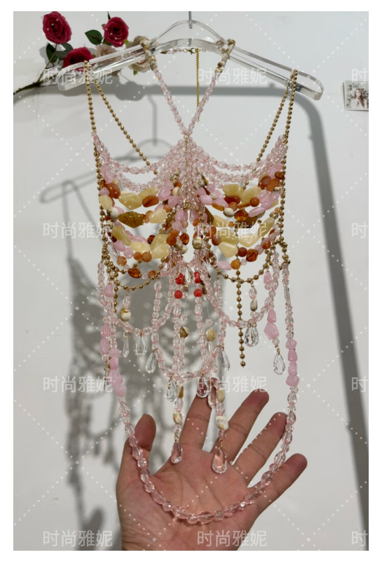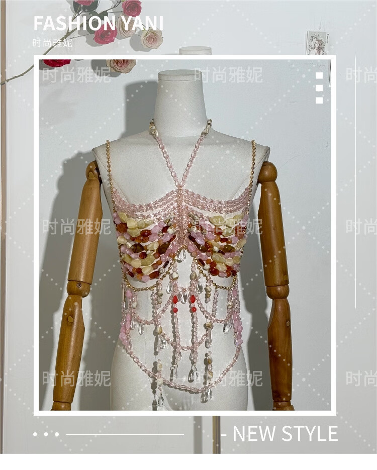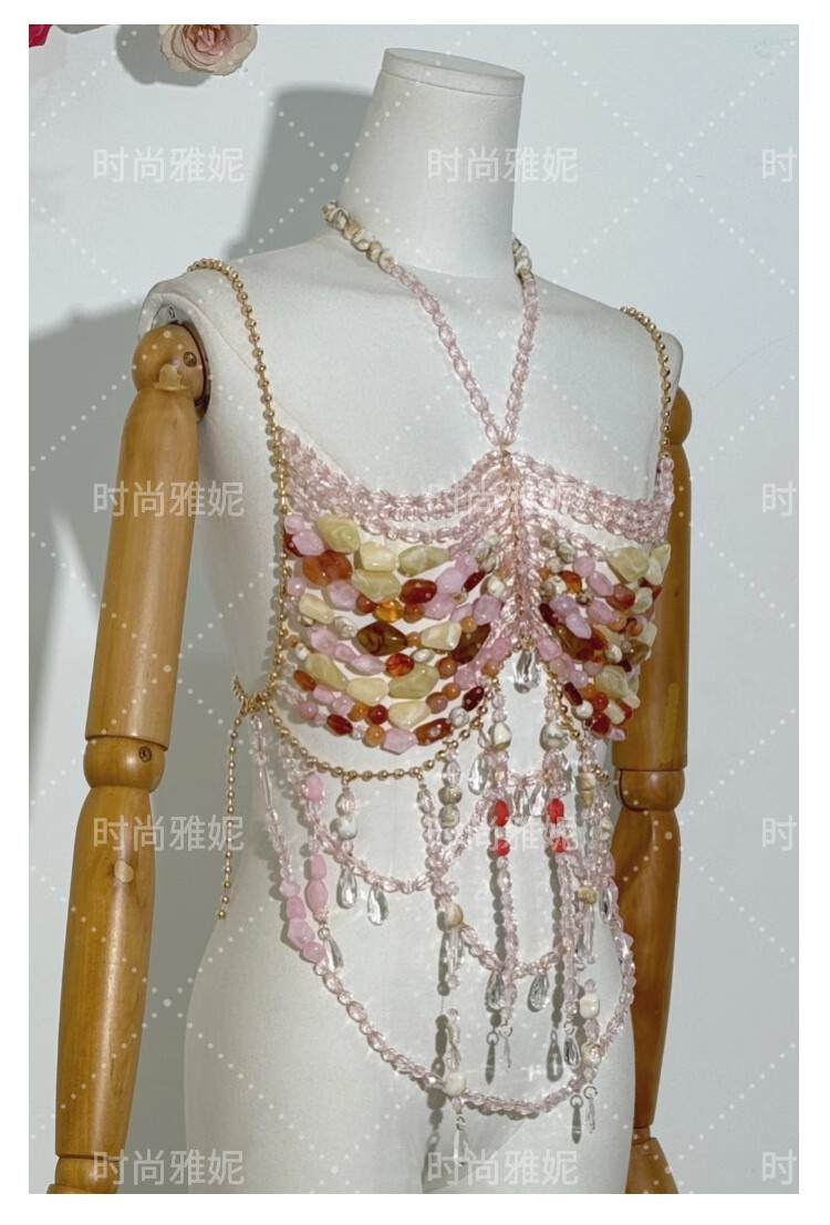 Acrylic beaded halterneck, versatile hollow gemstone backless vest, sexy colorful beaded tube top bra, picture color, one size fits all