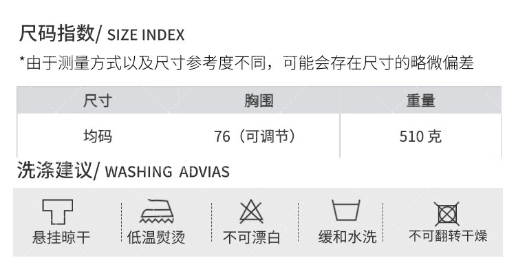 China (cm) 165 / 88-90 170 / 96-98 175 / 108-110 180 / 118-122 185 / 126-130