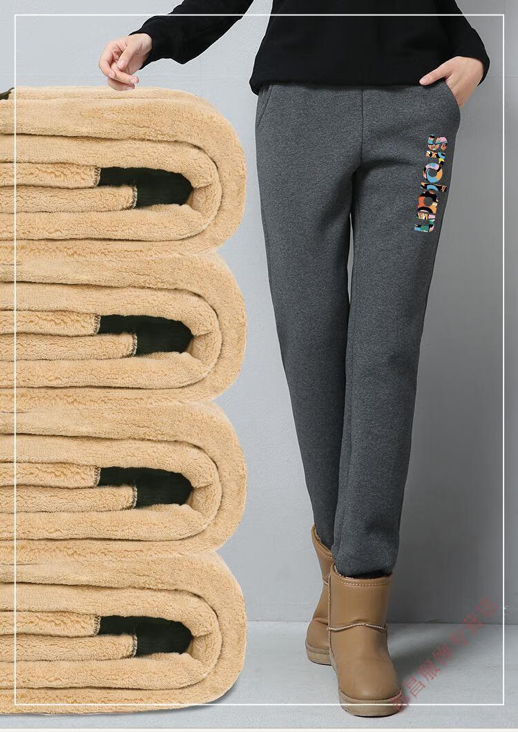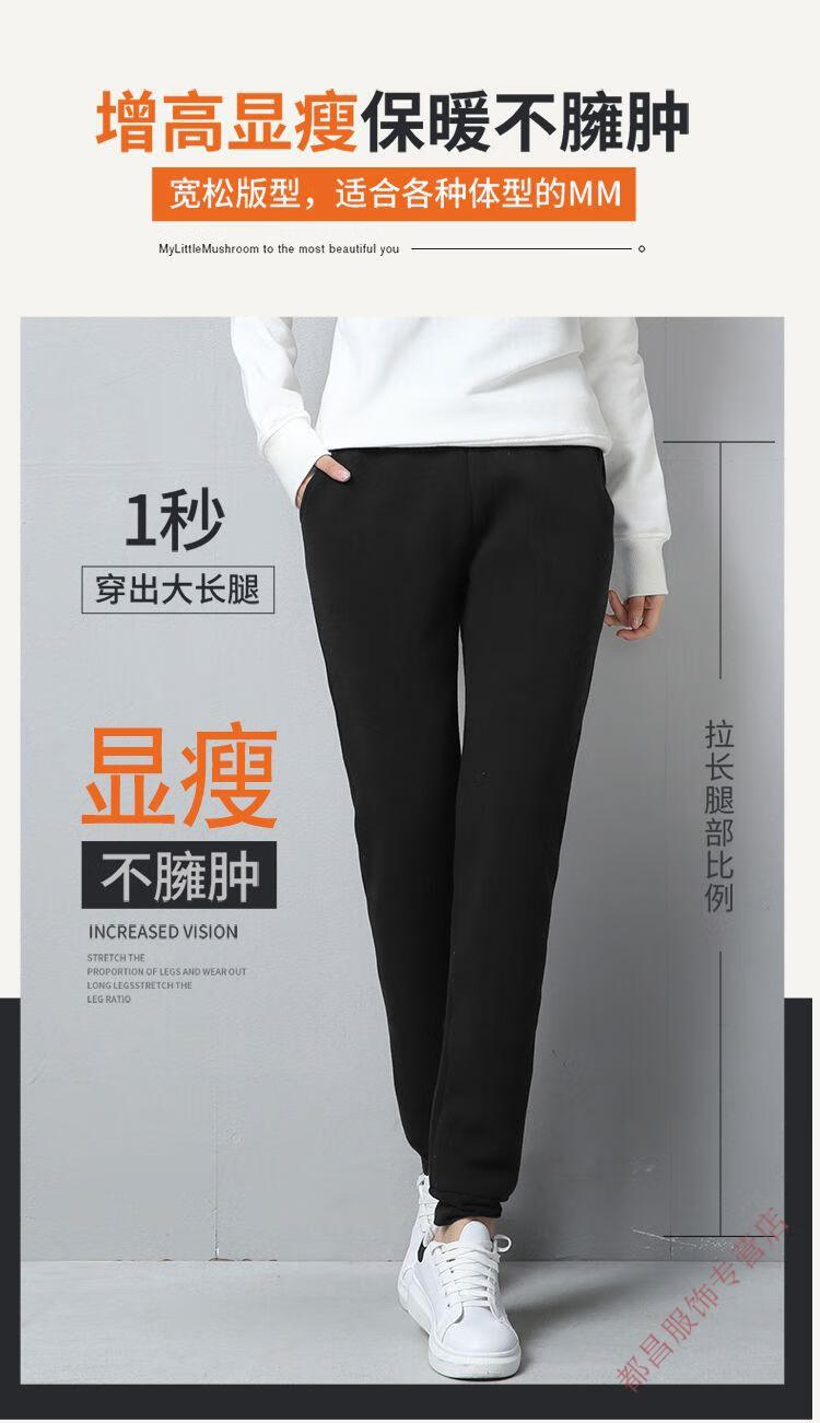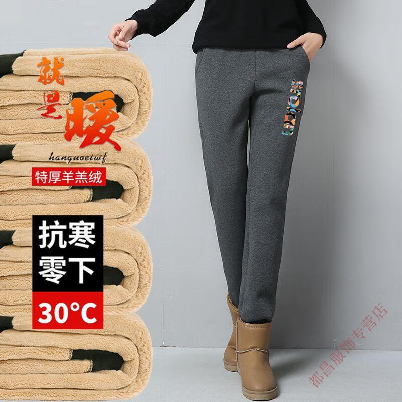 Initial diameter plus velvet and thickened sports pants for women in winter, loose-fitting women's pants, sherpa pants for outer wear, cotton pants for autumn and winter cxoi1 sherpa-black 3XL (145-160Jin Jin is equal to 0.5 kg)