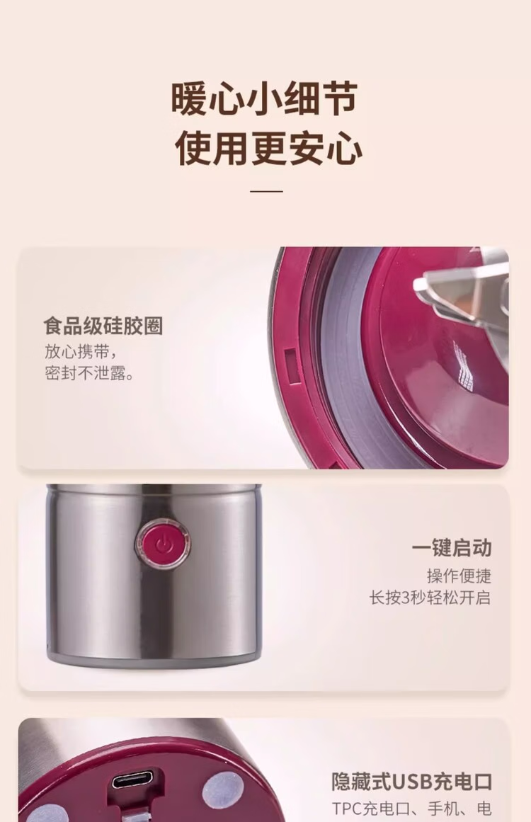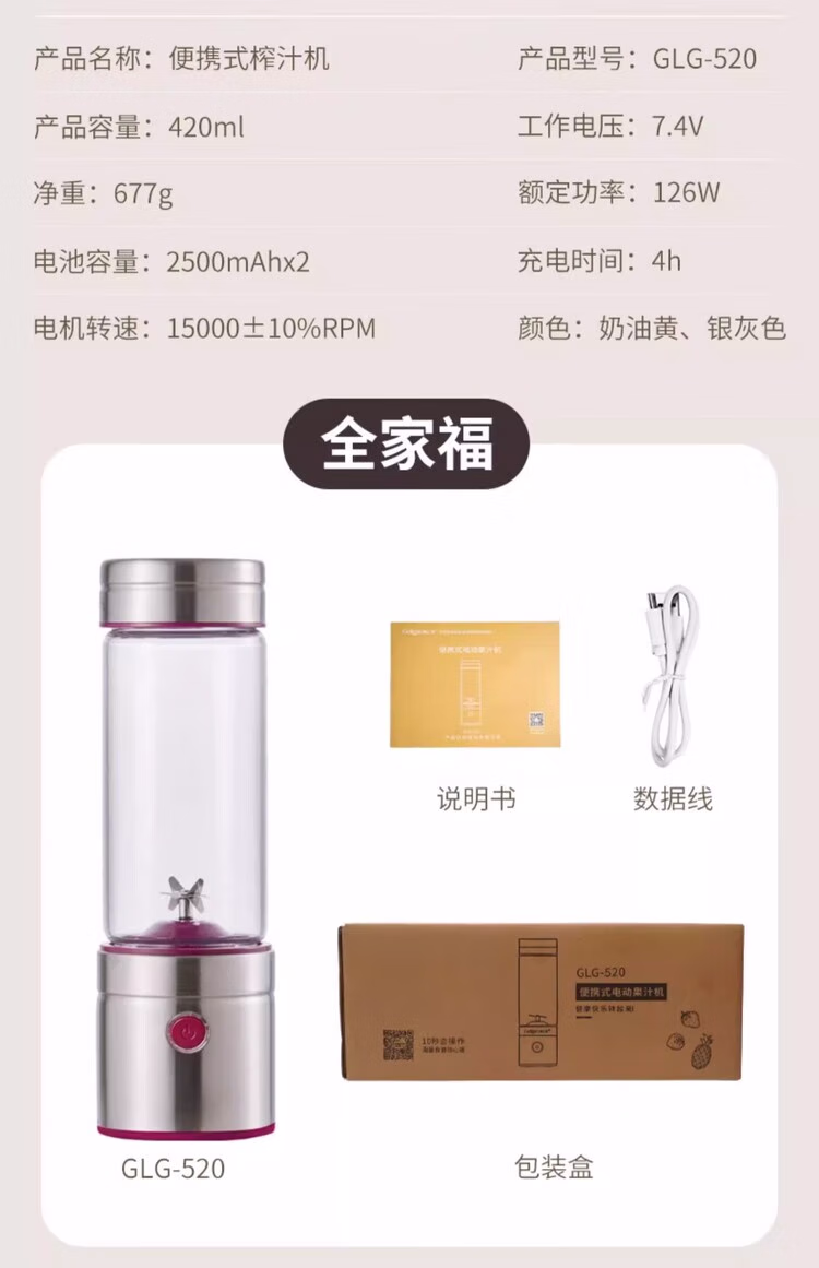 CKULH Juicer Small Portable Home Multifunctional Fruit Fryer Wireless Juice Machine Electric Juicing Cup Fruit and Vegetable Machine Classic Silver Gift Box Wireless Portable 5000mAh