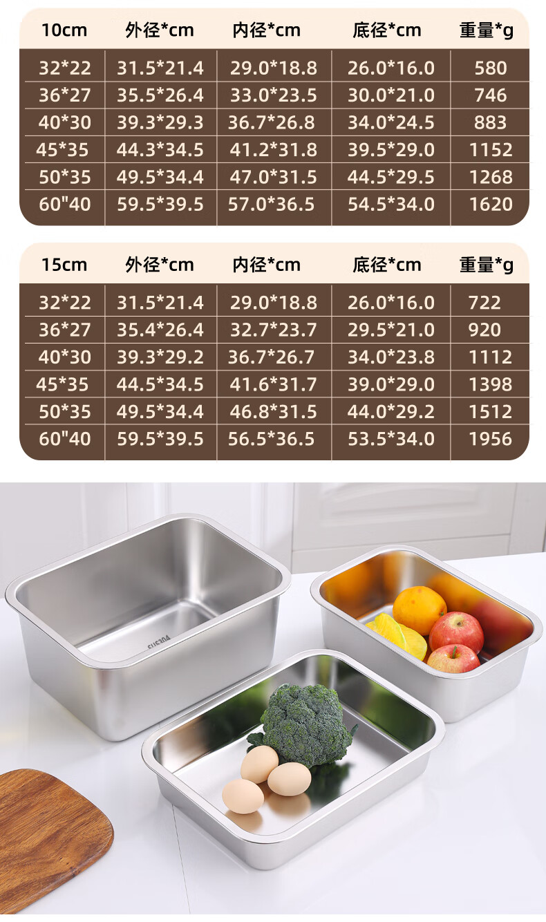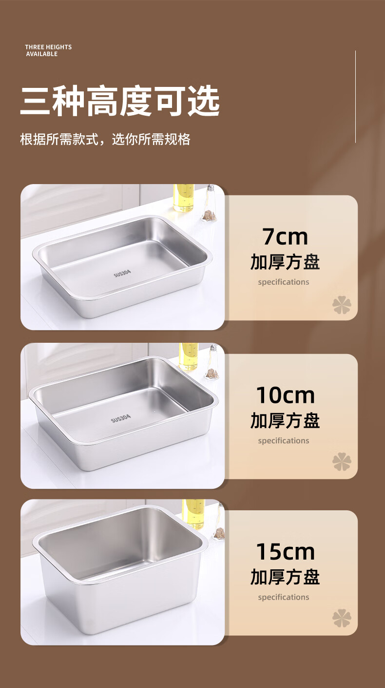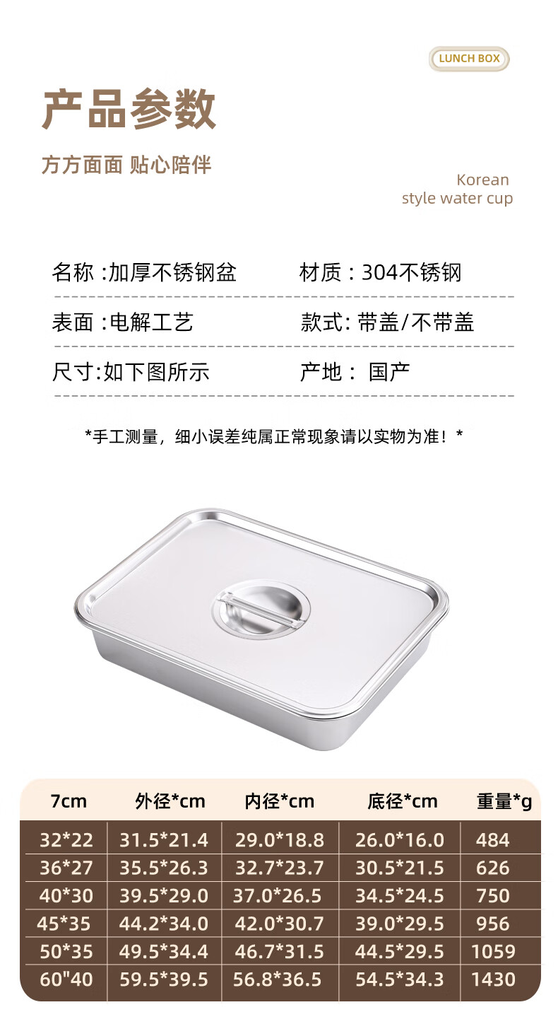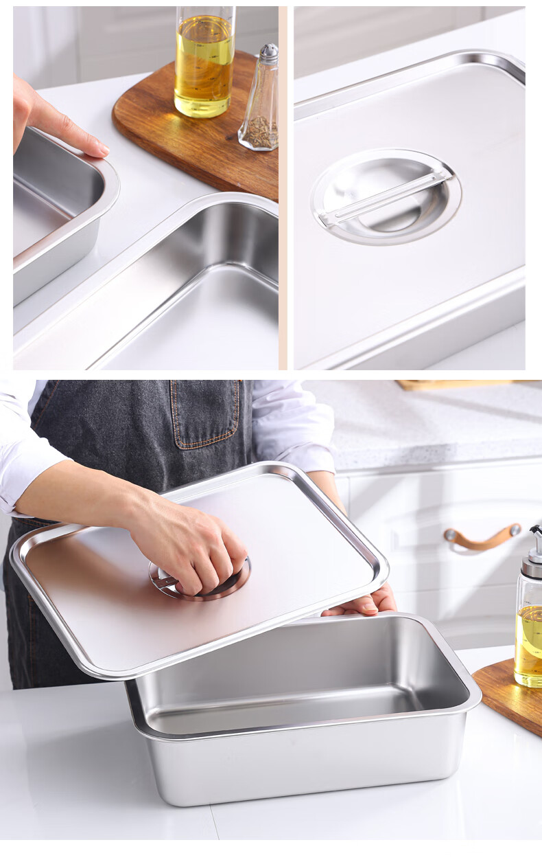 LEOEZYA Fat Donglai same style stainless steel basin rectangular 304 stainless steel square basin food grade commercial iron basin rectangular deep 60*40 single lid