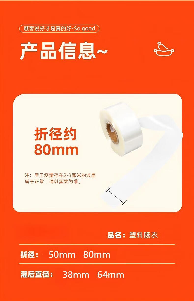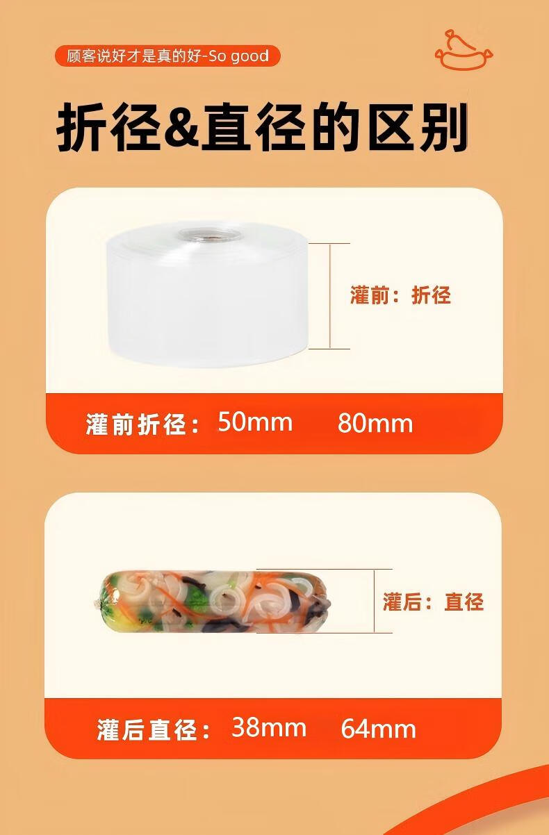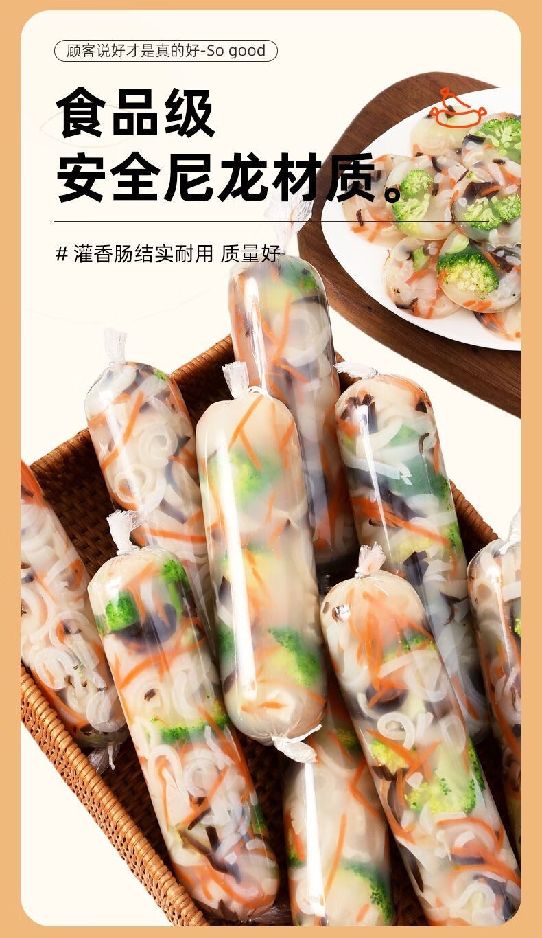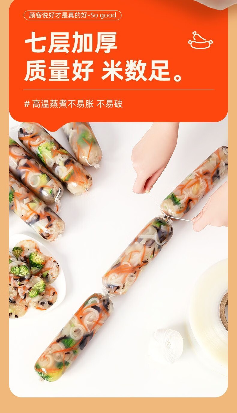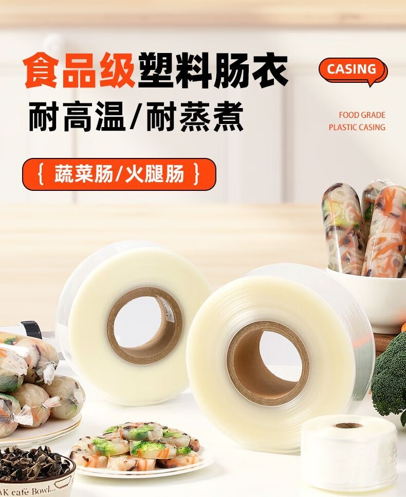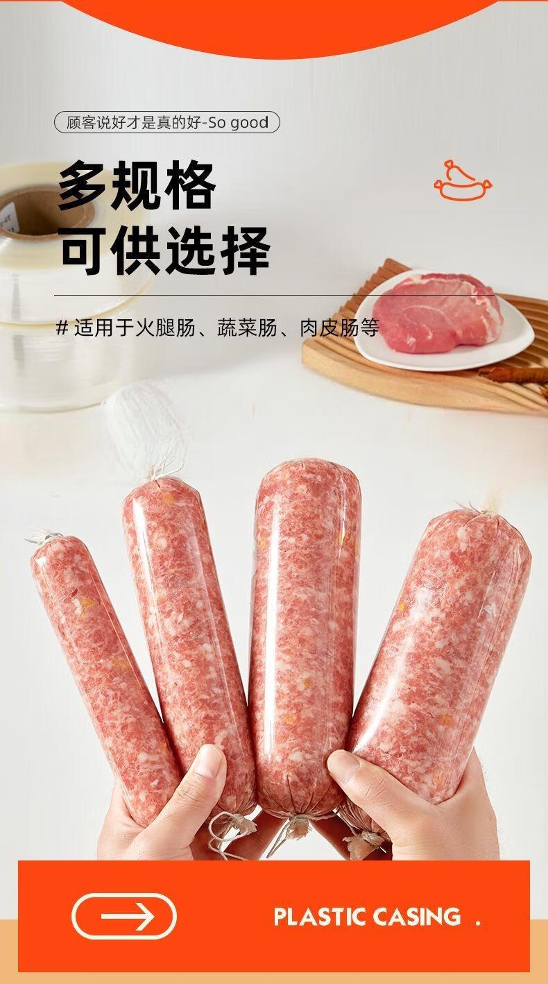Food-grade plastic vegetable casings filled with sausages, household homemade ham casings, transparent casings, commercial 10m 80mm casings