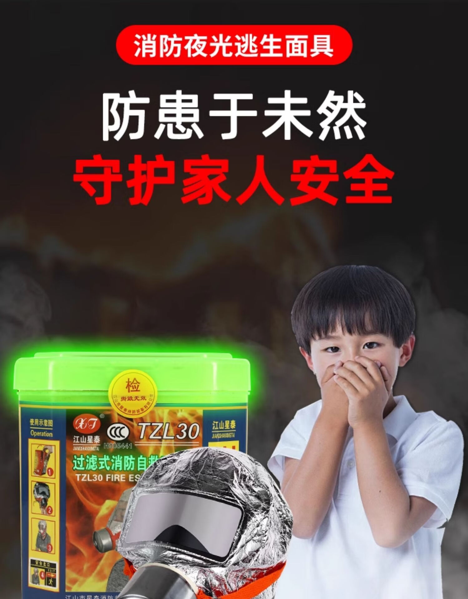 Anti-smoke mask, fire gas mask, fire protection, fire escape equipment, household self-rescue respiratory protection, calf family (upgraded adult) 1 pack, high-efficiency filtration, heat insulation and flame retardant