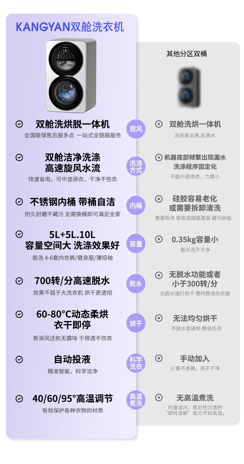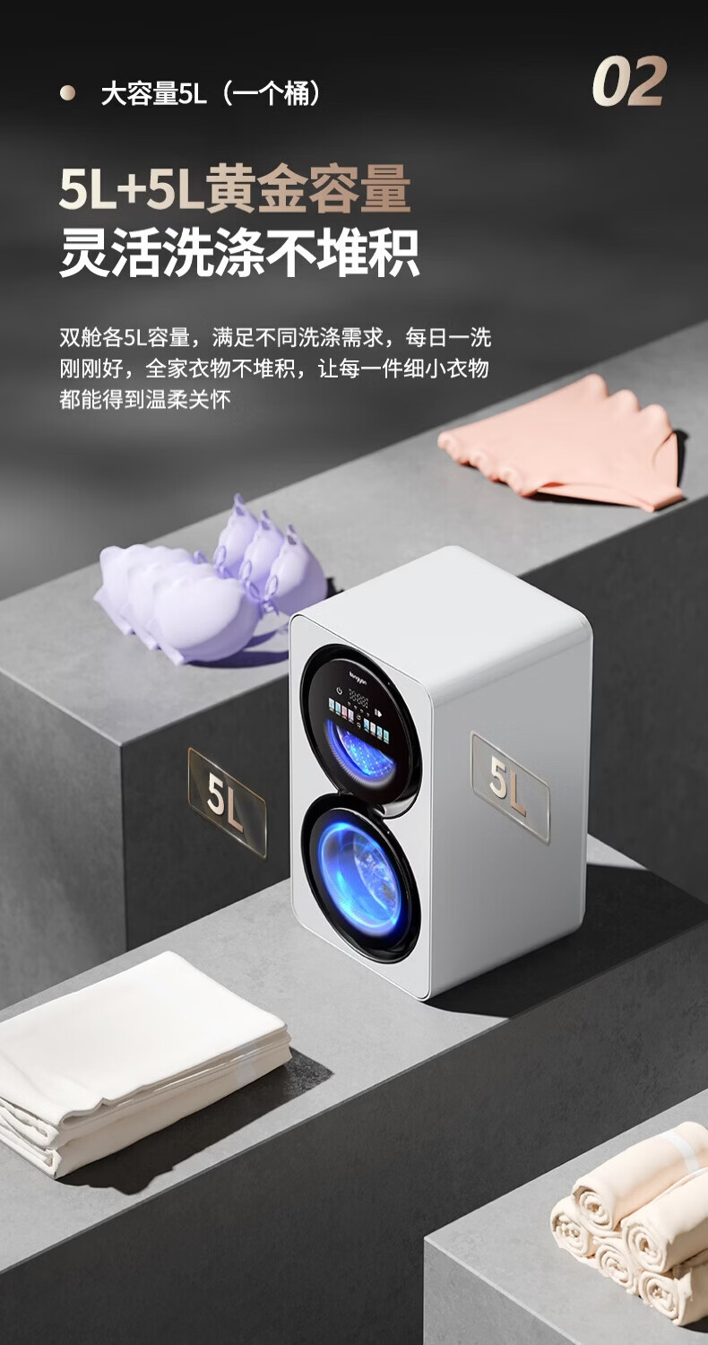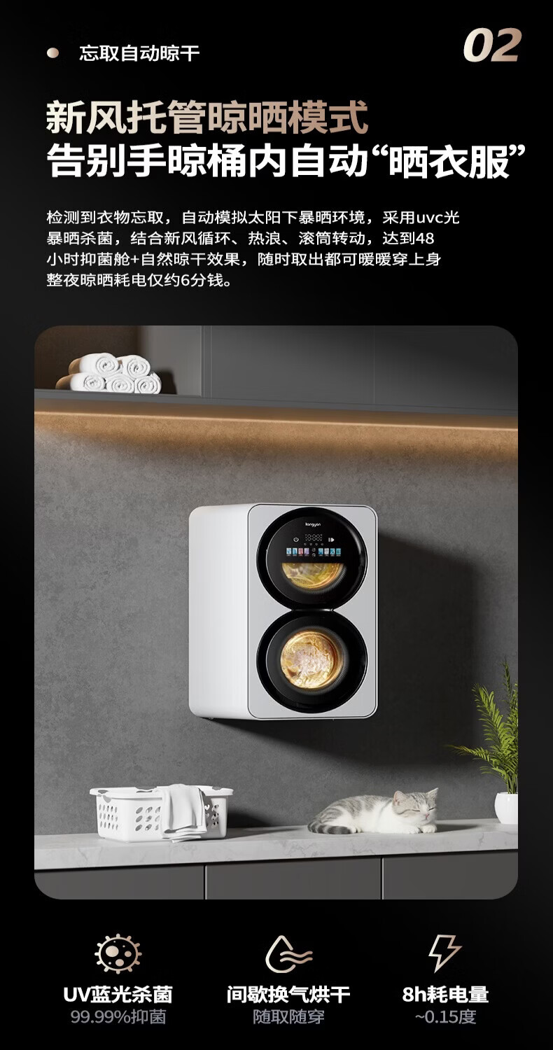 KANGYAN double cabin washing and drying integrated underwear washing machine fully automatic mini washing machine small baby double barrel partitioned drum underwear washing machine special socks washing lazy artifact wall hanging model washing and drying integrated | first-level energy efficiency | UV blue light sterilization mites