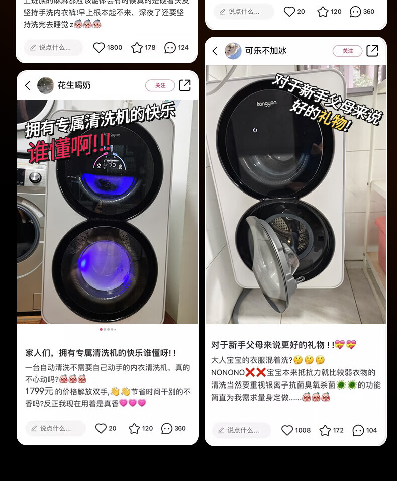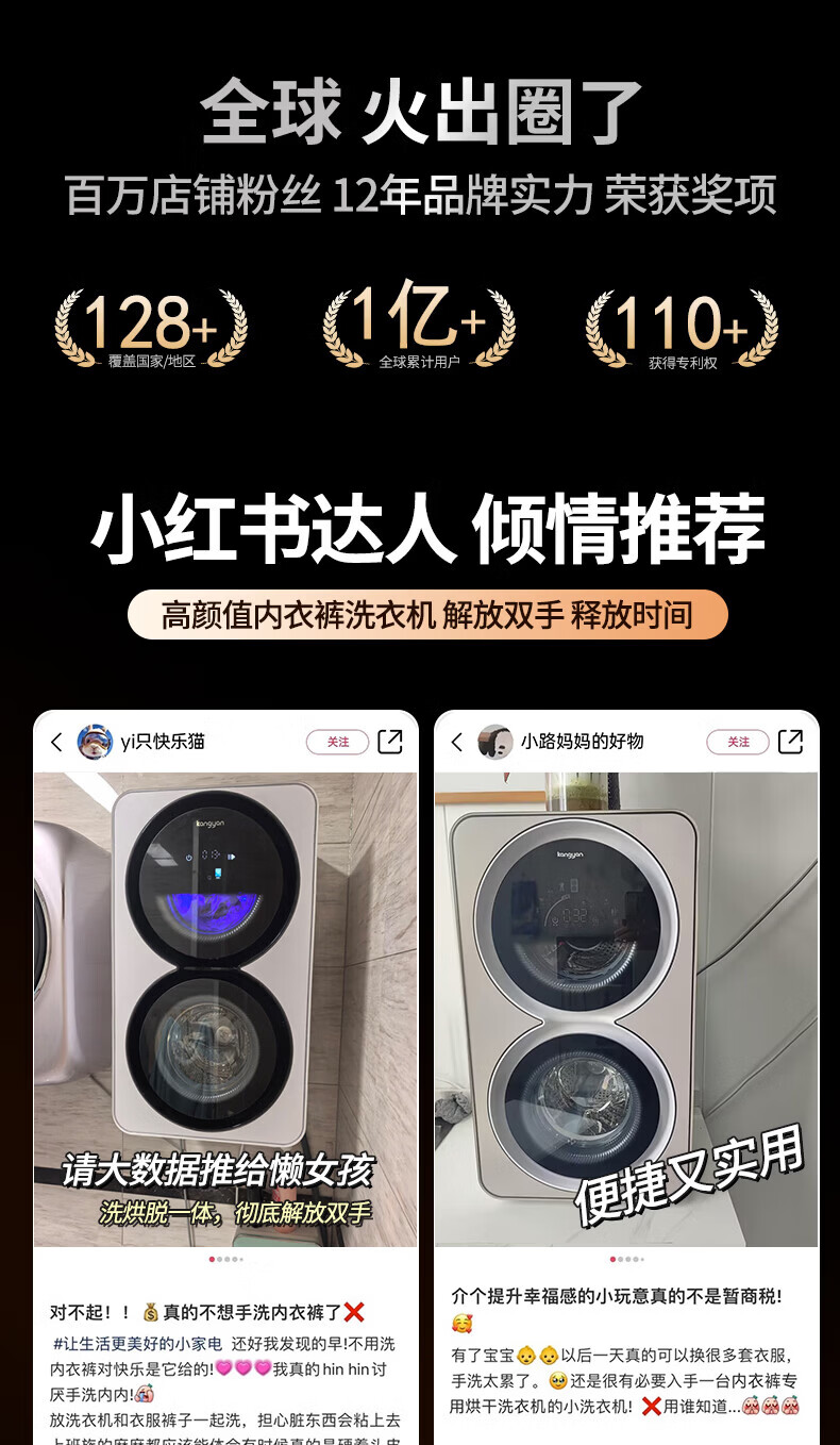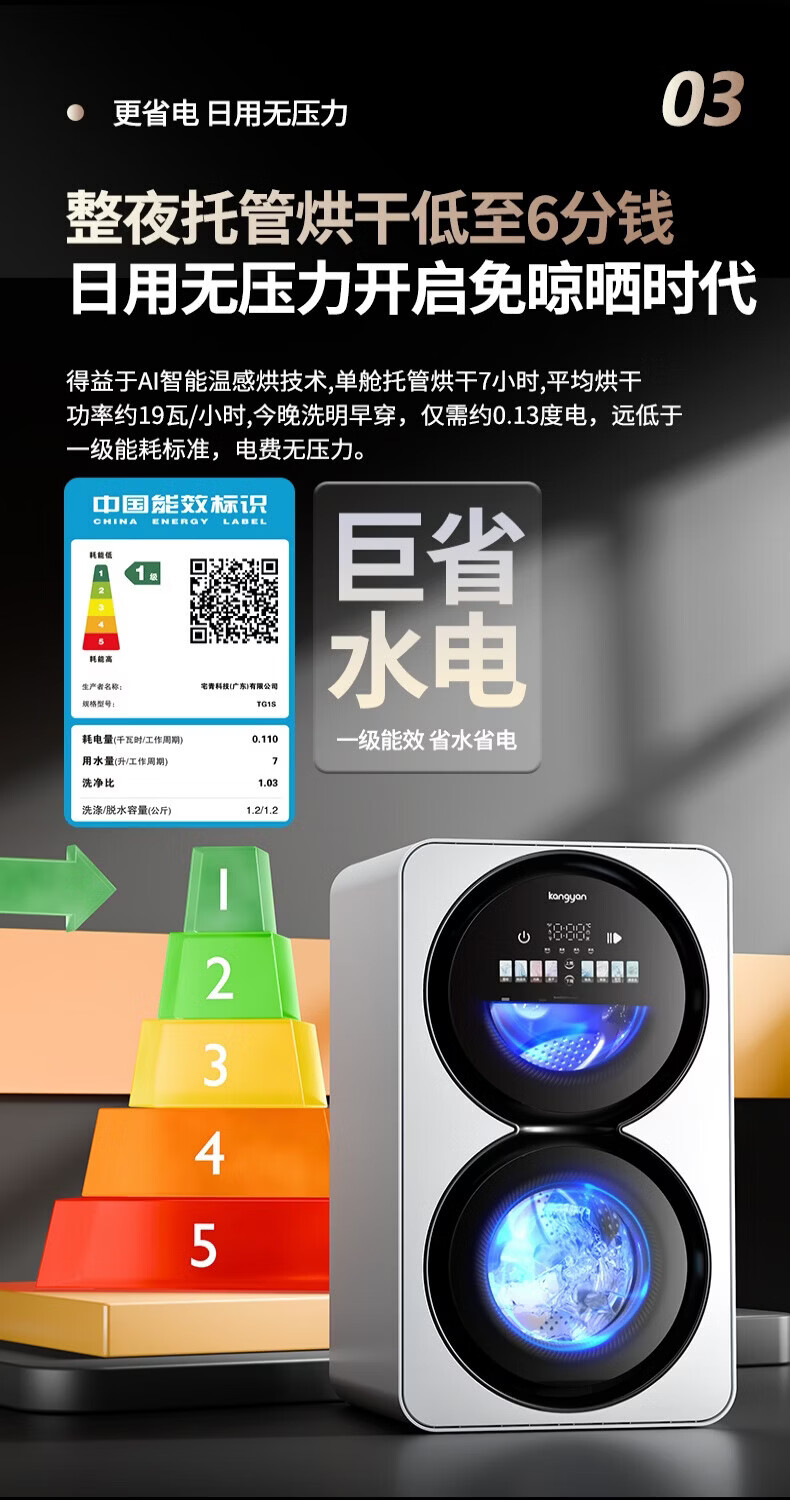 KANGYAN double cabin washing and drying integrated underwear washing machine fully automatic mini washing machine small baby double barrel partitioned drum underwear washing machine special socks washing lazy artifact wall hanging model washing and drying integrated | first-level energy efficiency | UV blue light sterilization mites