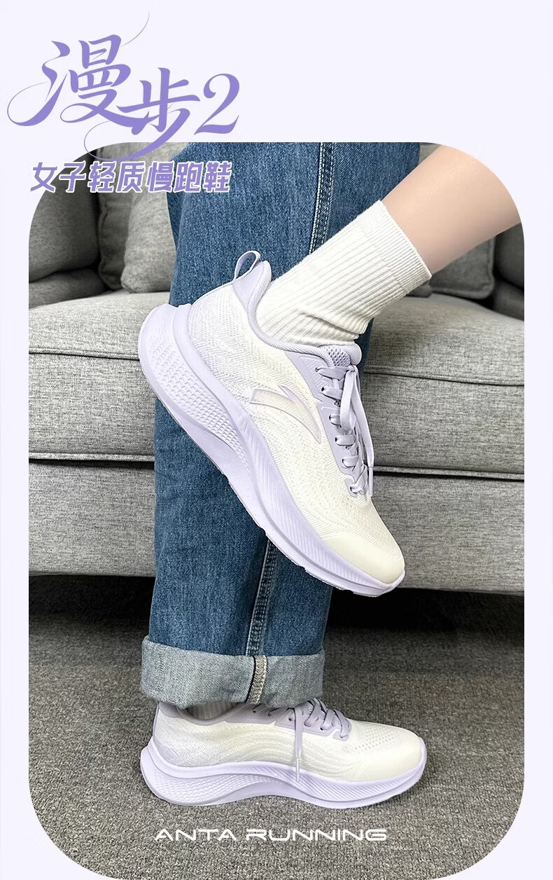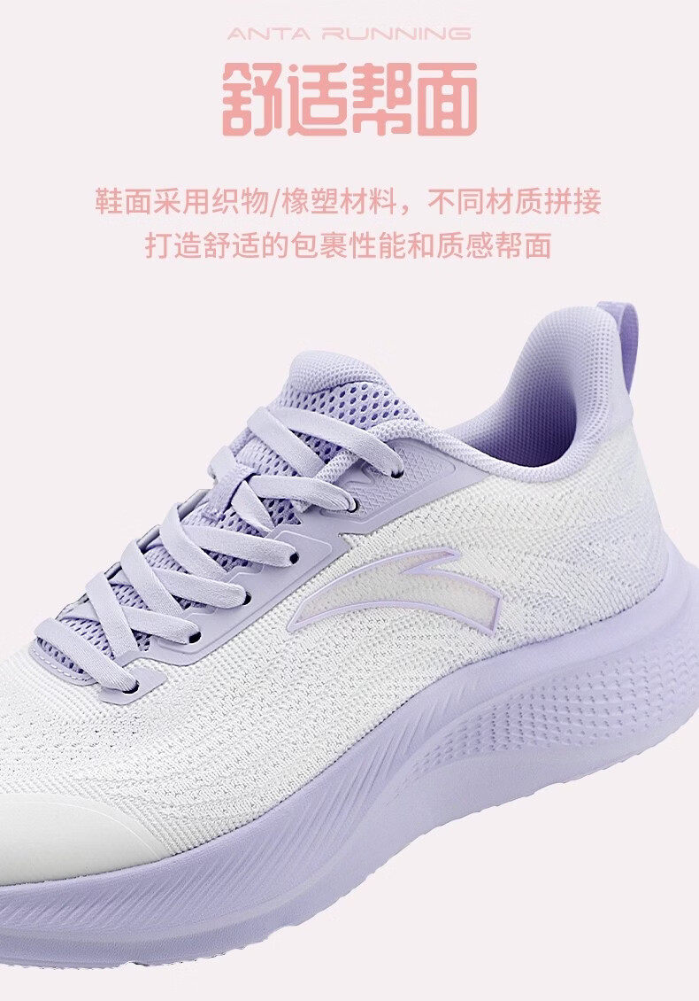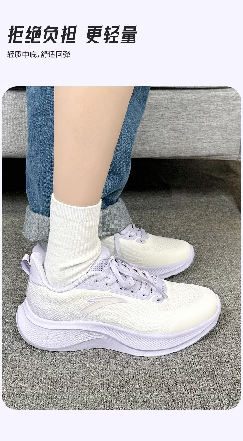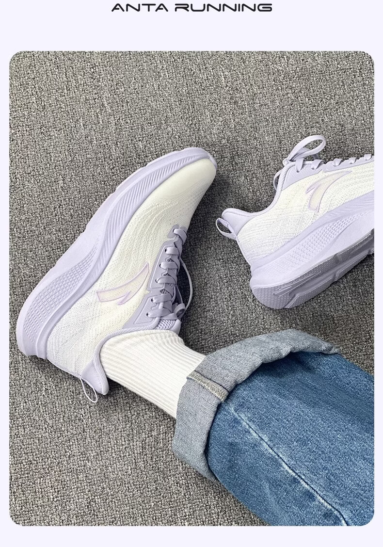 ANTA (ANTA) Women's Walking Shoes Blue Student Lightweight Breathable C37 Soft Sole Comfortable Winter New Casual Sports Running Shoes -3 Ivory White/Mist Light Purple 35.5