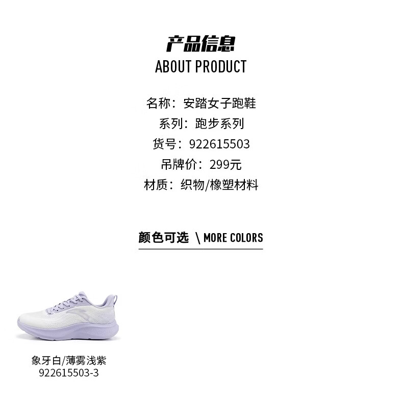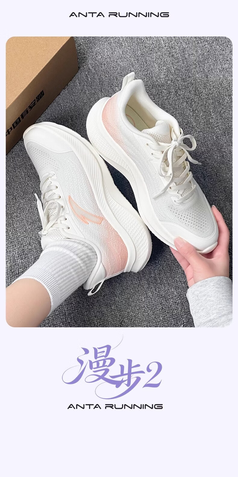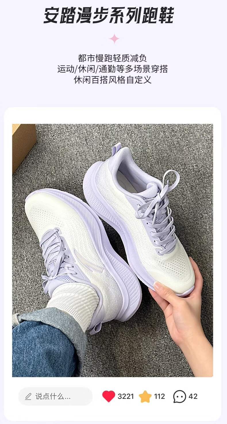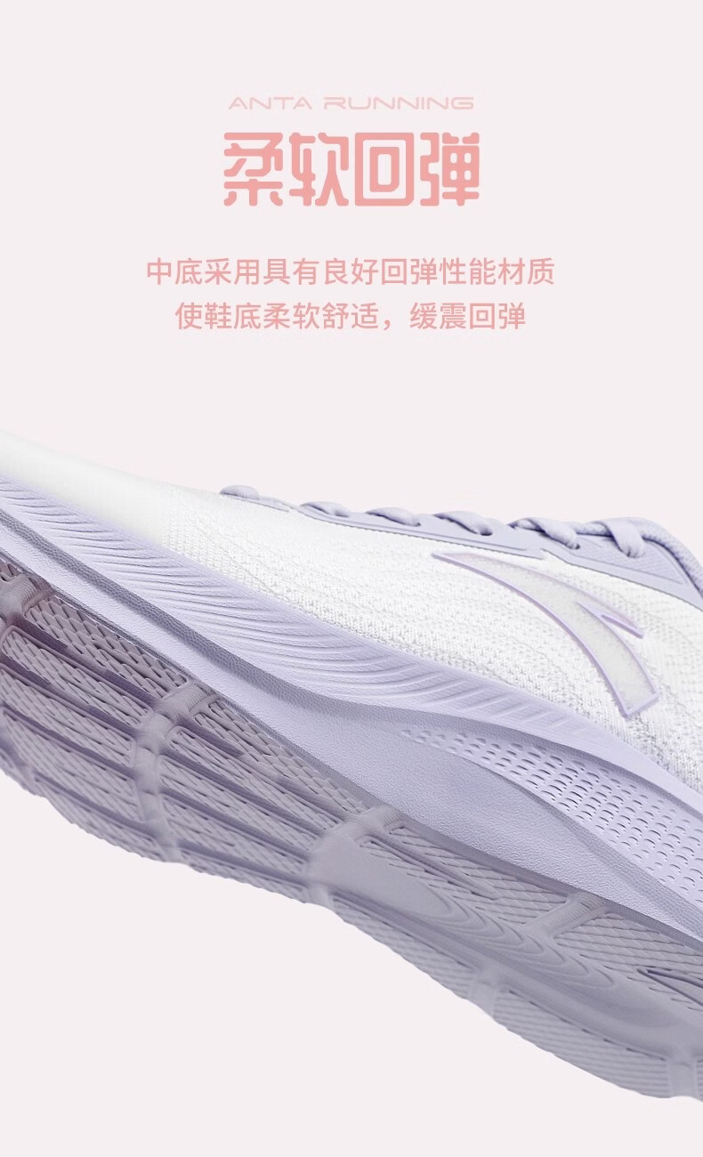 ANTA (ANTA) Women's Walking Shoes Blue Student Lightweight Breathable C37 Soft Sole Comfortable Winter New Casual Sports Running Shoes -3 Ivory White/Mist Light Purple 35.5