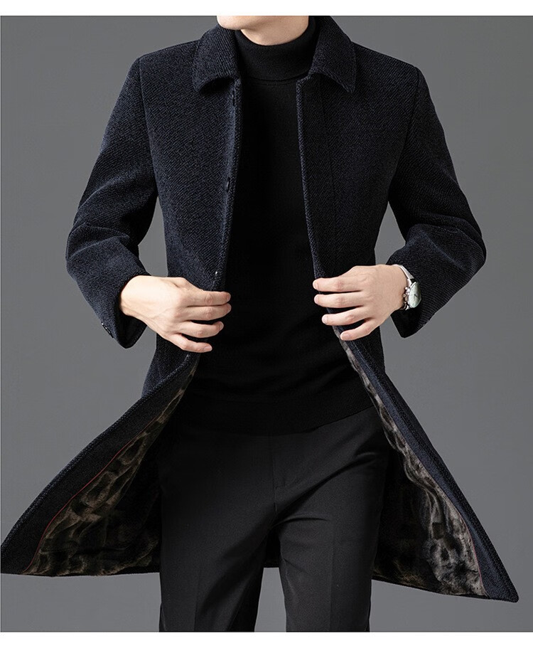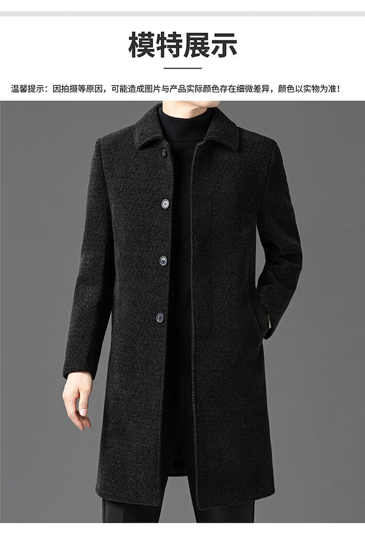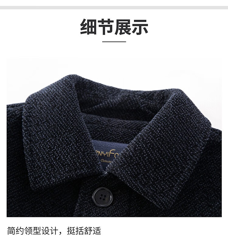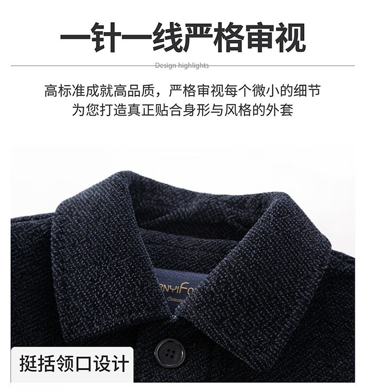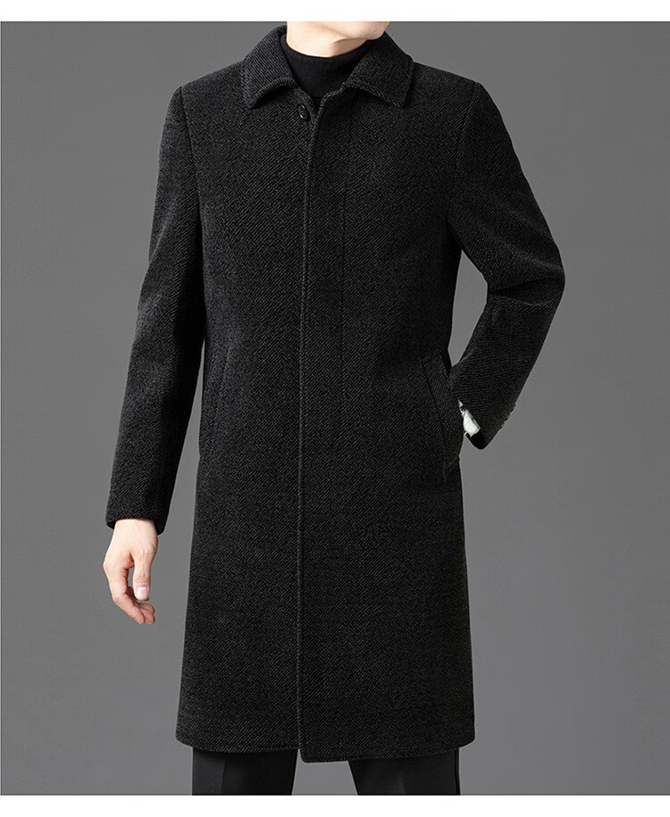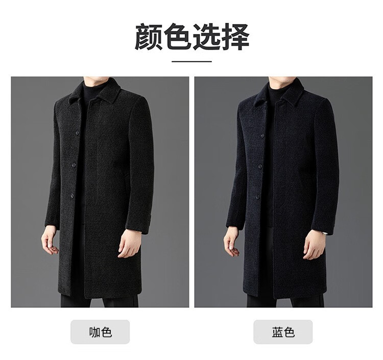HARTMARX brand autumn and winter new wool coat for middle-aged and elderly men, long velvet and thickened lapel woolen coat to keep warm, brown velvet 14XL (190)