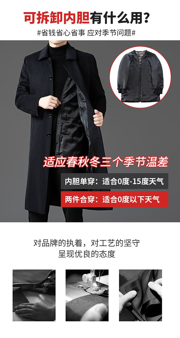 Lilan woolen coat men's mid-length autumn and winter new high-end business two-piece set down lining woolen gray 14XL (170)