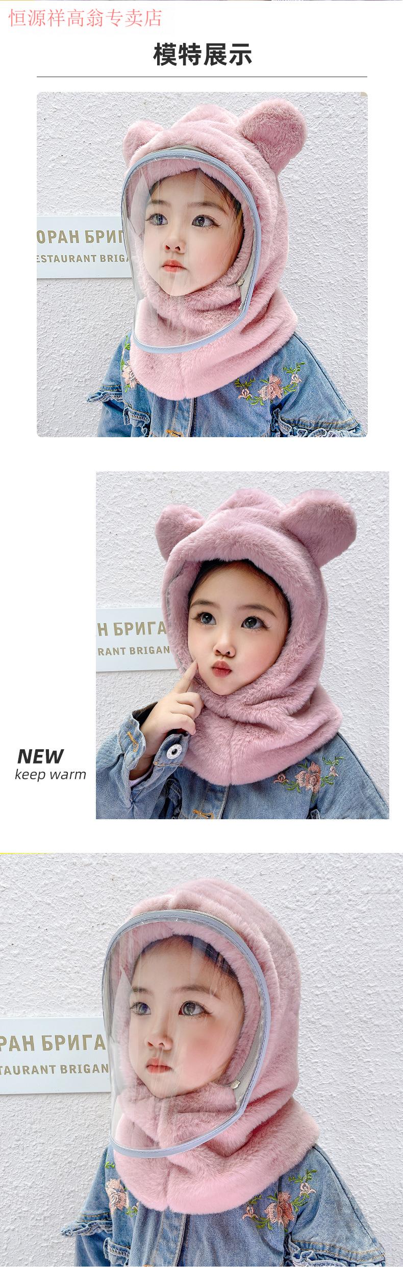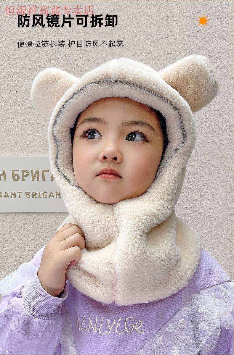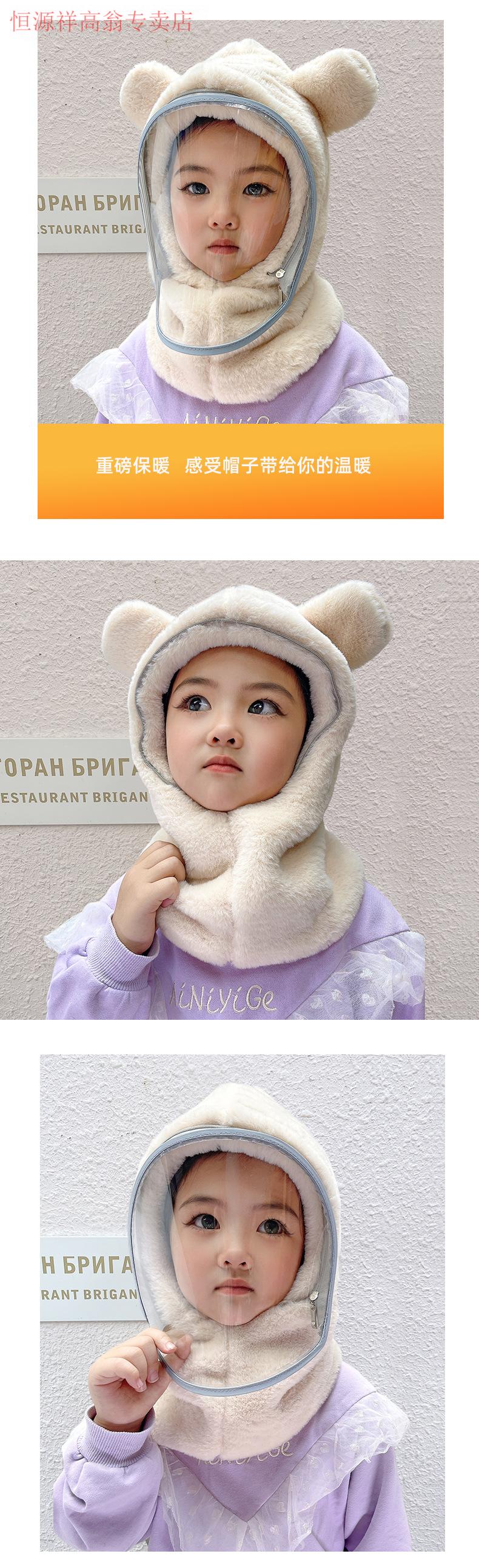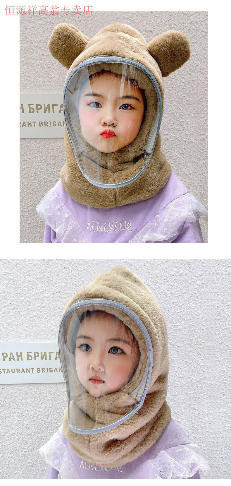 Hengyuanxiang Children's Hood Winter Hat Wool Thickened Face Covering Windproof Protective Belt Mask Boys and Girls Collar Integrated Hat Diamond Style - Beige Adult Style (8 years and above)