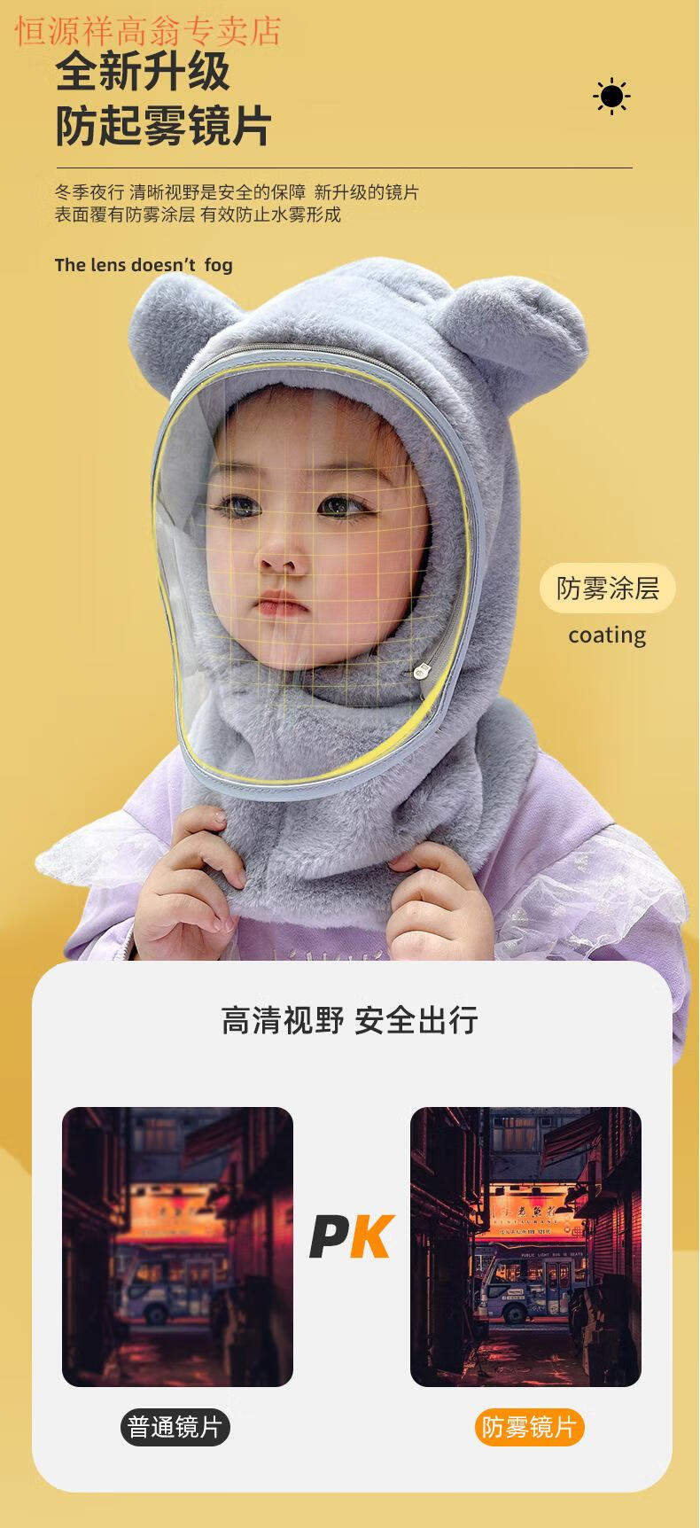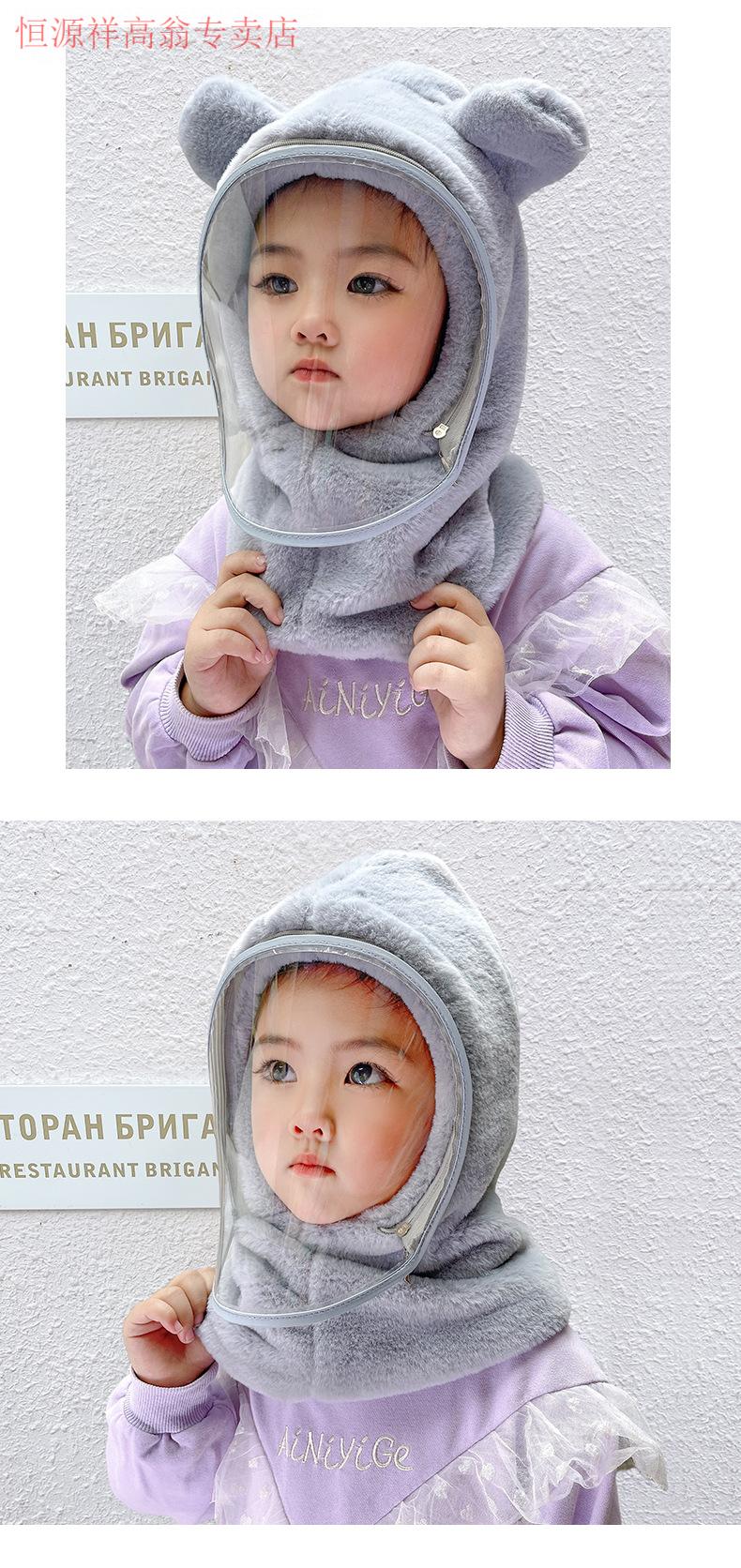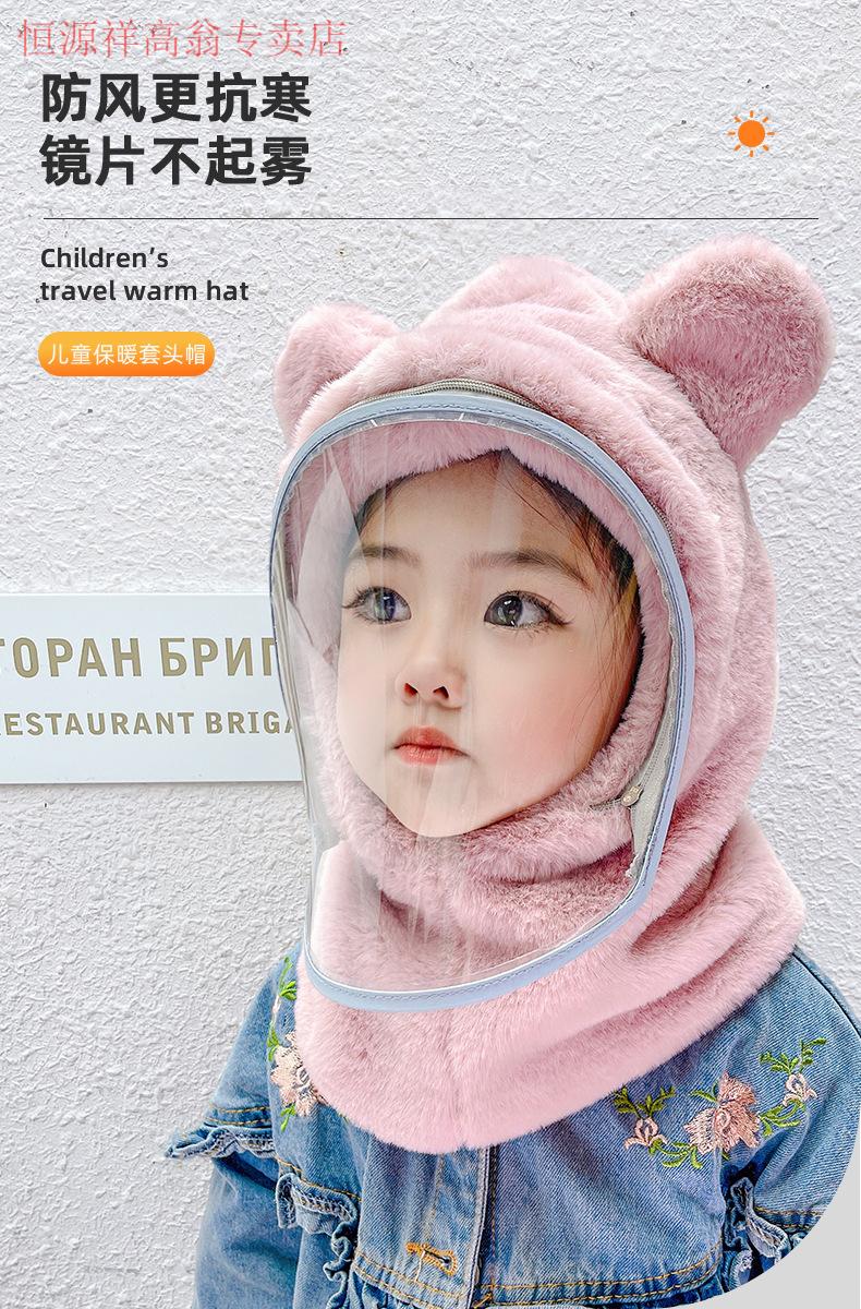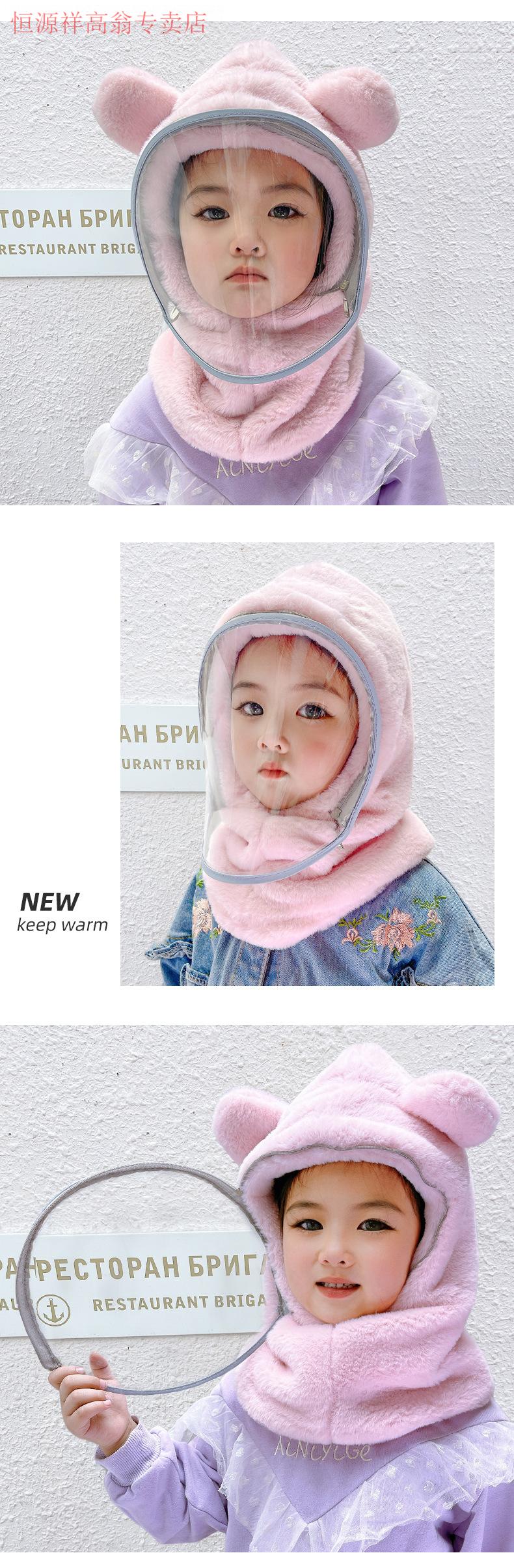 Hengyuanxiang Children's Hood Winter Hat Wool Thickened Face Covering Windproof Protective Belt Mask Boys and Girls Collar Integrated Hat Diamond Style - Beige Adult Style (8 years and above)