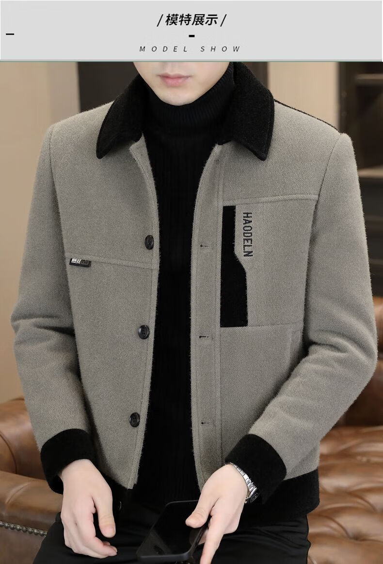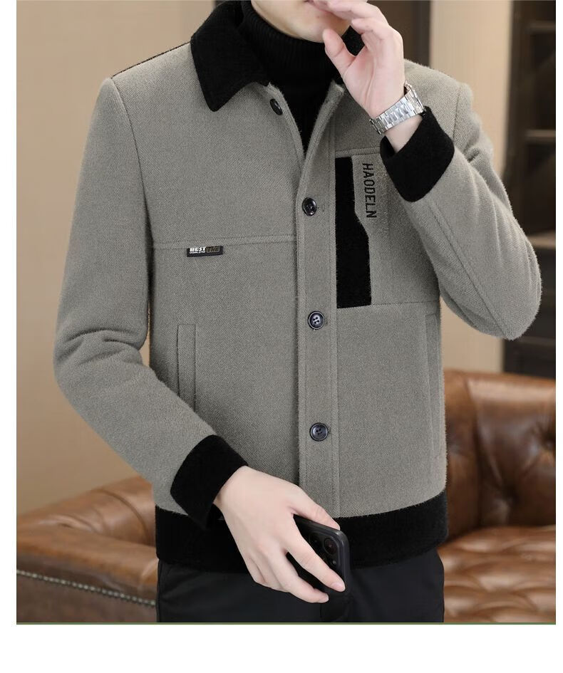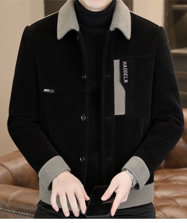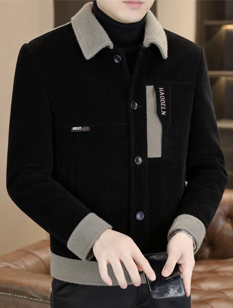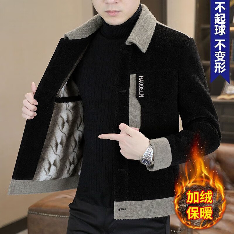 Playboy's new woolen coat men's autumn and winter high-end men's clothing splicing versatile internet celebrity fashionable casual woolen coat 2888 black (velvet thickening) high quality XL (recommended 130-145Jin Jin equals 0.5kg)