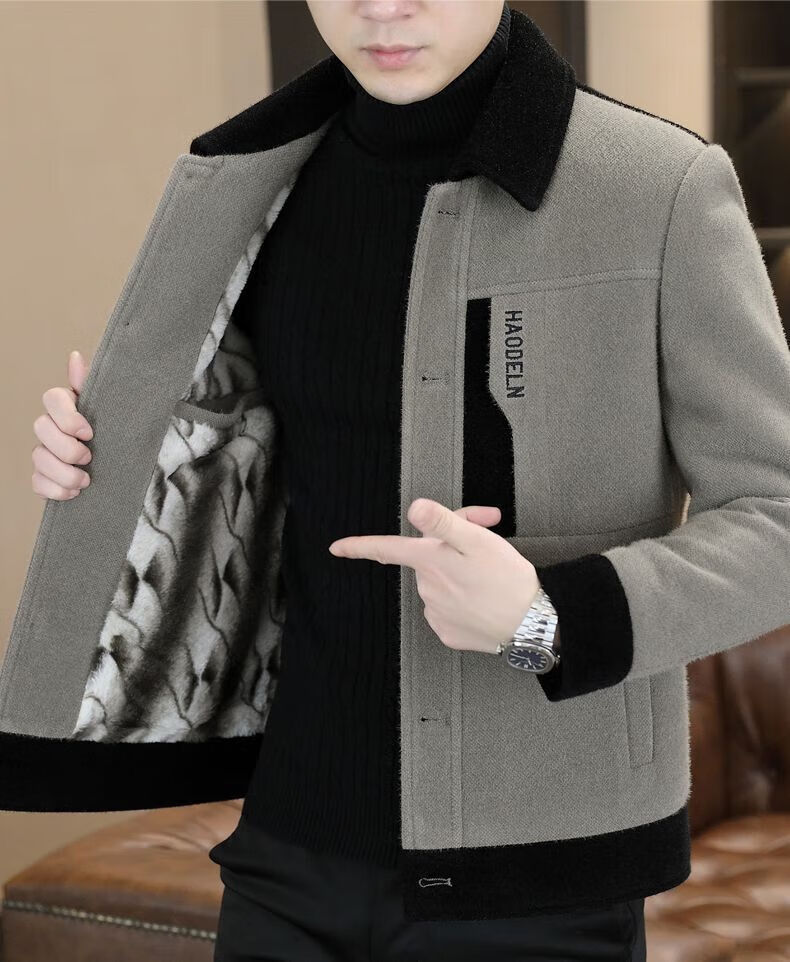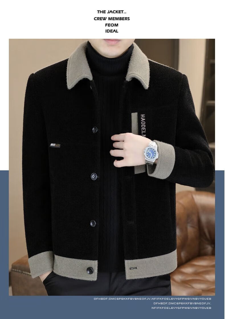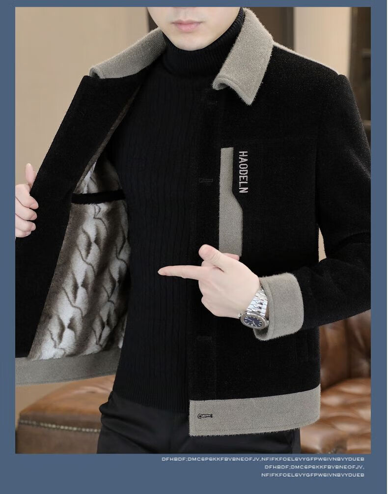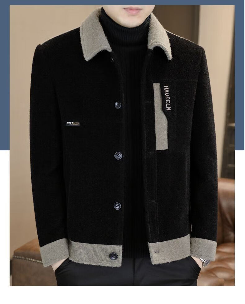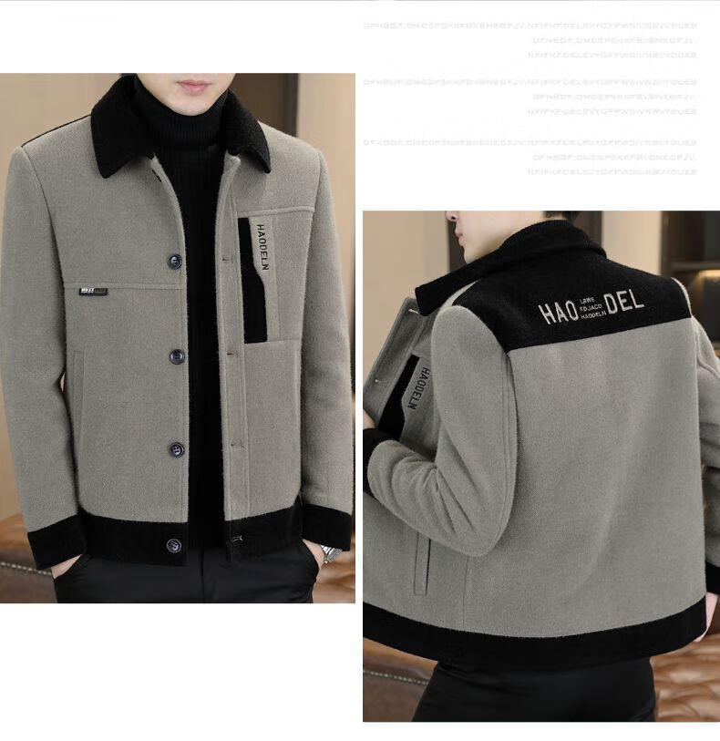Playboy's new woolen coat men's autumn and winter high-end men's clothing splicing versatile internet celebrity fashionable casual woolen coat 2888 black (velvet thickening) high quality XL (recommended 130-145Jin Jin equals 0.5kg)