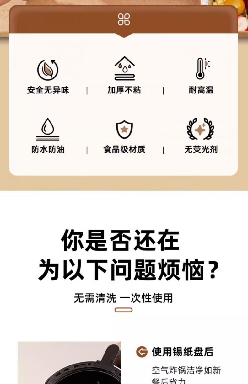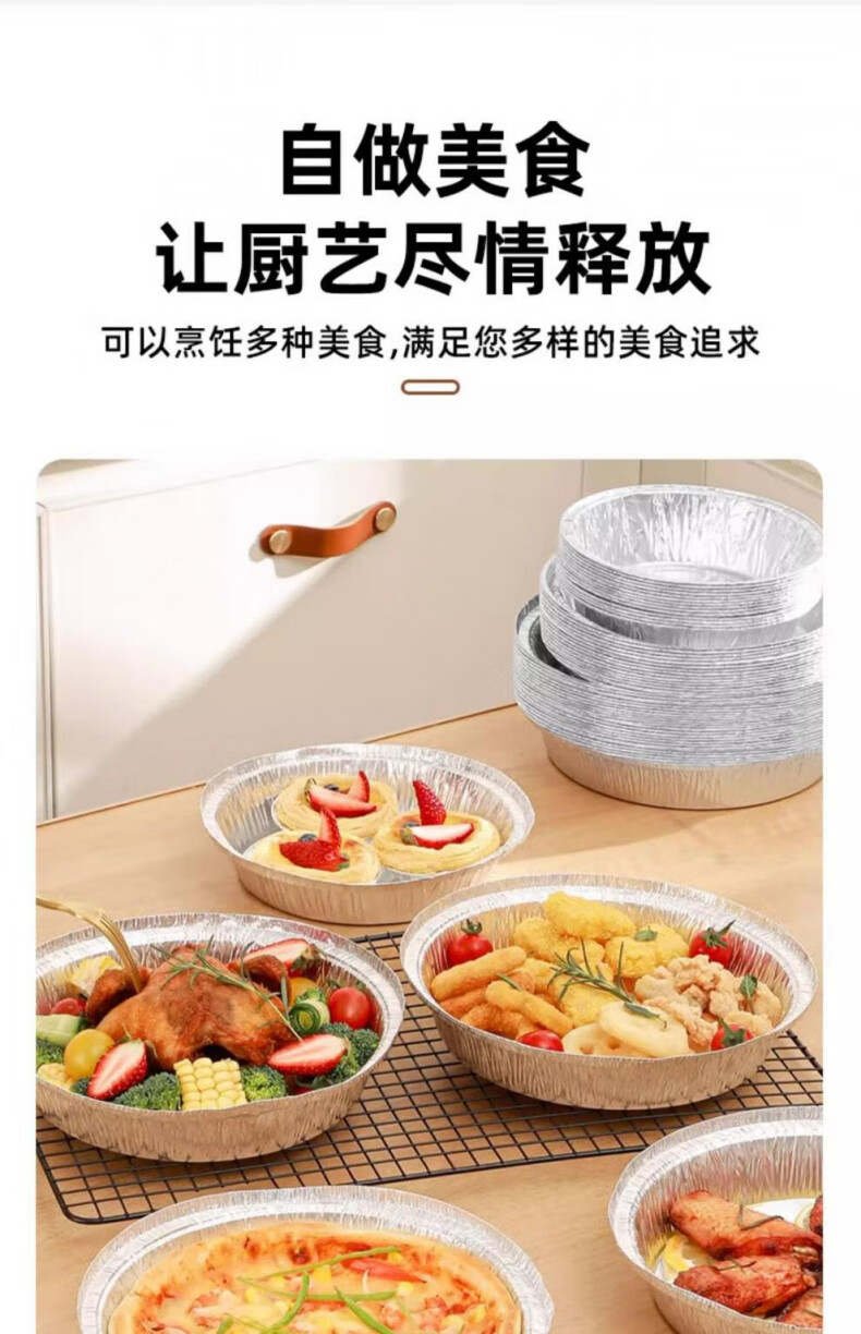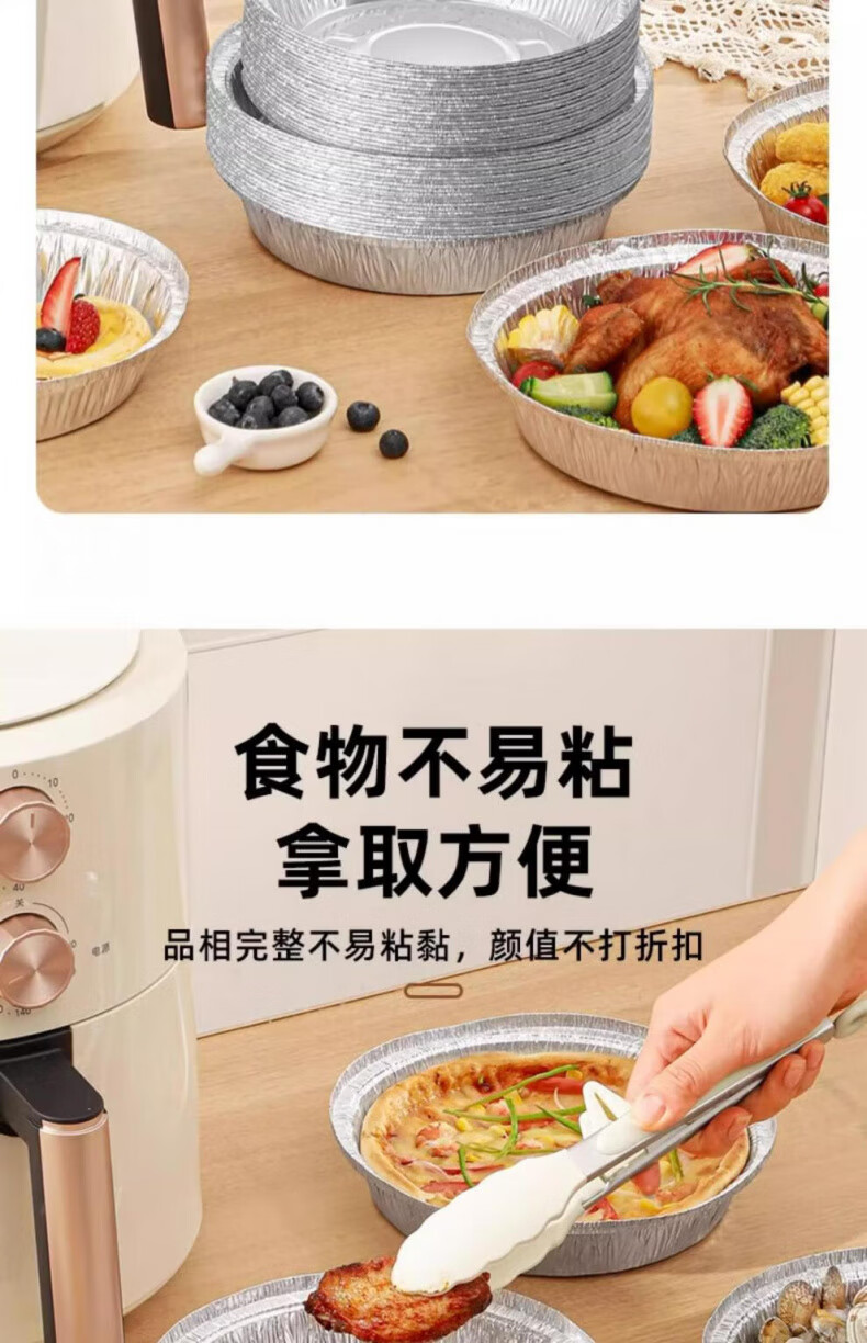 JCZS German brand air fryer special paper tin foil tray barbecue box baking tin foil bowl household tin foil box food grade 150 pieces with diameter 20cm3-5L thickened
