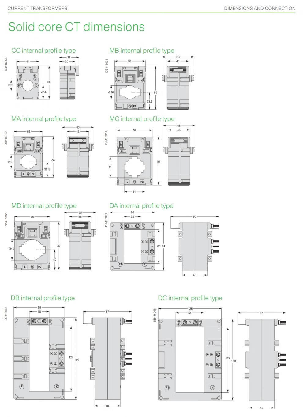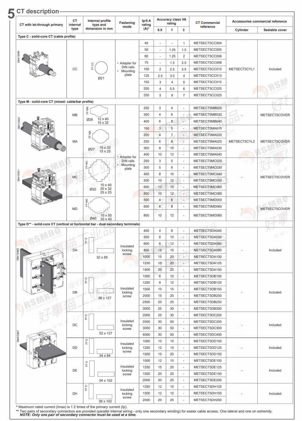 Schneider split current transformer CT current ratio 100/5 busbar 23x33 METSECT5GA010 current transformation ratio 100_5 busbar 2
