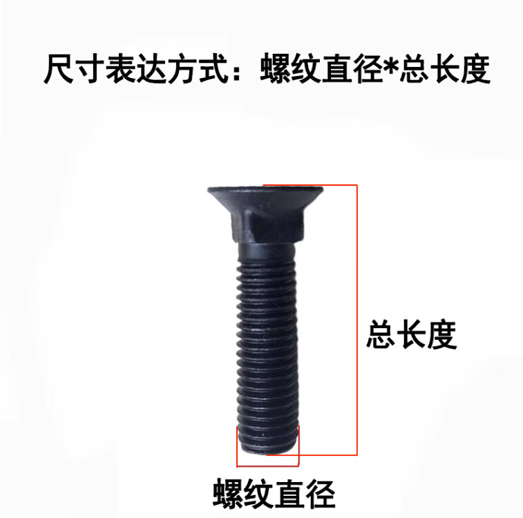 XMSJ88 grade high strength pear tip wire flat head square bolt countersunk head square neck bolt agricultural machinery plow tip screw M10M12M20 M12*1505 set of screws + nuts