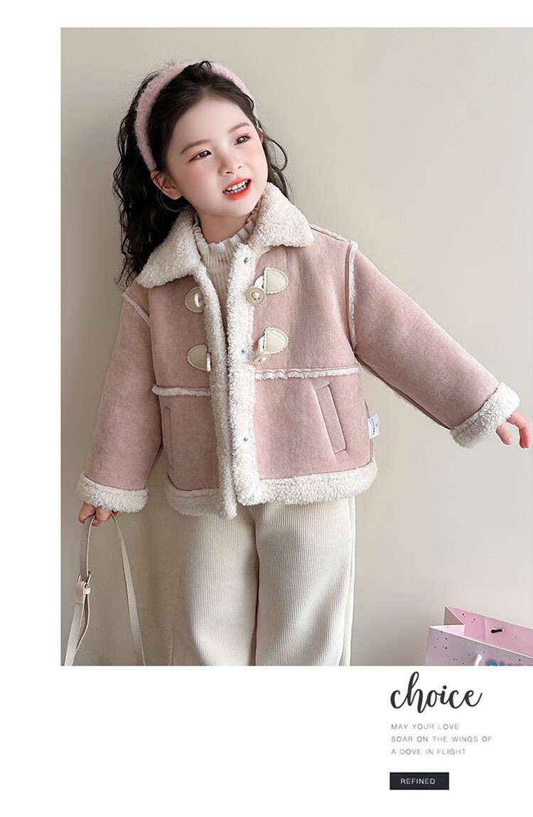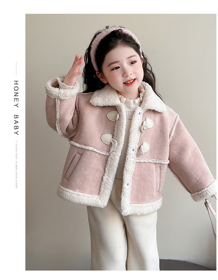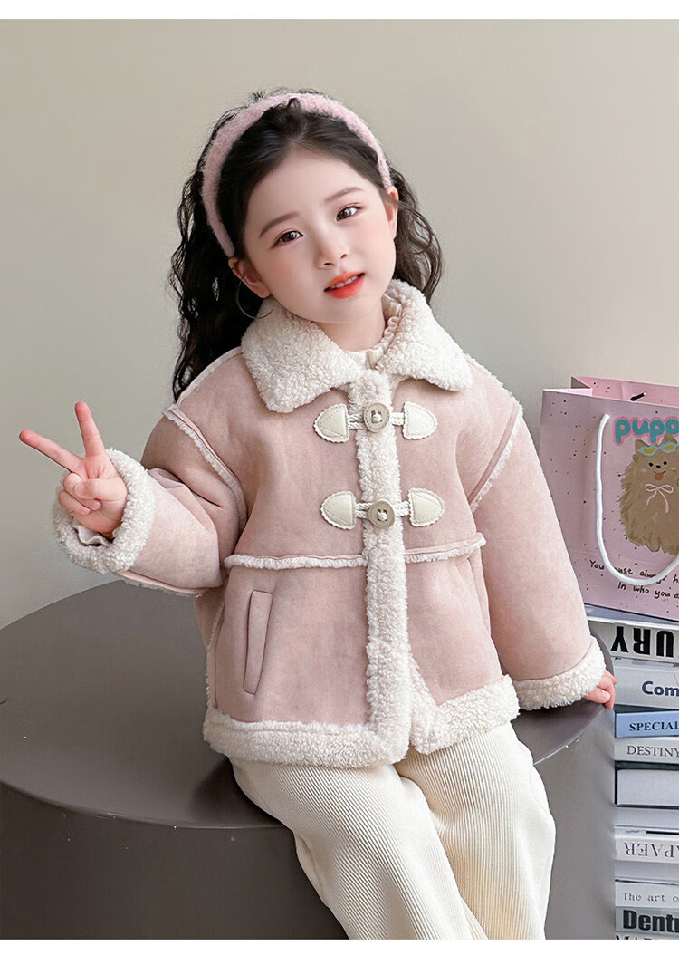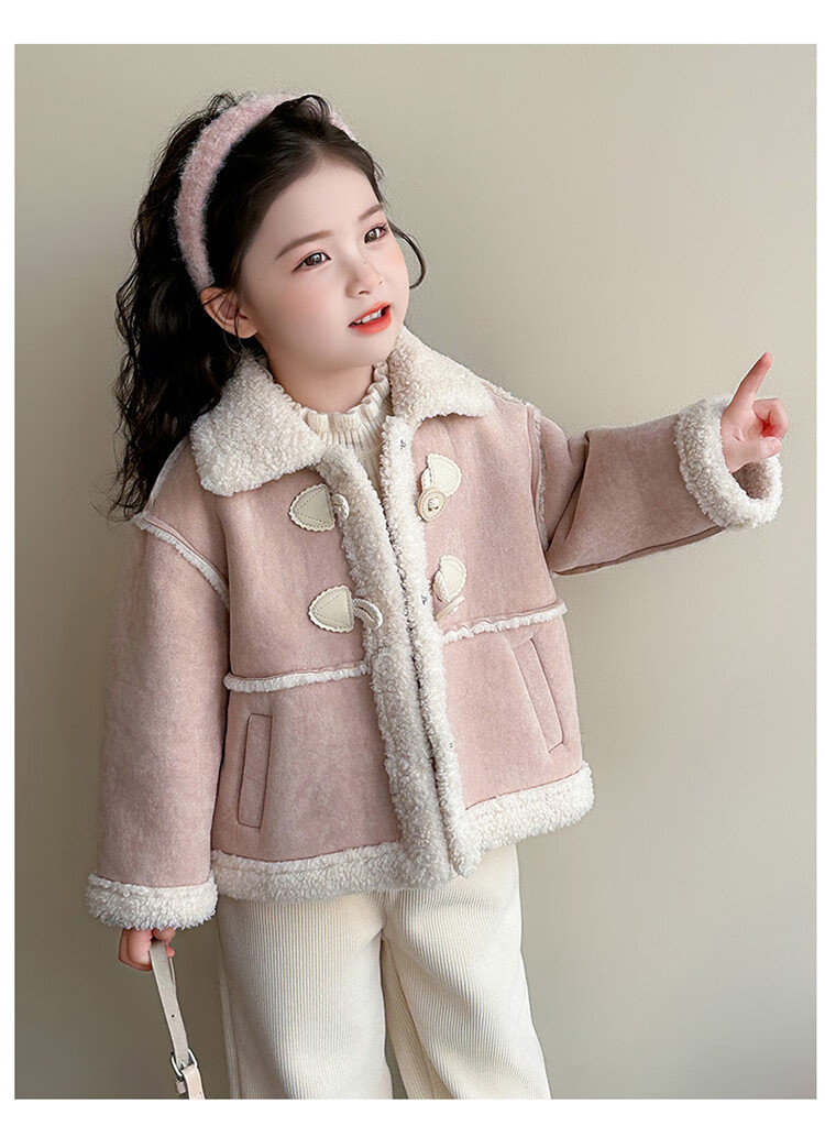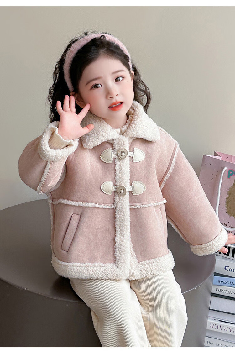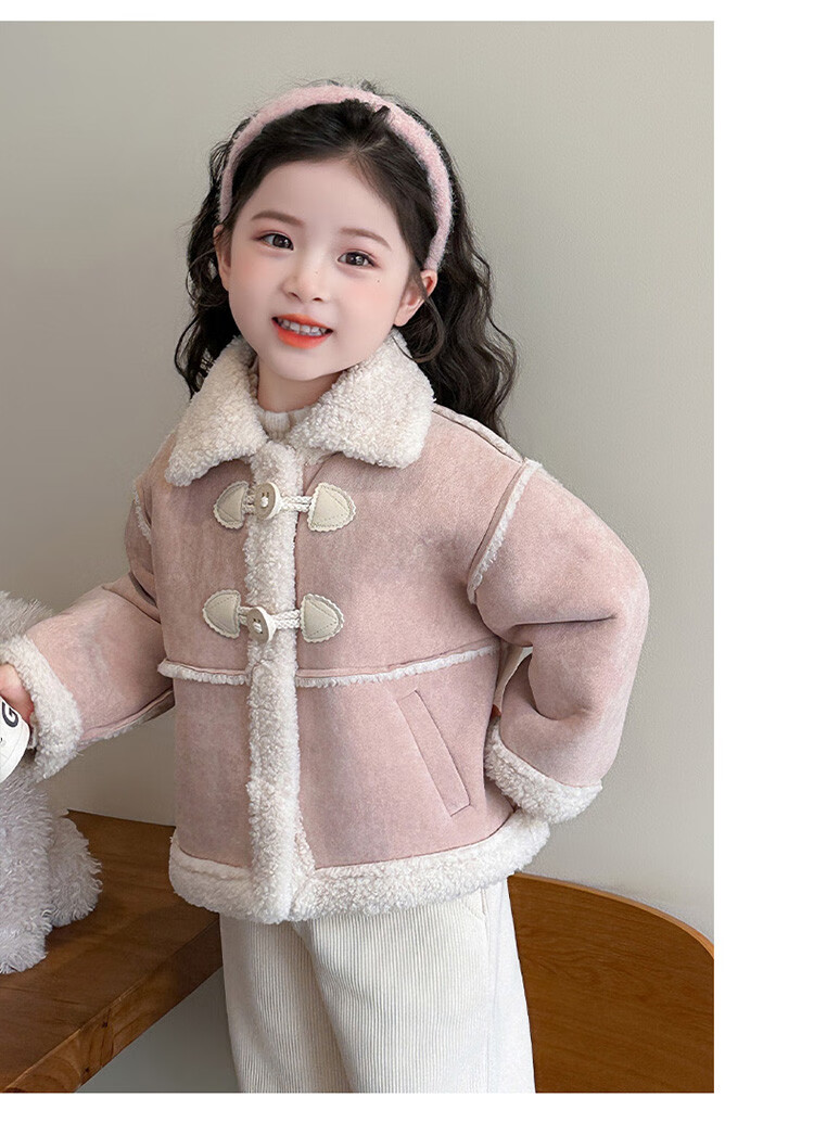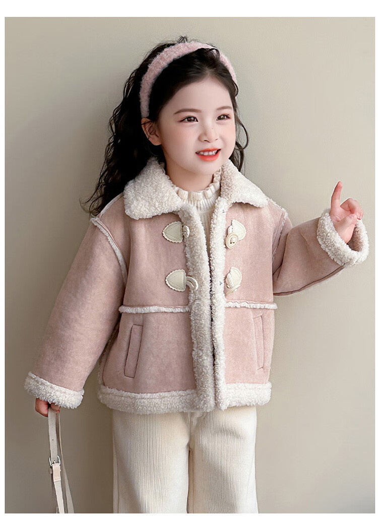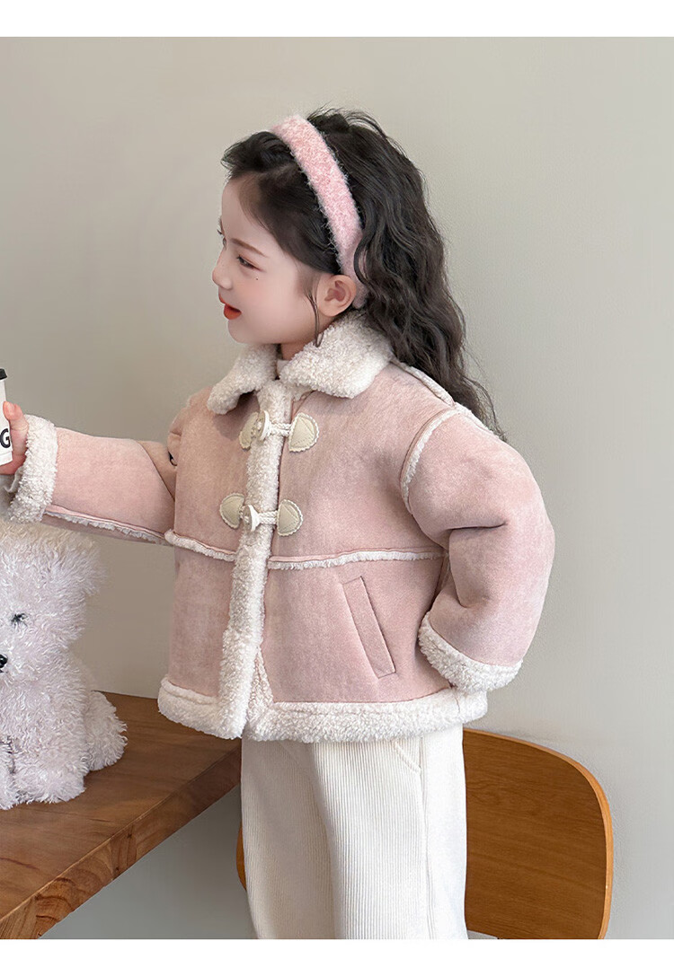 BALA Balabala is suitable for girls' velvet coat winter wear 2025 new super good-looking children's suede thickened fur leather buckle velvet thickened coat 90cm