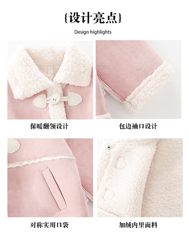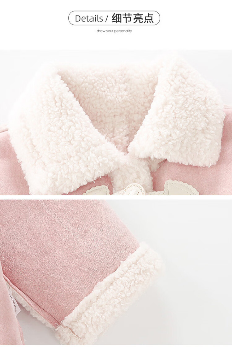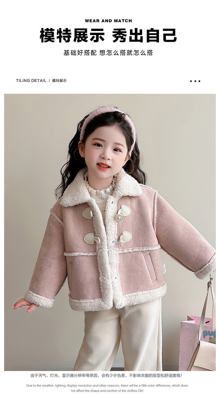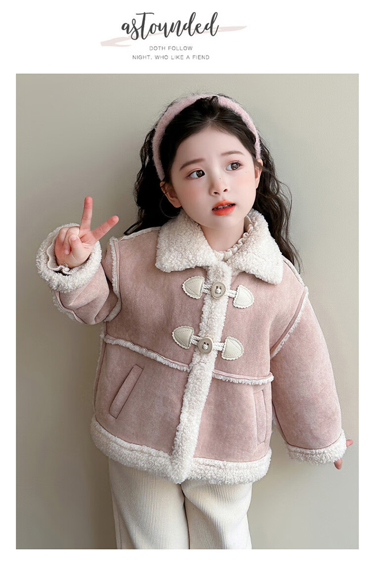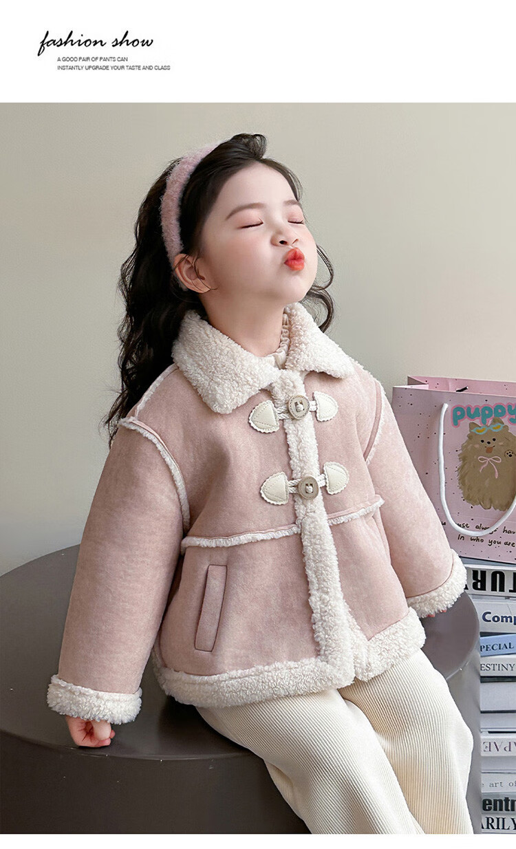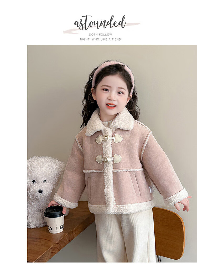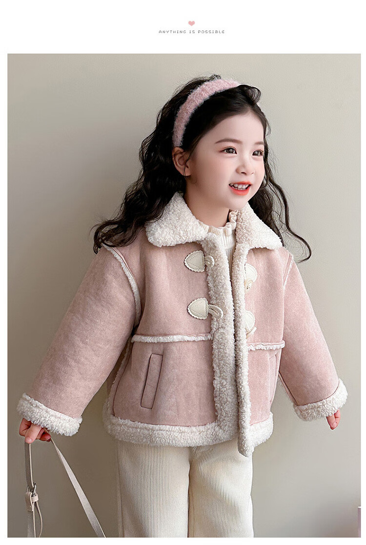 BALA Balabala is suitable for girls' velvet coat winter wear 2025 new super good-looking children's suede thickened fur leather buckle velvet thickened coat 90cm