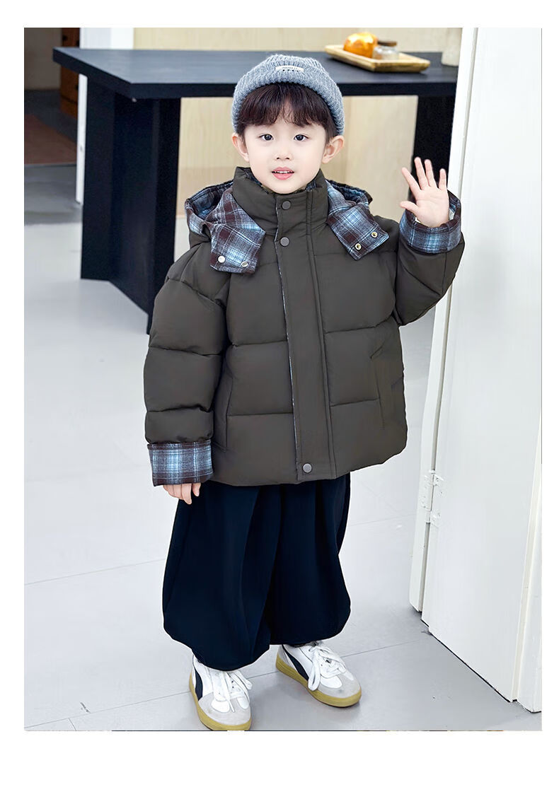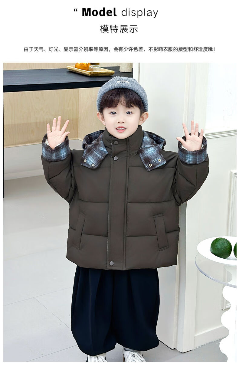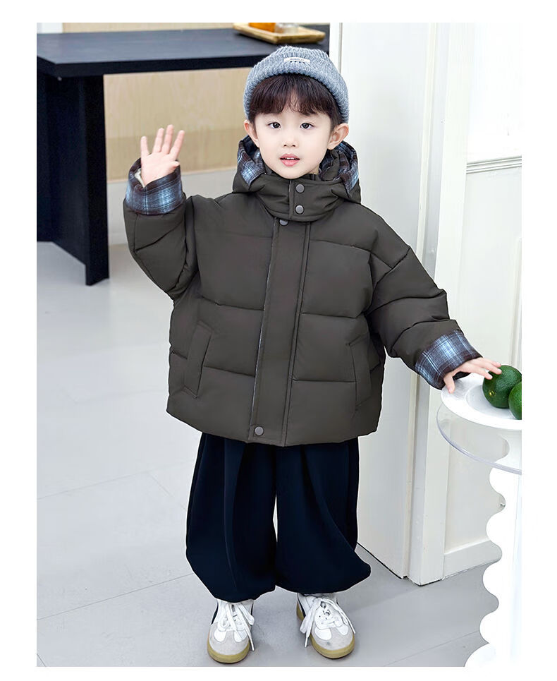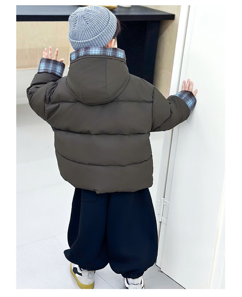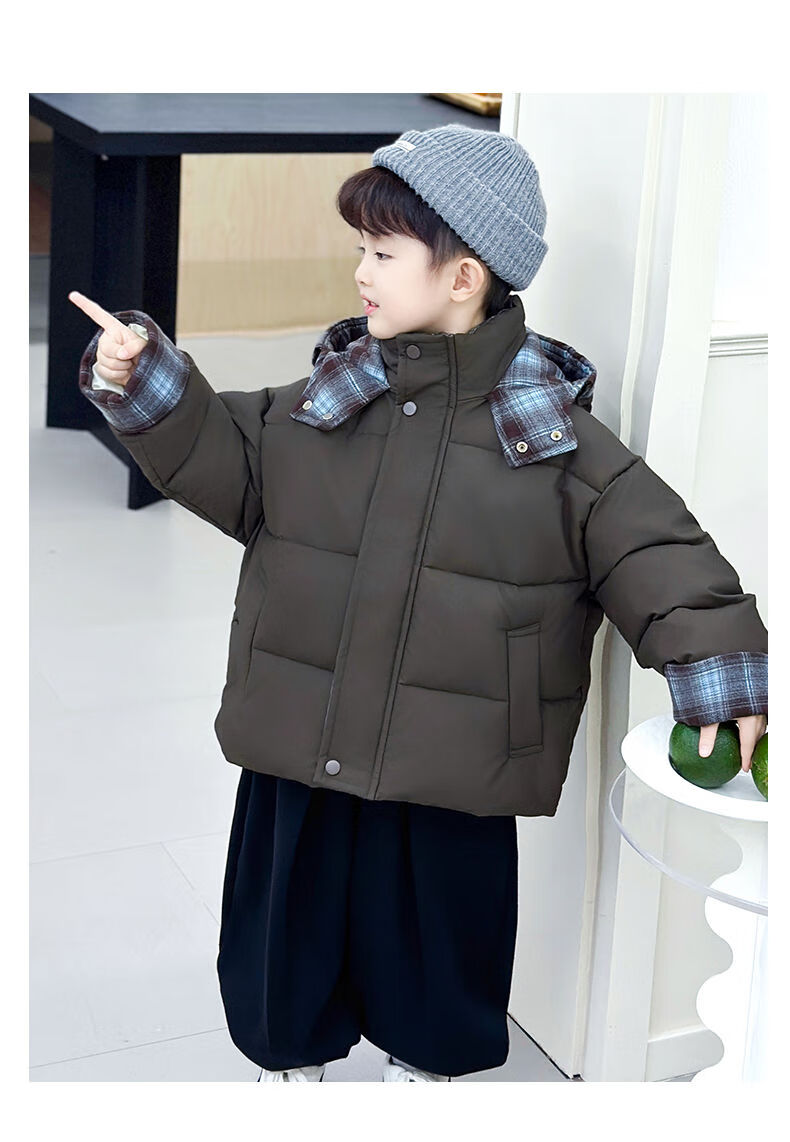 BALA is suitable for boys' cotton-padded winter clothes and children's velvet jackets 2025 new handsome street windproof boy baby brown cotton-padded jacket (velvet style) 90cm