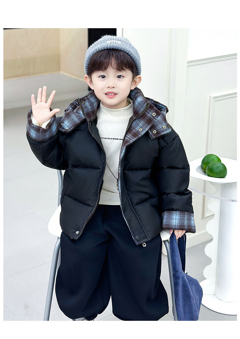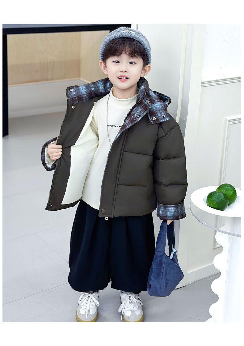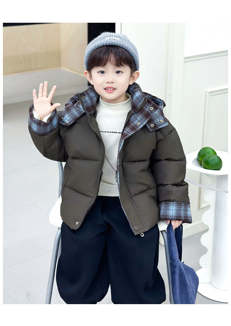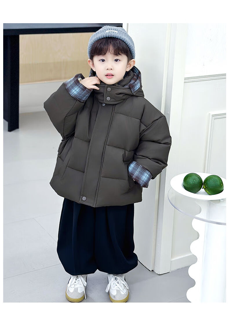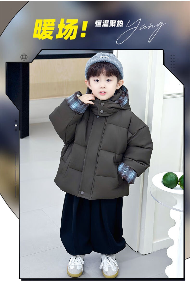 BALA is suitable for boys' cotton-padded winter clothes and children's velvet jackets 2025 new handsome street windproof boy baby brown cotton-padded jacket (velvet style) 90cm