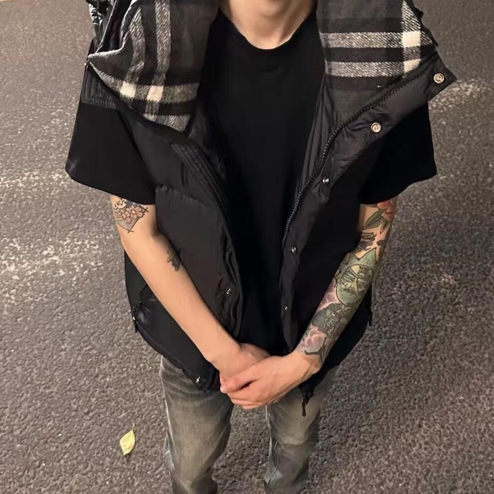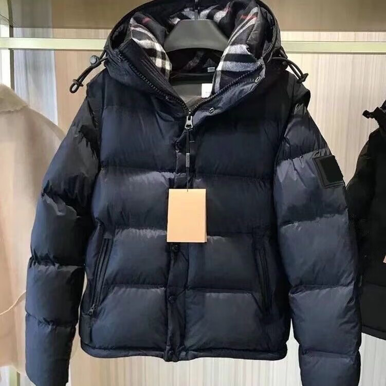 B PRORSUM Burberry Autumn and Winter Men's Removable Winter Cotton Warm Thickened Unisex Jacket Black 2XL 120-140Jin Jin equals 0.5 kg